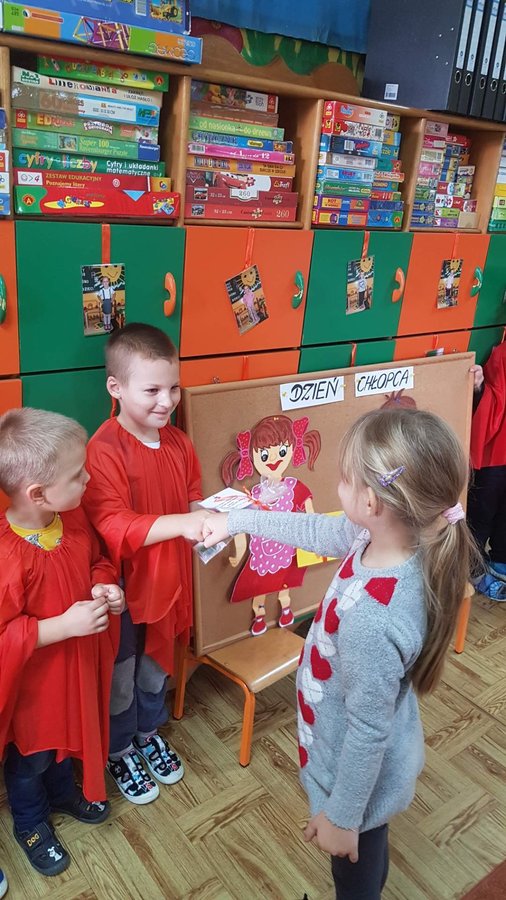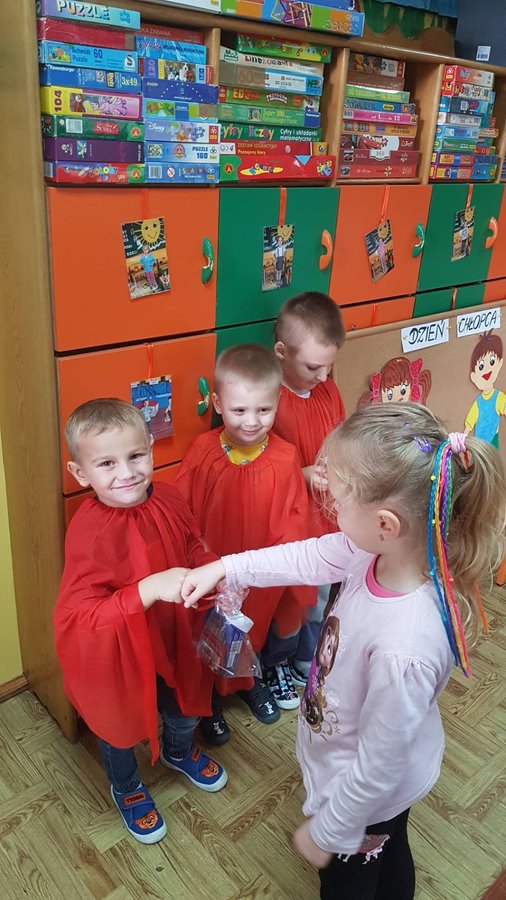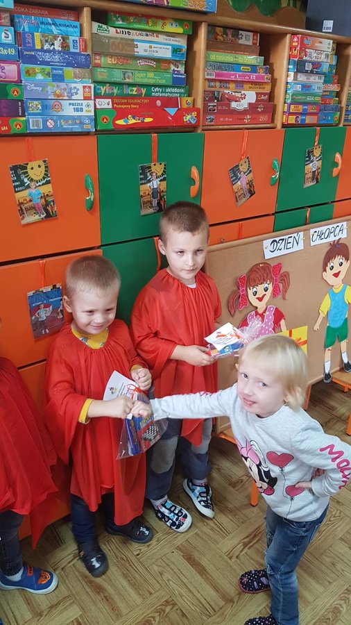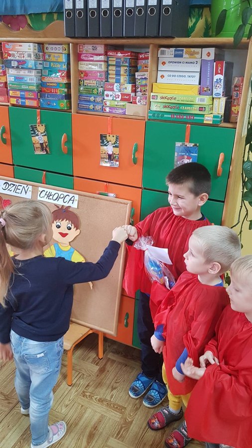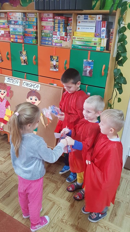 Od najmłodszych lat uczymy dzieci, aby pamiętały o ważnych uroczystościach w życiu rodziny, czy w życiu przedszkola. Równie ważne jest więc Święto Chłopców. W tym dniu dziewczynki wręczały chłopcom upominki, złożyły życzenia. Nie brakowało także słodkiego podziękowania dla dziewczynek. Cały dzień upłynął na wspaniałych, wesołych zabawach.