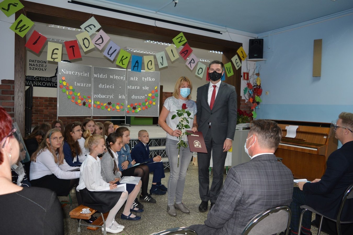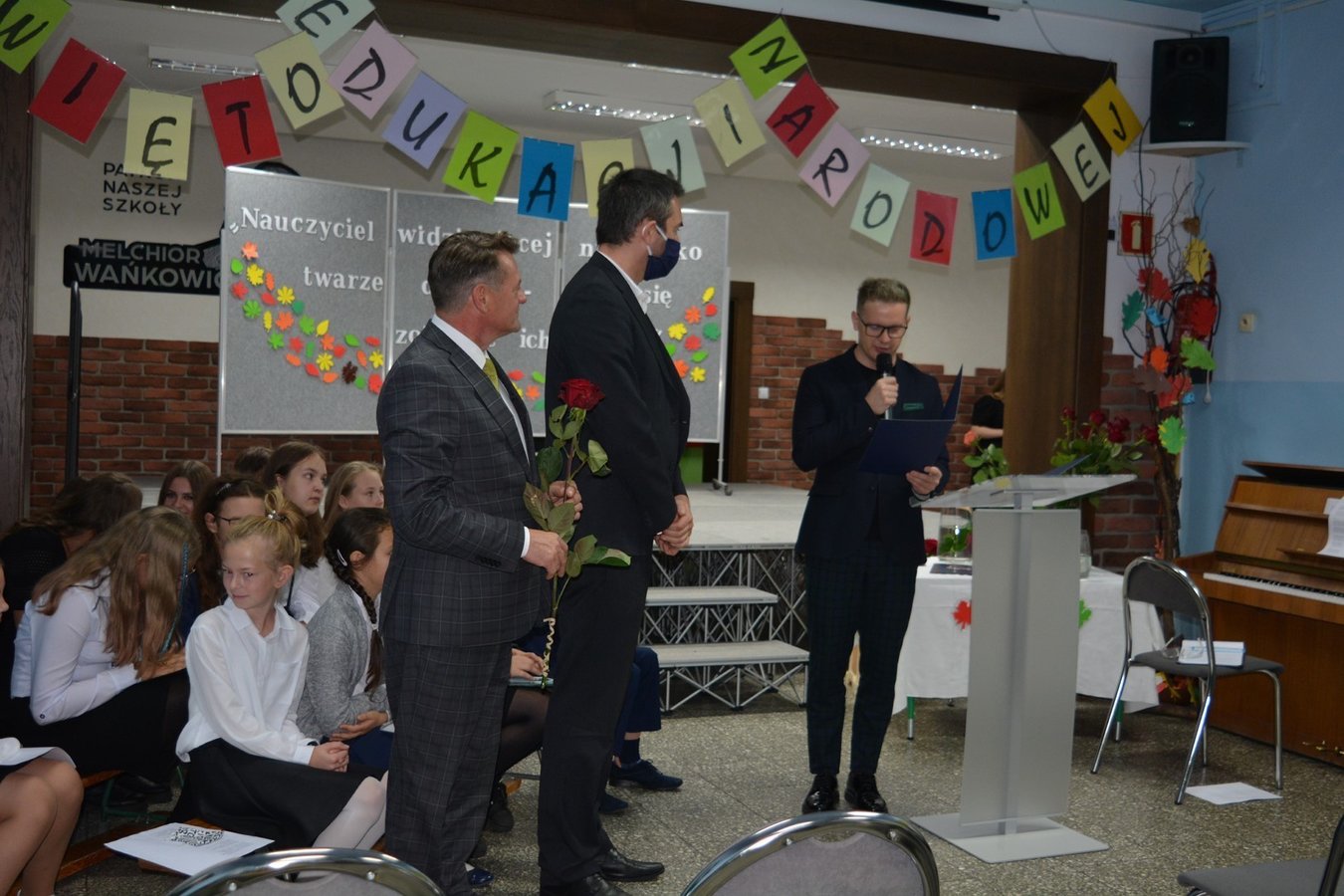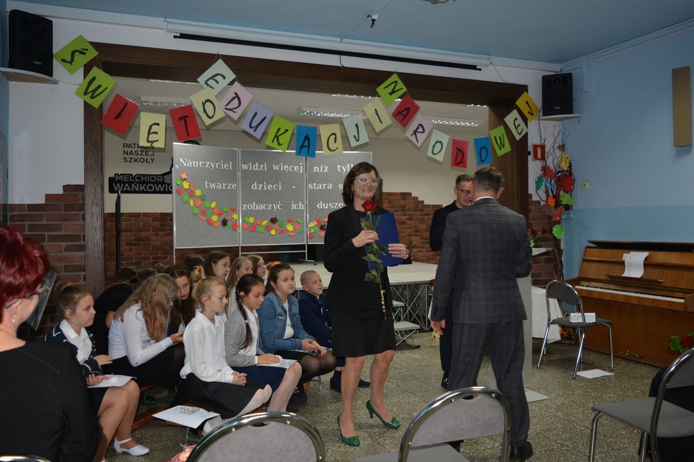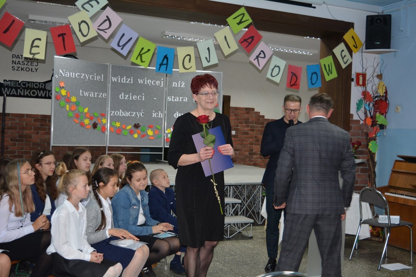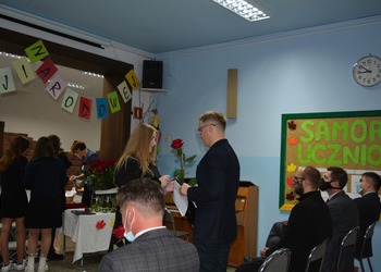 14 października to dzień wyjątkowy. Nie rozbrzmiewają dzwonki wzywające uczniów do klas na lekcje, lecz raz po raz można usłyszeć życzenia składane pracownikom szkoły. Dzień Edukacji Narodowej, choć w tym roku obchodzony w mniejszym gronie (z wychowawcami spotkali się tylko przedstawiciele braci uczniowskiej), był równie uroczysty.