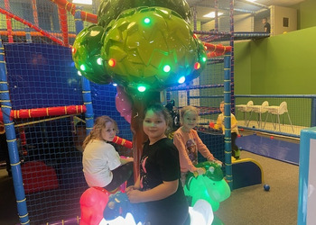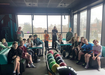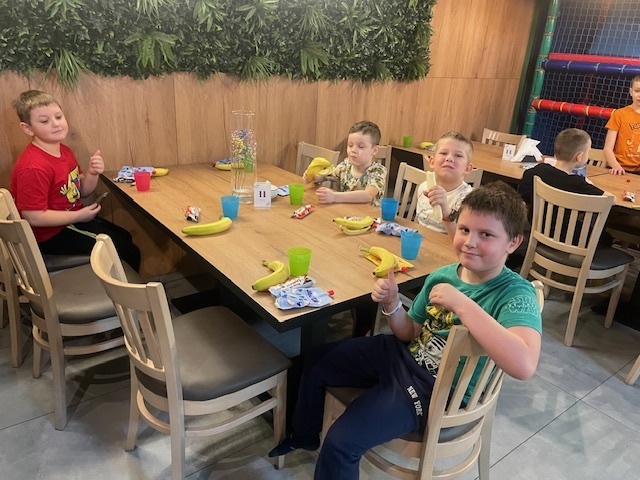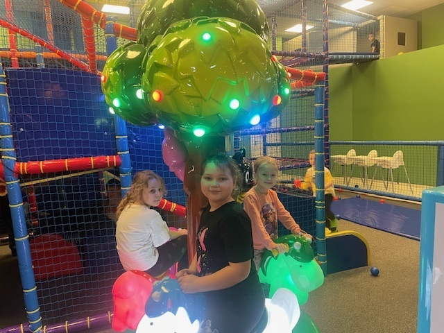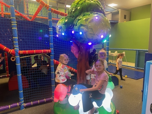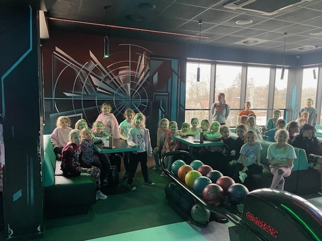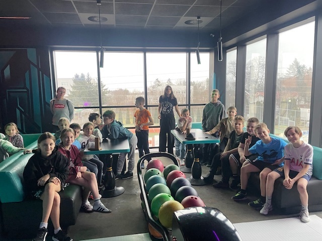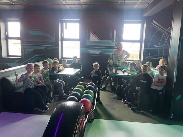 Wyjazd dla młodszych dzieci odbył się w drugim tygodniu ferii. Mali uczestnicy wycieczki pojechali do Śmigla do Family Club. Najpierw udali się na plac zabaw. Niezwykłą frajdą okazała się ogromna konstrukcja składająca się z labiryntu przejść, zjeżdżalni, ściany wspinaczkowej, trampolin, karuzeli i basenu z piłeczkami. Po dwóch godzinach świetnej zabawy trzeba było uzupełnić spalone kalorie. Po posiłku regeneracyjnym wszyscy uczestnicy udali się na kręgielnie. Zajęcia na kręgielni były wspaniałą rozrywką dla dzieci. Gra okazała się niezwykle wciągająca. Uczestnicy świetnie radzili sobie z tą nową dyscypliną sportu. Dużą frajdą było zbijanie kręgli i zdobywanie punktów. Niestety wszystko co dobre szybko się kończy.