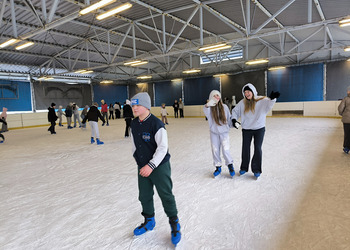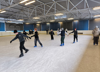 W pierwszym tygodniu ferii na lodowisko do Kościana wybrała się 50-cio osobowa grupa 10 – 15 latków pod opieką nauczycieli z Jerki. Dla uczestników, którzy już nie pierwszy raz korzystali z takich wyjazdów, od razu po wejściu na lodowisko zaczęła się zabawa. Natomiast początkujący niepewnie stawiali swe pierwsze „kroki” na lodzie. Do nich z pomocą przyszli opiekunowie i oczywiście… pingwinki. Było dużo śmiechu i żartów, ale przy okazji też nauki i doskonalenia jazdy na łyżwach. Po dwóch godzinach zajęć na lodowisku wszyscy czuli zmęczenie, ale też wszyscy potrafili jeździć na łyżwach. Po posiłku regeneracyjnym najedzeni, wypoczęci i zadowoleni wróciliśmy do domów.