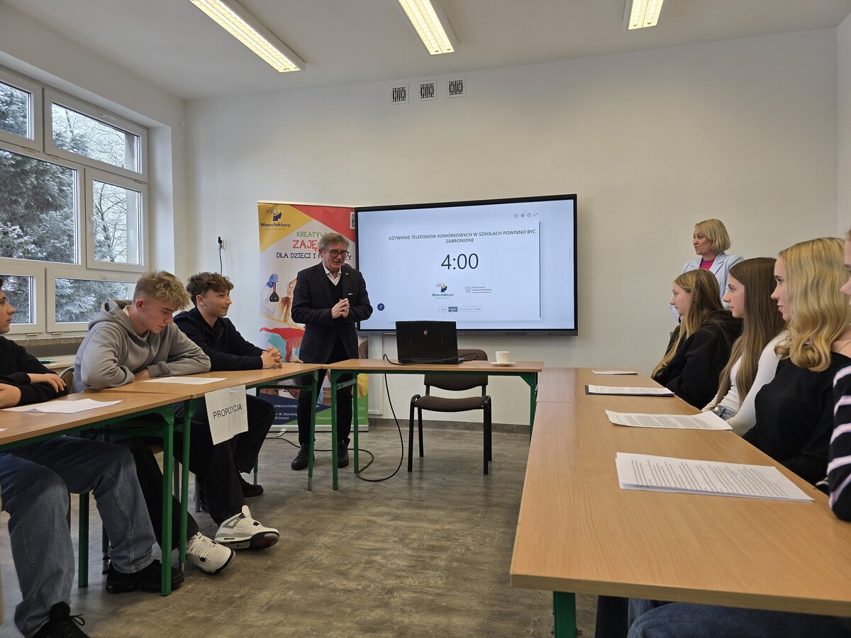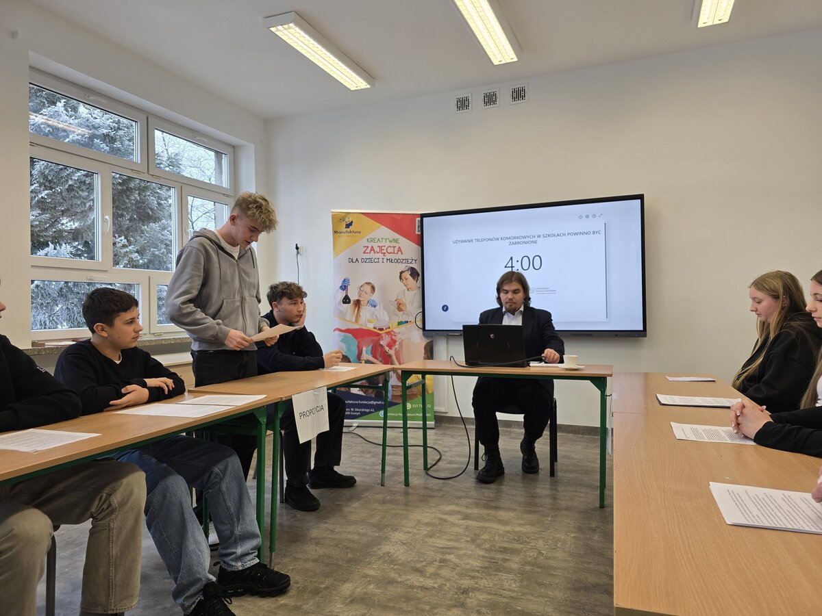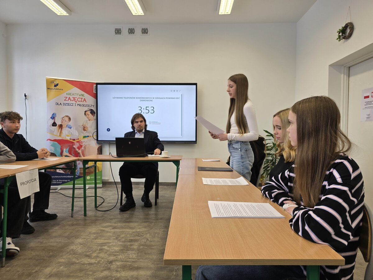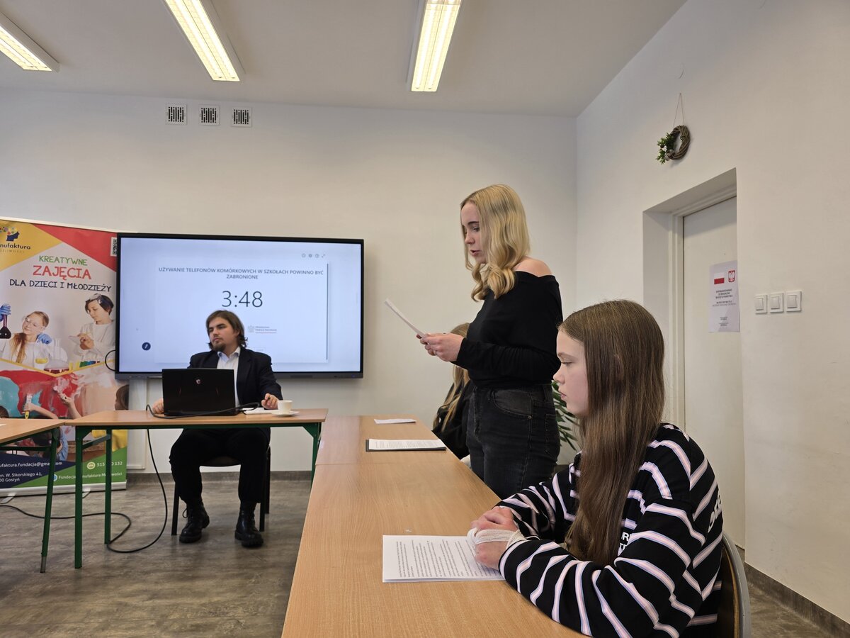 Strony propozycji i opozycji przedstawiły przemyślane argumenty dotyczące m.in. koncentracji uczniów, relacji rówieśniczych, bezpieczeństwa oraz odpowiedzialnego korzystania z nowych technologii.