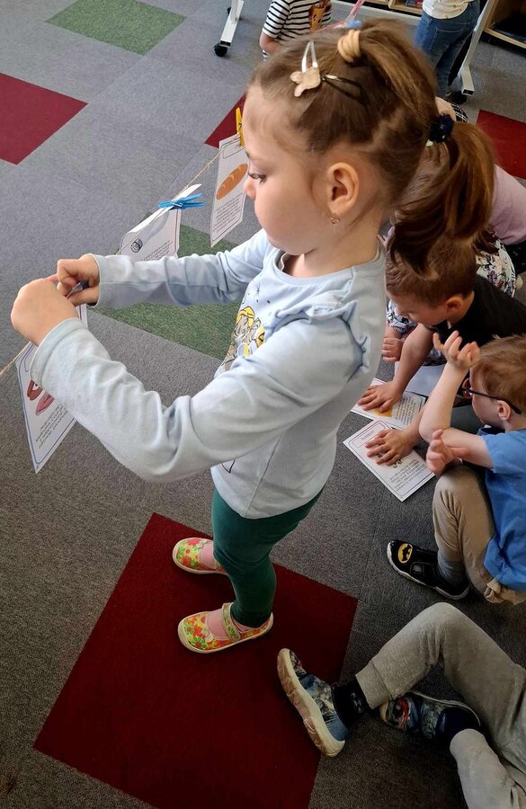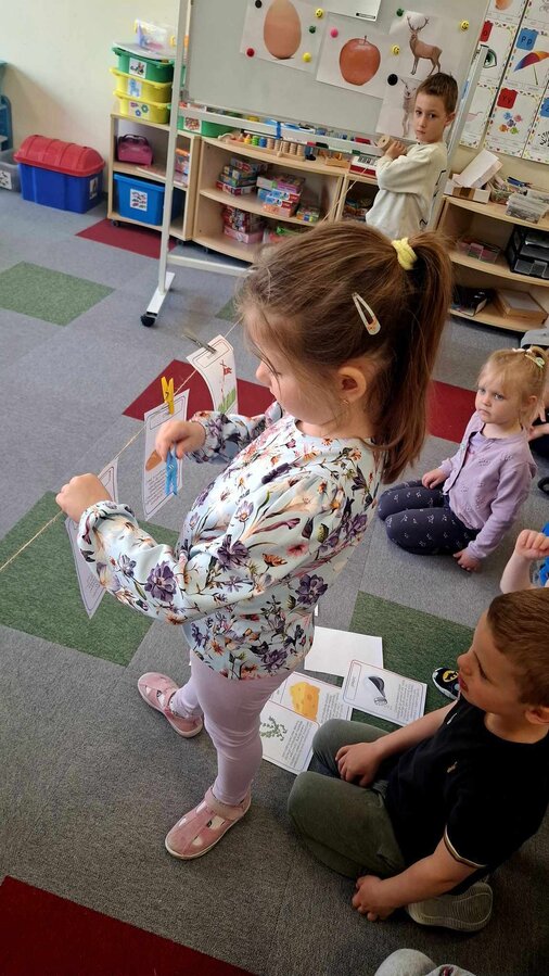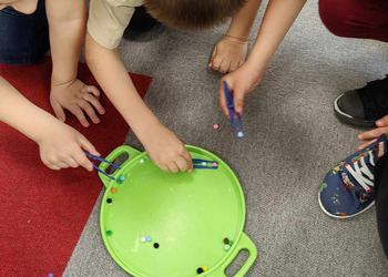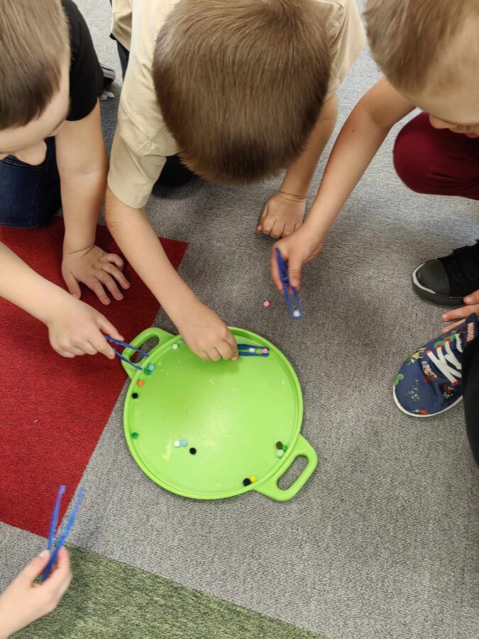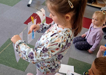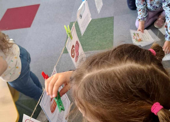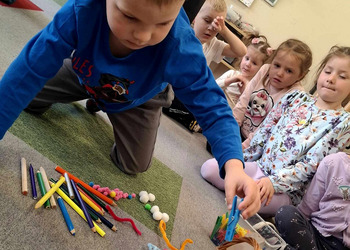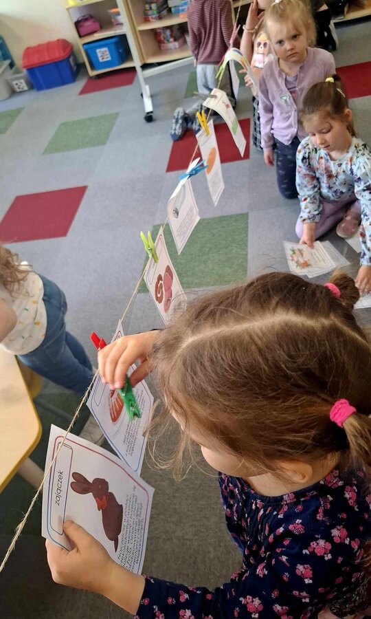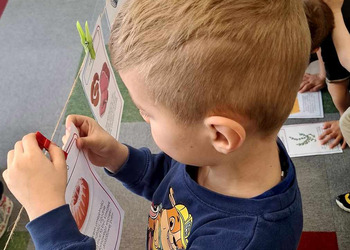 - „Klamerkowe zabawy” doskonalenie chwytu pęsetowego oraz chwytu narzędzia pisarskiego. wzmacnianie koncentracji uwagi.
