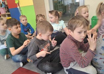 - „Paluszkowa gimnastyka”- zabawy doskonalące świadomość ciała.