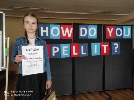 31 maja w Szkole Podstawowej nr 3 w Kościanie odbył się IX Powiatowy Konkurs Ortograficzny Języka Angielskiego „How do you spell it?”. Naszą szkołę reprezentowała uczennica klasy 5a Julia Matuszkowiak, która wcześniej wygrała szkolne eliminacje. W czasie konkursu zadaniem Julii było zapisanie 40 słów lub wyrażeń dwukrotnie czytanych i literowanych przez lektora, a następnie ich przetłumaczenie. Nasza uczennica rywalizowała z najlepszymi uczniami ze szkół w powiecie kościańskim. Ostatecznie, z wynikiem 51pkt. Julia zajęła 3 miejsce. Gratulacje! Pozostałych uczniów zachęcam do poszerzania swojej wiedzy z języka angielskiego.