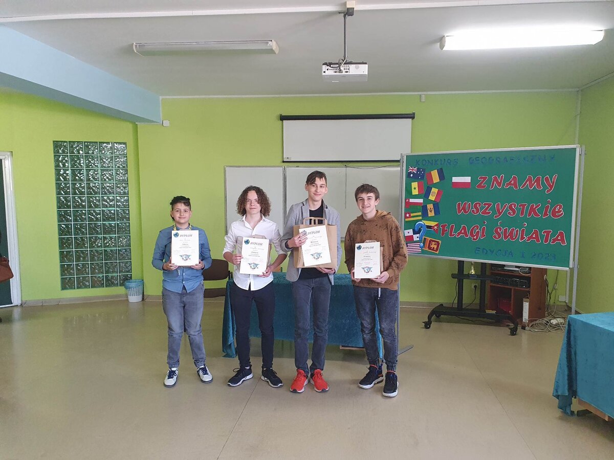 11 maja 2023 r. odbyła się w Racocie pierwsza edycja międzyszkolnego konkursu sprawdzającego znajomość państw i ich flag. Naszą szkołę reprezentowali: Bruno Boujibar i Franciszek Szeląg z klasy VIa. Bruno zajał I miejsce po uzyskaniu doskonałego wyniku 52 na 53 możliwych do zdobycia punktów. Natomiast Franciszek Szeląg otrzymał wyróznienie. Nasi reprezentanci to zwycięzcy eliminacji szkolnych, które trwały od lutego.