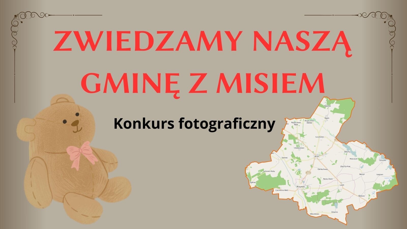 Dzień pluszowego misia obchodzony jest 25 listopada. To wyjątkowe święto, które przypomina o jednej z najbardziej ukochanych zabawek na świecie - pluszowym misiu. Pluszowy miś jest również bohaterem znanych bajek. Tym razem miś zaprasza nas w podróż po naszej gminie, która zakończy się konkursem.