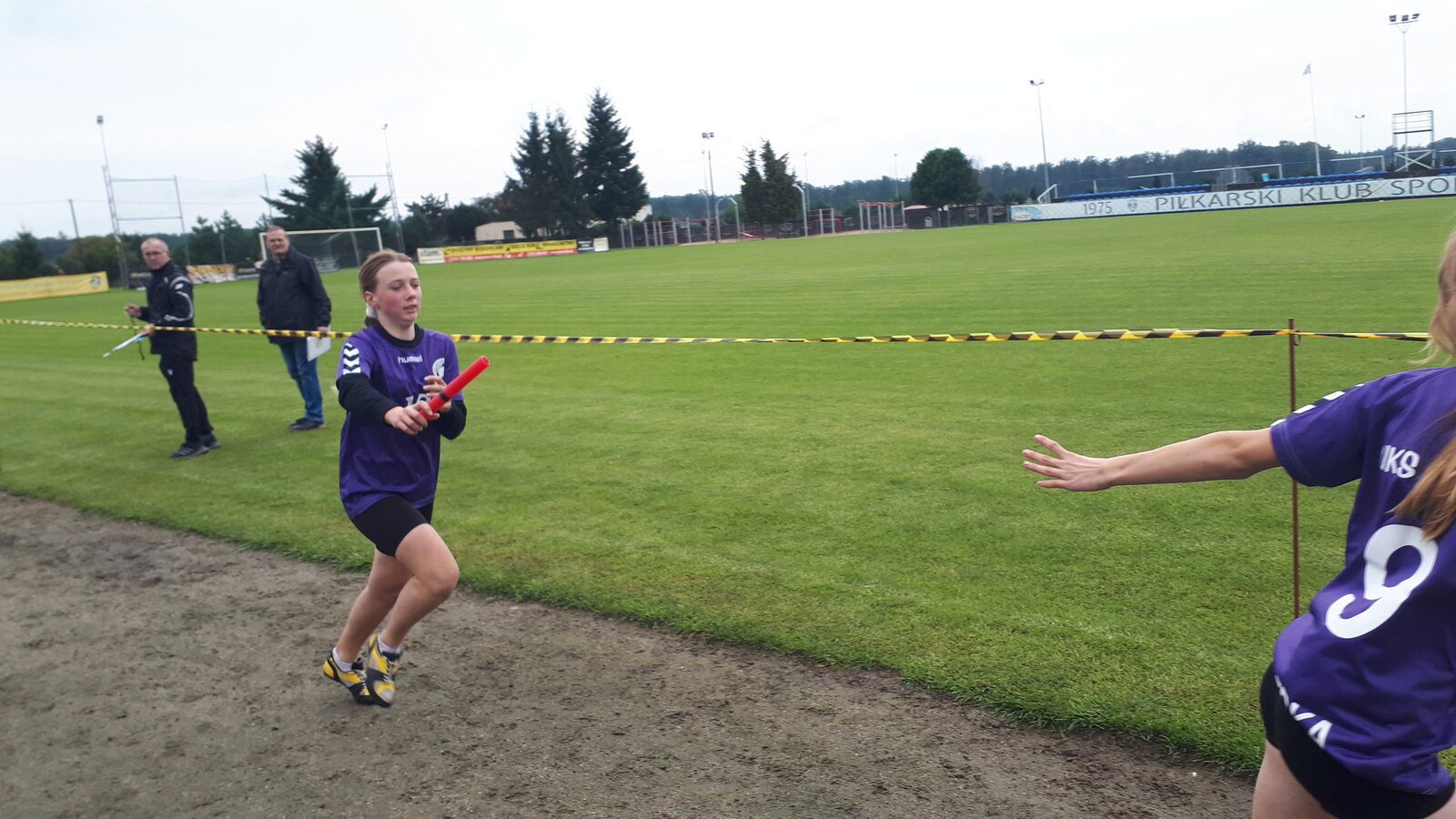 Po wywalczeniu I miejsca przez sztafetę dziewcząt (kl.8 i młodszych) na zawodach gminnych przyszła pora wziąć udział w zmaganiach na szczeblu powiatowym. Mimo że od rana padał deszcz, w miarę upływu czasu coraz bardziej się przejaśniało. Nasz bieg rozpoczynała Milena Sobik, by następnie przekazać pałeczkę Oliwii Kostrzewie, potem pobiegła Marysia Walkowiak, Yeva Zhelaieva, od której odbierała pałeczkę Ola Szymkowiak i na ostatniej zmianie wykazać musiała się Julia Skrzypczak. Nasze dziewczyny ciężko pracowały na brązowy medal. Dziękujemy im za sportową postawę w walce o III miejsce i życzymy takiego hartu ducha, jakim wykazały się podczas sztafety przełajowej 6x1000m, przez całe życie.