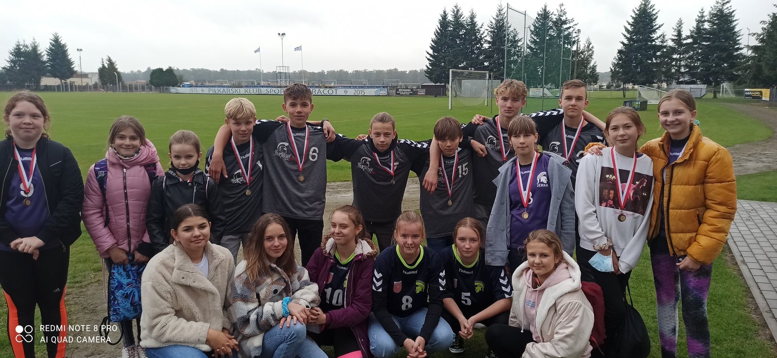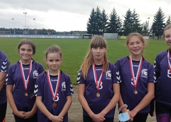 Wygrywając zawody gminne, trzy drużyny z naszej szkoły zapewniły sobie awans w dalszej rywalizacji. Tym razem zmierzyliśmy się z najlepszymi drużynami z każdej z gmin powiatu kościańskiego. Z rocznika 2009 i młodsi SP Jerkę reprezentowały: Maja Gołembka, Julia Skrzypczak, Jagoda Taczkowska, Amanda Jankowiak, Julia Kaczmarek i Nikola Sobczak. Mimo pochmurnej pogody dziewczynki miały uśmiech na twarzy, bo wywalczyły sobie brązowy medal. W starszej kategorii rocznik 2007-2008 dziewczynki w składzie: Laura Rybczyńska, Nikola Szłapka, Wiktoria Sobkowiak, Maria Szczepaniak, Sandra Sobańska i Kornelia Gardynik, gdy stanęły na starcie, zaczął padać deszcz. Niestety, w tych trudnych warunkach, choć walczyły dzielnie, nie poradziły sobie z trudną nawierzchnią i uplasowały się na miejscu poza podium. Natomiast chłopcy w zaciętym pojedynku zdobyli medalowe miejsce. Srebro zawisło na szyi Marcela Woźniaka, Mateusza Sztula, Janka Leonardczyka, Marcela Łagodzkiego, Kamila Witkowskiego i Marcina Szczepaniaka. Wszystkim uczestnikom serdecznie gratulujemy i życzymy sukcesów także w innych dyscyplinach sportowych.