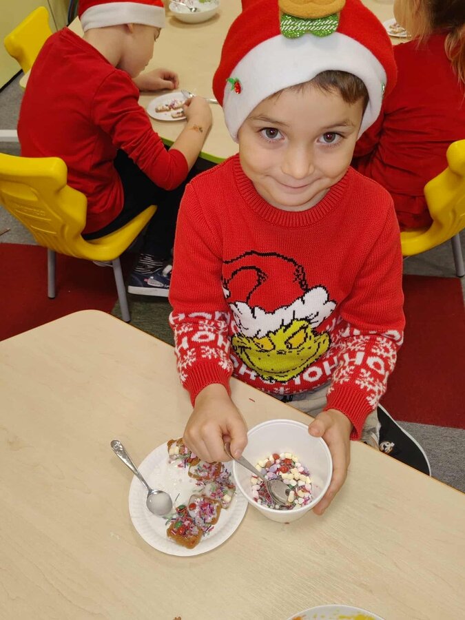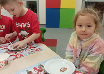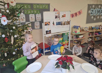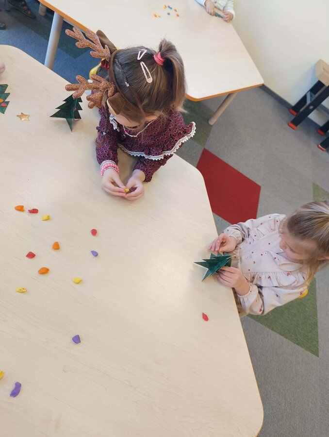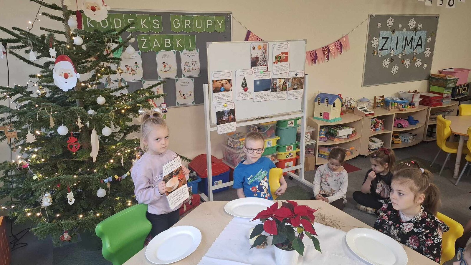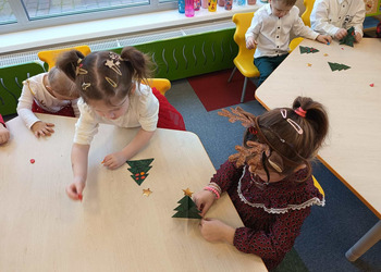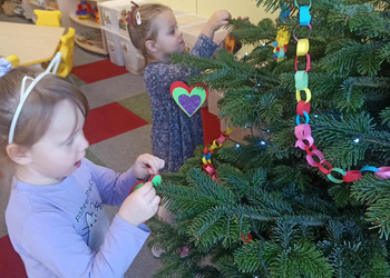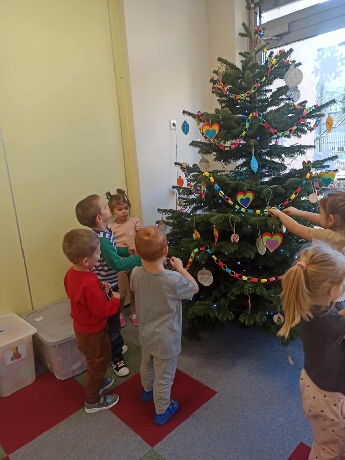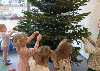 W czasie świątecznym w grudniu i styczniu nasze przedszkole realizowało projekt edukacyjny "Spotkanie przy choince". W czasie wykonywania zadań projektowych dzieci poznały min. tradycje i zwyczaje świąteczne, rozwijały uzdolnienia plastyczne, wzmaciały więci rodzinne i koleżeńskie.
