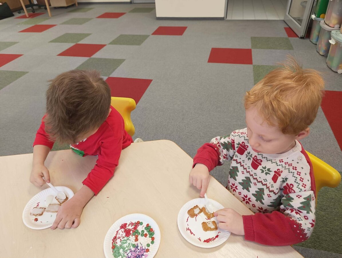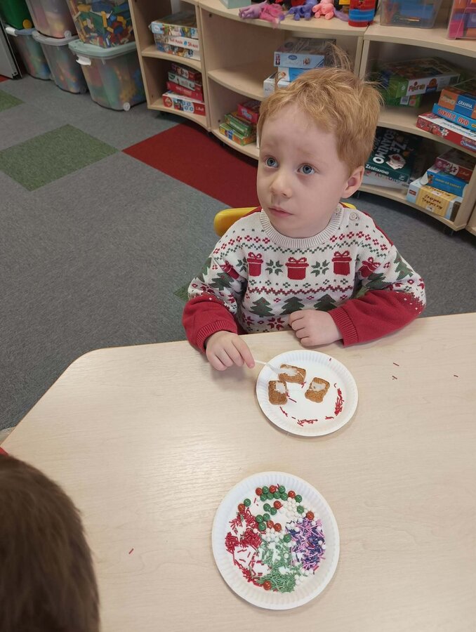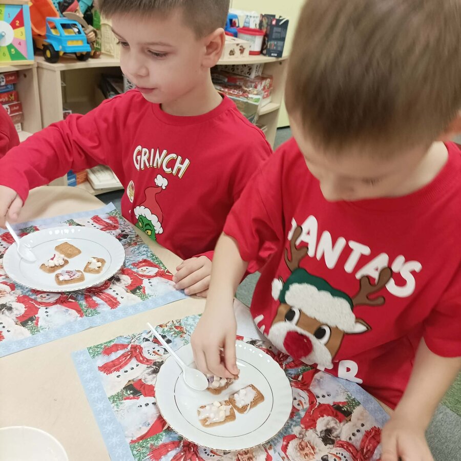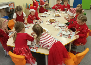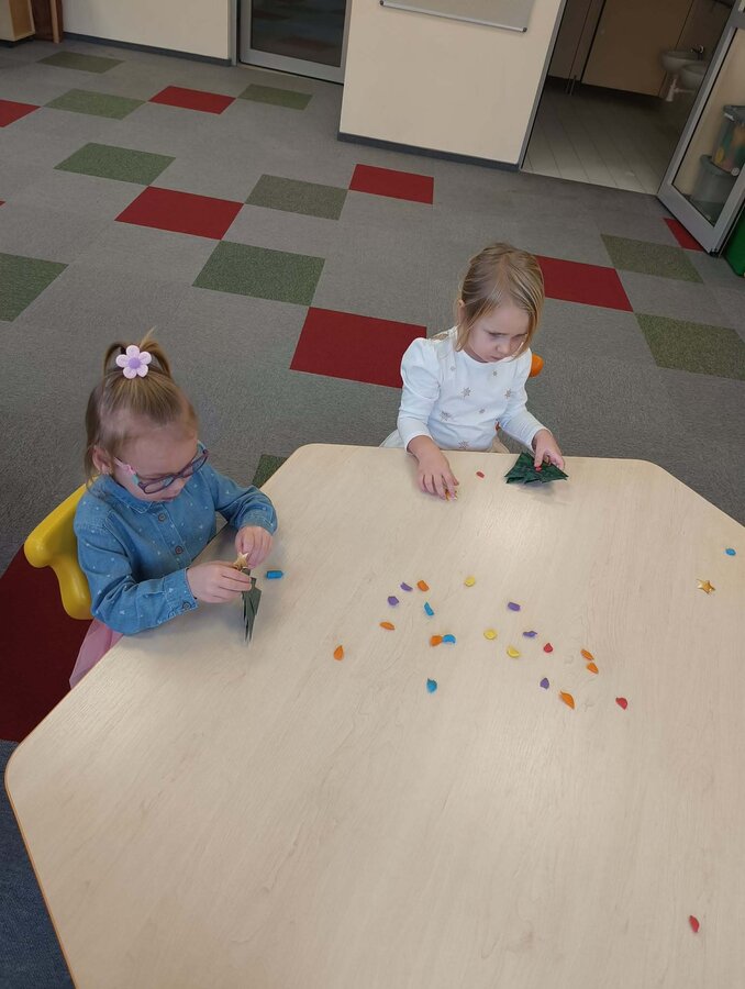 W czasie świątecznym w grudniu i styczniu nasze przedszkole realizowało projekt edukacyjny "Spotkanie przy choince". W czasie wykonywania zadań projektowych dzieci poznały min. tradycje i zwyczaje świąteczne, rozwijały uzdolnienia plastyczne, wzmaciały więci rodzinne i koleżeńskie.