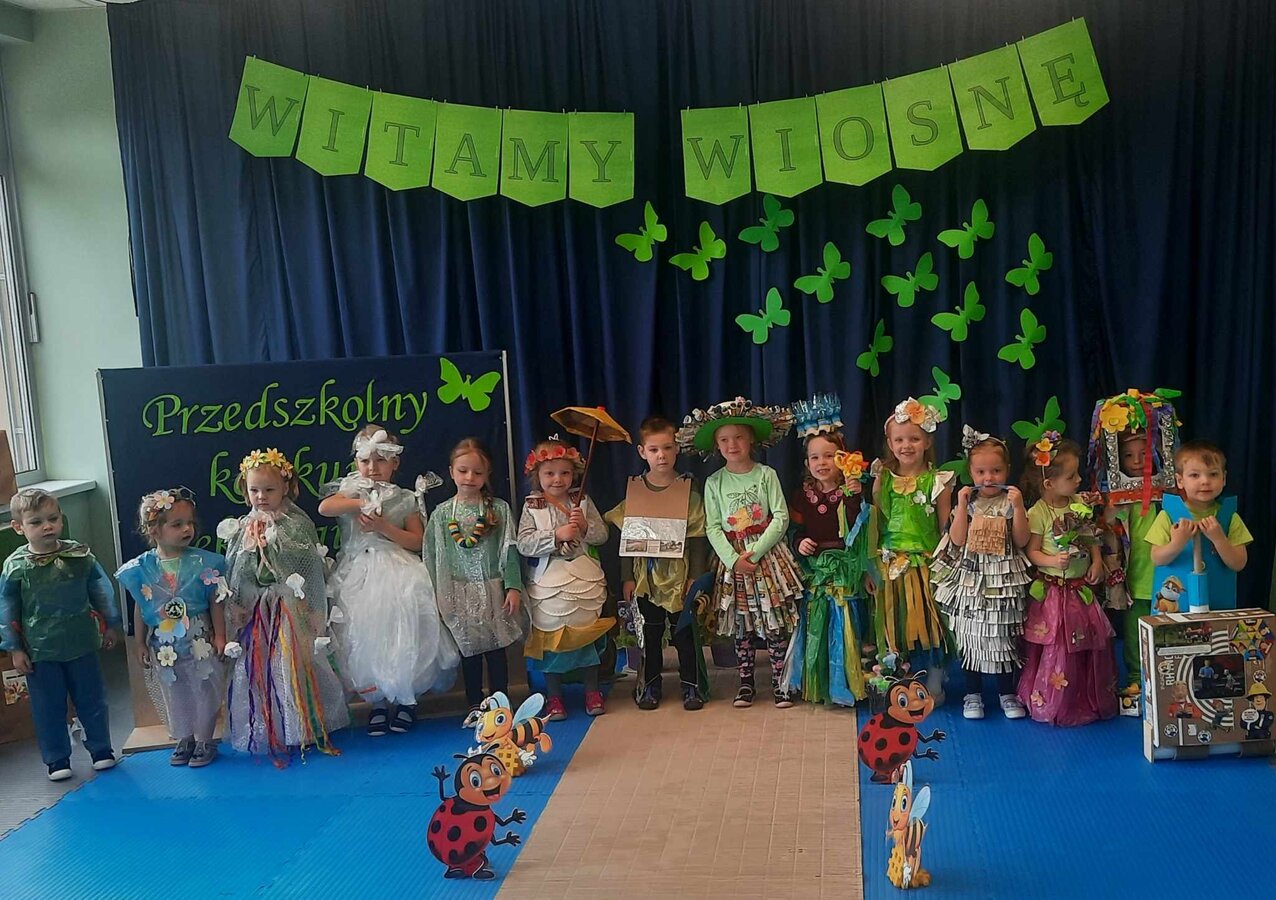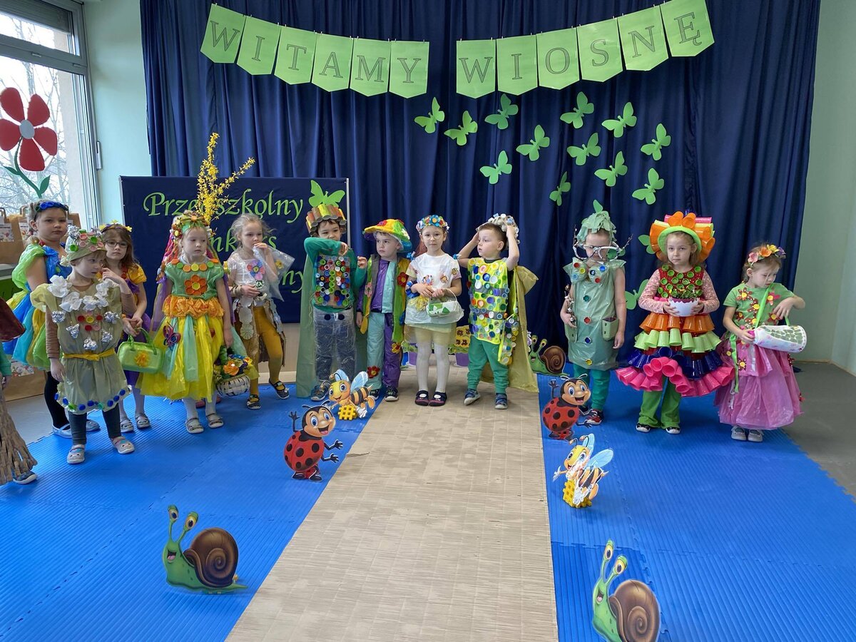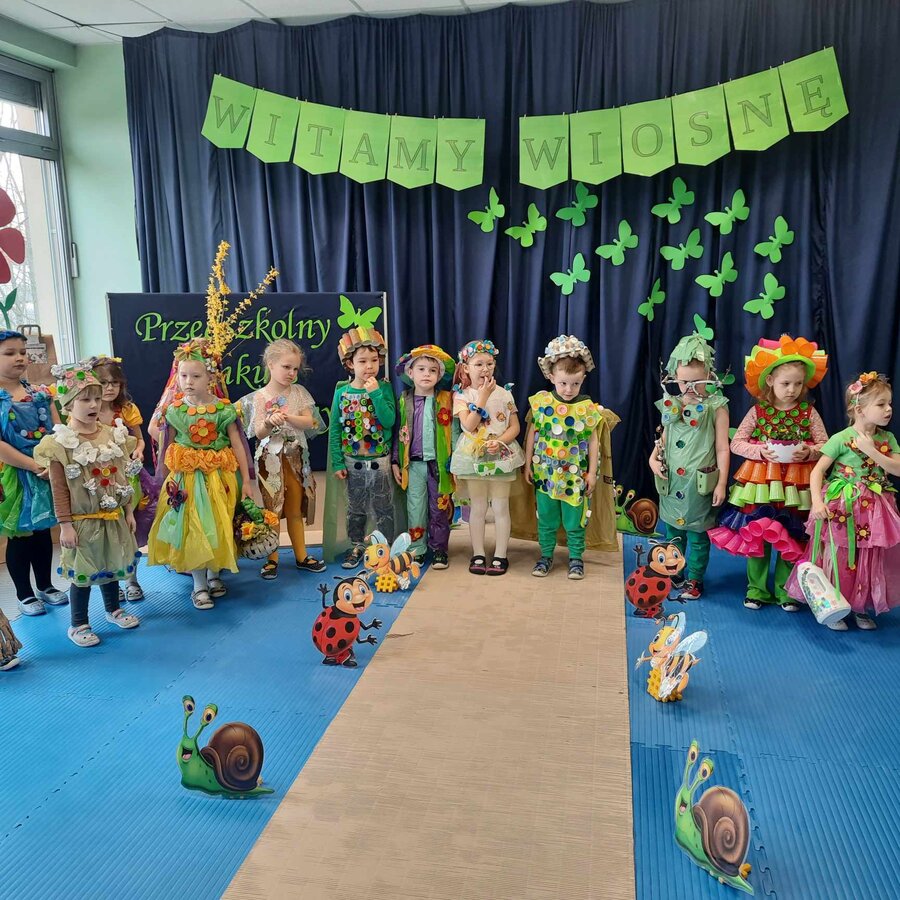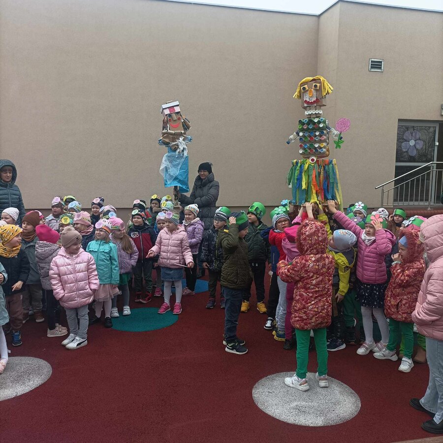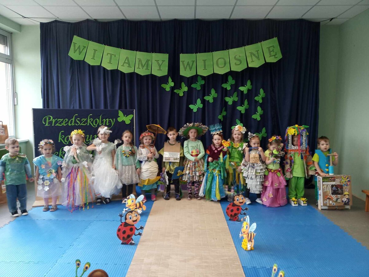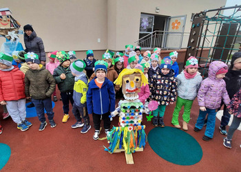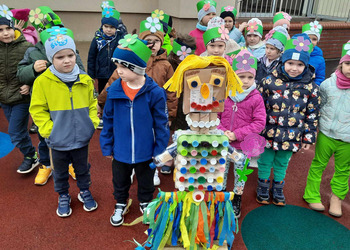 W czwartek 21 marca 2024r. wszystkie dzieci z naszego przedszkola świętowały nadejście Wiosny. Dla każdego przedszkolaka jest to bardzo wyczekiwane wydarzenie. Tego dnia wszyscy przyszli ubrani w odcieniach barw zieleni. Dzień rozpoczęliśmy od rozmów o nowej porze roku oraz od wesołych zabaw przy muzyce. Następnie Przedszkolaki przywitały Wiosnę przedszkolnym konkursem ekologicznym pt. ‘’Wiosna ubiera się Eko! Logicznie!” . Przedszkolaki, które wzięły w nim udział miały okazję zaprezentować przygotowane z pomocą Rodziców przepiękne stroje wykonane z materiałów przeznaczonych do recyklingu. Wszystkich nas zaskoczyła niezwykła kreatywność uczestników, wykorzystane do wykonania strojów ciekawe materiały, a także staranność oraz estetyka prac. Wielobarwne kreacje idealnie obrazowały Wiosnę, która do nas zawitała. Punktualnie o godzinie 12:00 , uśmiechnięci wyruszyliśmy na plac zabaw naszego przedszkola, gdzie pożegnaliśmy zimę wraz z Eko-Marzanną. Dodatkowo dzieci próbowały odstraszyć zimę, śpiewając głośno piosenki o wiośnie. Następnie nasze grupowe Eko-Marzanny znalazły się w odpowiednich pojemnikach do segregacji odpadów. Cieszymy się, że w taki sposób mogliśmy w pełni przywitać wiosnę, która obdarowała nas pięknym słoneczkiem. Mamy nadzieję, że dzięki zaangażowaniu naszych przedszkolaków wiosna zawita do nas na dobre, a wraz z nią ciepłe dni, z których będziemy czerpać radość.