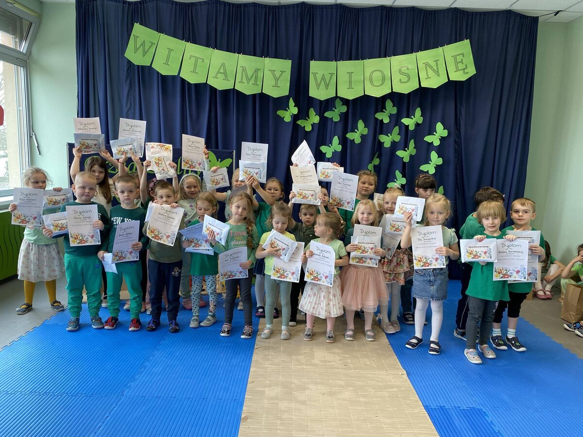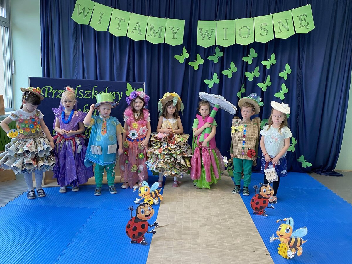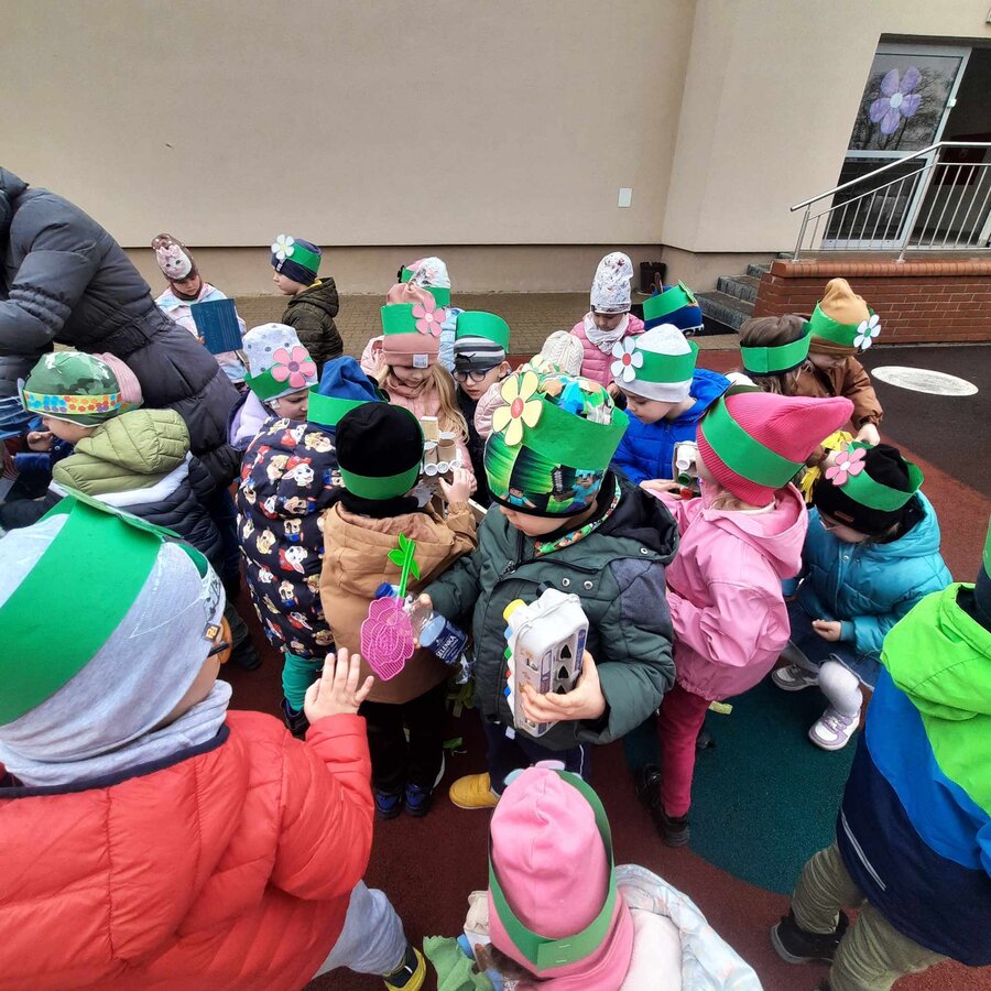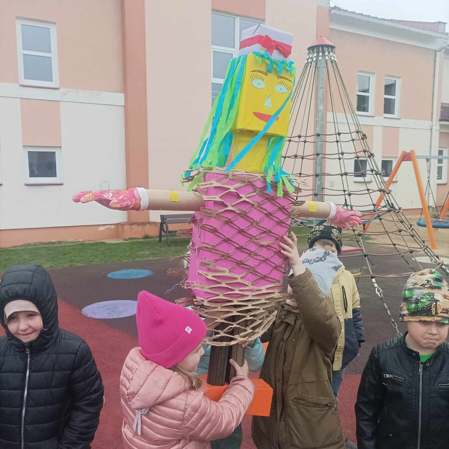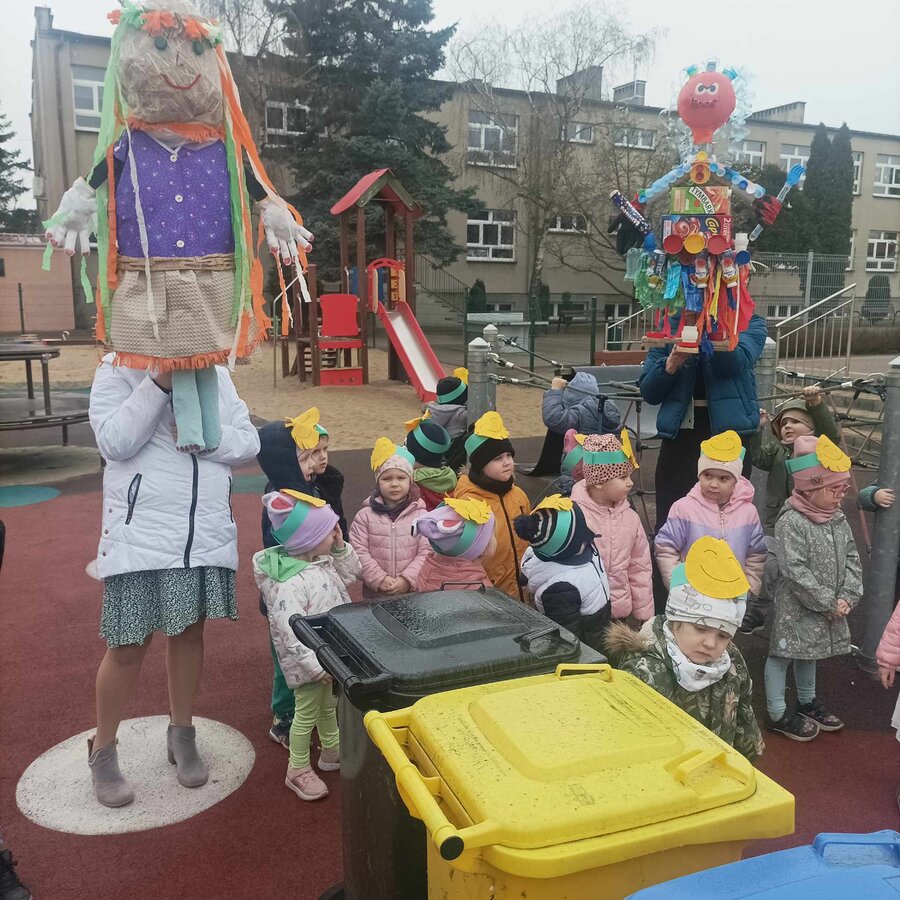 W czwartek 21 marca 2024r. wszystkie dzieci z naszego przedszkola świętowały nadejście Wiosny. Dla każdego przedszkolaka jest to bardzo wyczekiwane wydarzenie. Tego dnia wszyscy przyszli ubrani w odcieniach barw zieleni. Dzień rozpoczęliśmy od rozmów o nowej porze roku oraz od wesołych zabaw przy muzyce. Następnie Przedszkolaki przywitały Wiosnę przedszkolnym konkursem ekologicznym pt. ‘’Wiosna ubiera się Eko! Logicznie!” . Przedszkolaki, które wzięły w nim udział miały okazję zaprezentować przygotowane z pomocą Rodziców przepiękne stroje wykonane z materiałów przeznaczonych do recyklingu. Wszystkich nas zaskoczyła niezwykła kreatywność uczestników, wykorzystane do wykonania strojów ciekawe materiały, a także staranność oraz estetyka prac. Wielobarwne kreacje idealnie obrazowały Wiosnę, która do nas zawitała. Punktualnie o godzinie 12:00 , uśmiechnięci wyruszyliśmy na plac zabaw naszego przedszkola, gdzie pożegnaliśmy zimę wraz z Eko-Marzanną. Dodatkowo dzieci próbowały odstraszyć zimę, śpiewając głośno piosenki o wiośnie. Następnie nasze grupowe Eko-Marzanny znalazły się w odpowiednich pojemnikach do segregacji odpadów. Cieszymy się, że w taki sposób mogliśmy w pełni przywitać wiosnę, która obdarowała nas pięknym słoneczkiem. Mamy nadzieję, że dzięki zaangażowaniu naszych przedszkolaków wiosna zawita do nas na dobre, a wraz z nią ciepłe dni, z których będziemy czerpać radość.