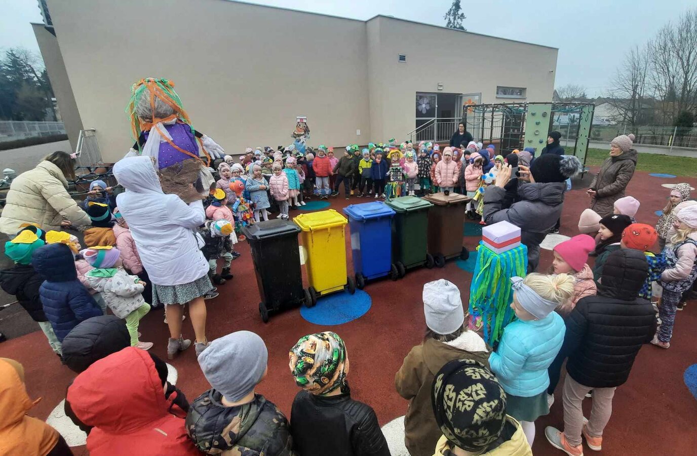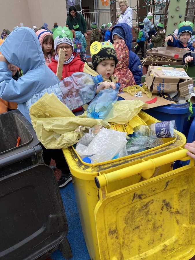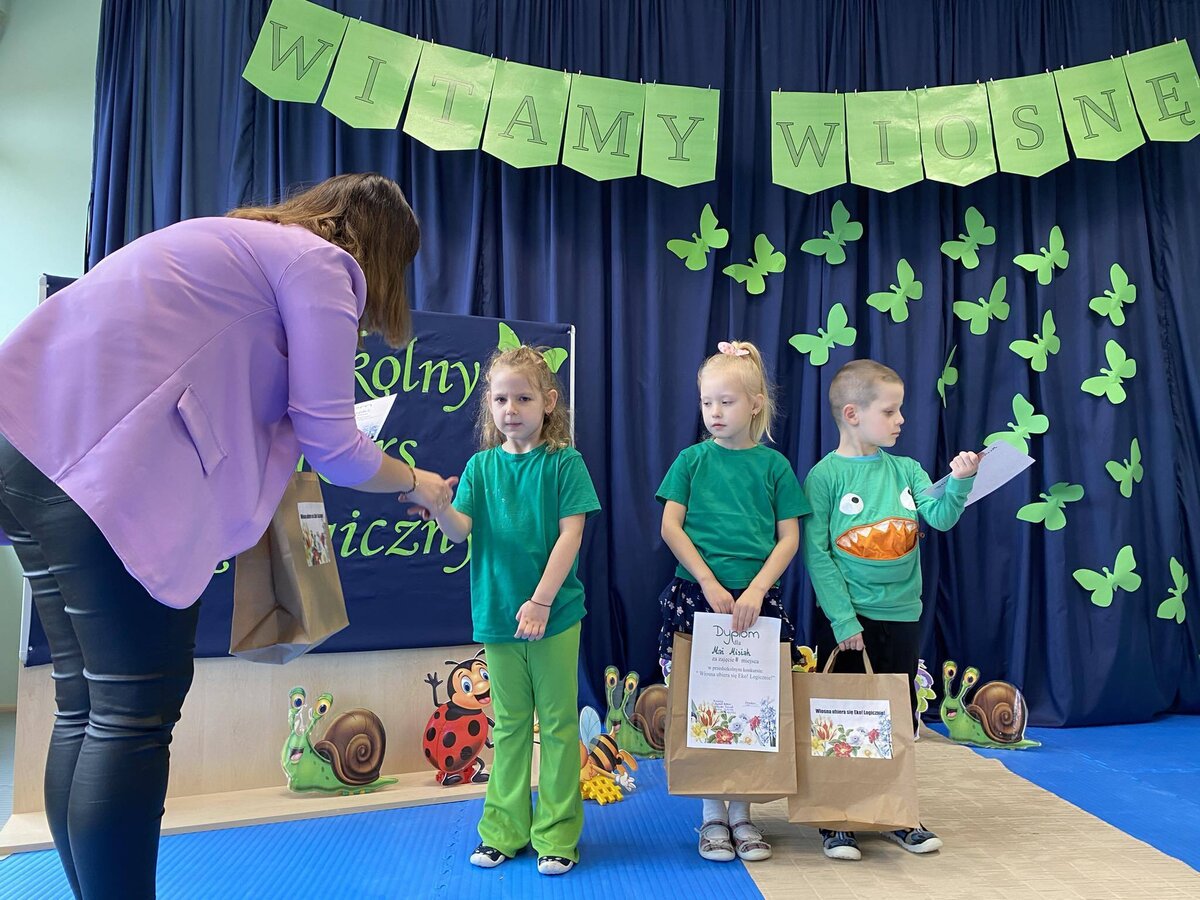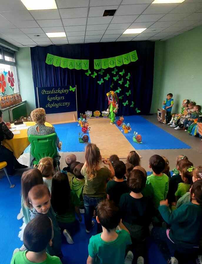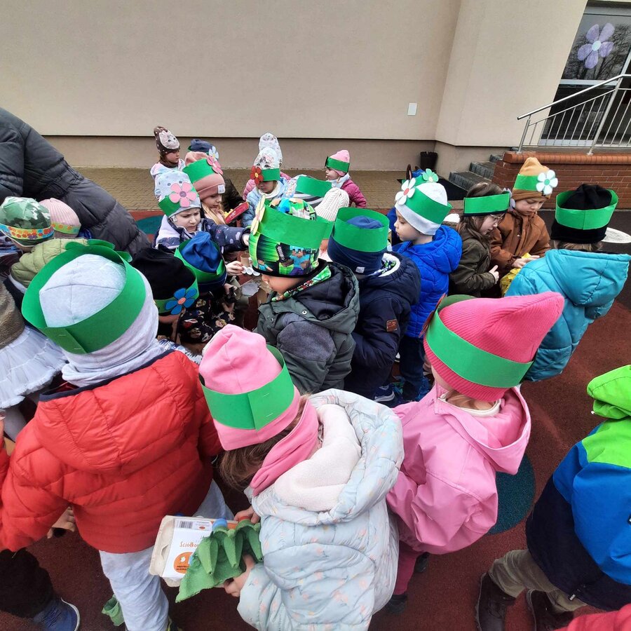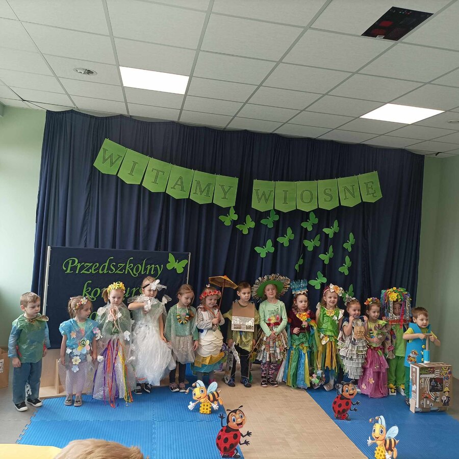 W czwartek 21 marca 2024r. wszystkie dzieci z naszego przedszkola świętowały nadejście Wiosny. Dla każdego przedszkolaka jest to bardzo wyczekiwane wydarzenie. Tego dnia wszyscy przyszli ubrani w odcieniach barw zieleni. Dzień rozpoczęliśmy od rozmów o nowej porze roku oraz od wesołych zabaw przy muzyce. Następnie Przedszkolaki przywitały Wiosnę przedszkolnym konkursem ekologicznym pt. ‘’Wiosna ubiera się Eko! Logicznie!” . Przedszkolaki, które wzięły w nim udział miały okazję zaprezentować przygotowane z pomocą Rodziców przepiękne stroje wykonane z materiałów przeznaczonych do recyklingu. Wszystkich nas zaskoczyła niezwykła kreatywność uczestników, wykorzystane do wykonania strojów ciekawe materiały, a także staranność oraz estetyka prac. Wielobarwne kreacje idealnie obrazowały Wiosnę, która do nas zawitała. Punktualnie o godzinie 12:00 , uśmiechnięci wyruszyliśmy na plac zabaw naszego przedszkola, gdzie pożegnaliśmy zimę wraz z Eko-Marzanną. Dodatkowo dzieci próbowały odstraszyć zimę, śpiewając głośno piosenki o wiośnie. Następnie nasze grupowe Eko-Marzanny znalazły się w odpowiednich pojemnikach do segregacji odpadów. Cieszymy się, że w taki sposób mogliśmy w pełni przywitać wiosnę, która obdarowała nas pięknym słoneczkiem. Mamy nadzieję, że dzięki zaangażowaniu naszych przedszkolaków wiosna zawita do nas na dobre, a wraz z nią ciepłe dni, z których będziemy czerpać radość.