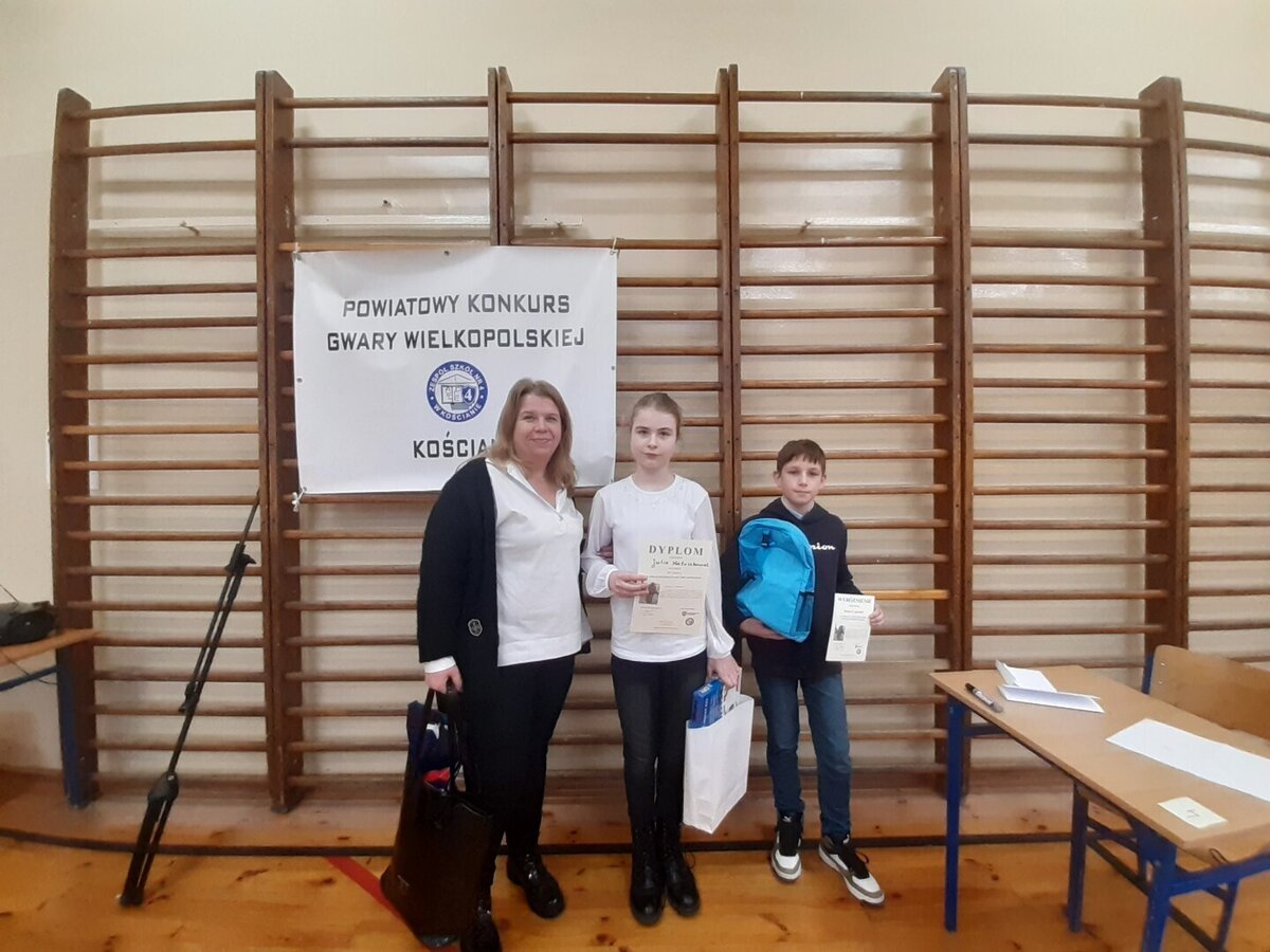 9 grudnia 2022 r. uczniowie Zespołu Szkół w Jerce wzięli udział w XXII Konkursie Gwary Wielkopolskiej, którego organizatorami byli Szkoła Podstawowa nr 4 w Kościanie oraz Marszałek Województwa Wielkopolskiego. Konkurs składał się z dwóch etapów: części pisemnej, w wyniku której zostali wyłonieni finaliści i części ustnej, do której przystąpili uczniowie z najwyższą liczbą punktów. Uczennica naszej szkoły, Julia Matuszkowiak z klasy VIa, dostała się do finału i zajęła ex aequo drugie miejsce, a w wyniku dogrywki otrzymała miejsce trzecie. Cieszy to, że uczniowie chcą uczyć się języka naszego regionu, który do łatwych nie należy, a którym w szkole się nie posługujemy. Życzymy uczniom dalszych sukcesów w tej dziedzinie.