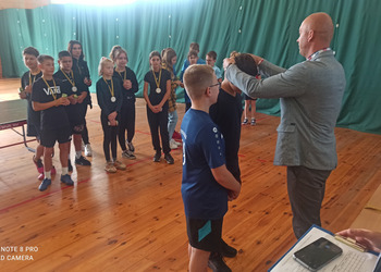 11 października 2022r. w Jerce przeprowadzono turniej tenisa stołowego o mistrzostwo gminy Krzywiń. Naszą szkołę reprezentowali w kategorii: dziewcząt Zosia Wachowska z klasy 4a oraz Maja Antkowiak z klasy 5b, chłopców Stasiu Chmielewski i Gracjan Jańczak z klasy 6b. Drużynie dziewczynek nie udało się zdobyć medalu, natomiast chłopcy zajmując pierwsze miejsce wywalczyli sobie awans na zawody powiatowe. Serdecznie dziękujemy za godne reprezentowanie naszej szkoły i życzymy dalszych sukcesów sportowych!