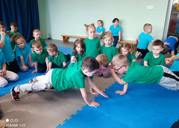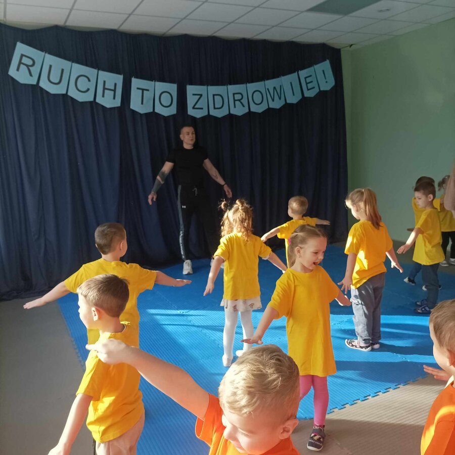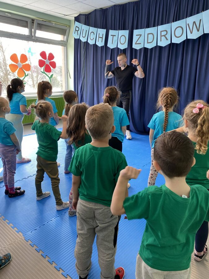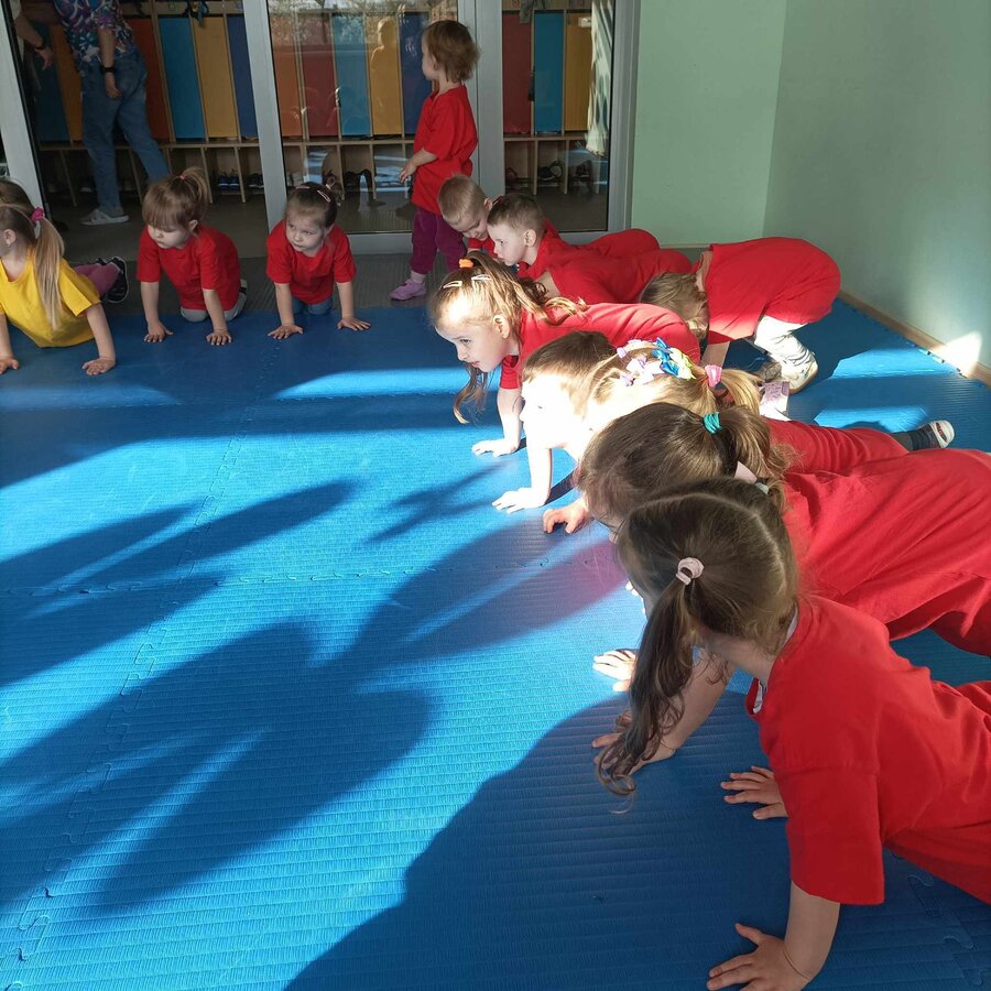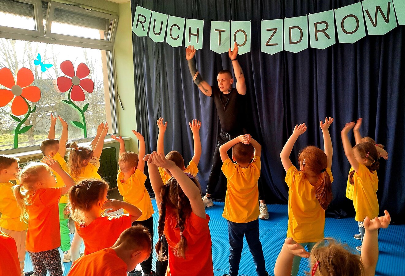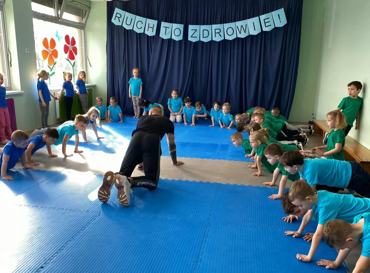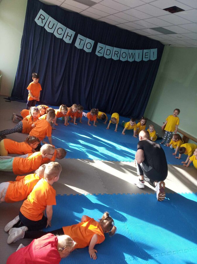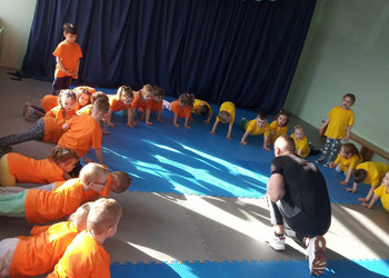 W zdrowym ciele zdrowy duch! Przedszkolaki ćwiczą z trenerem.