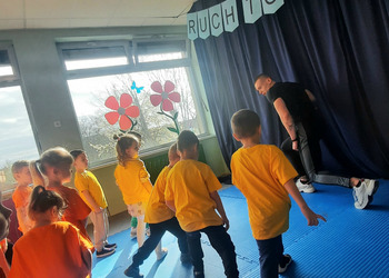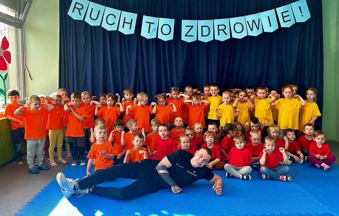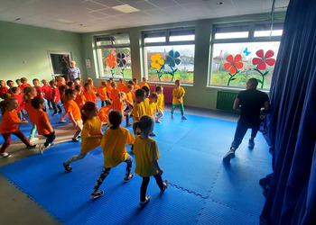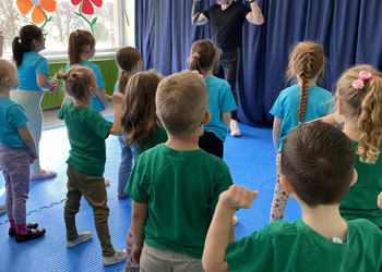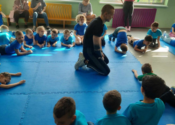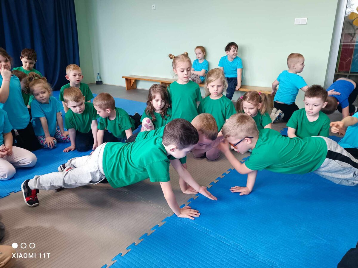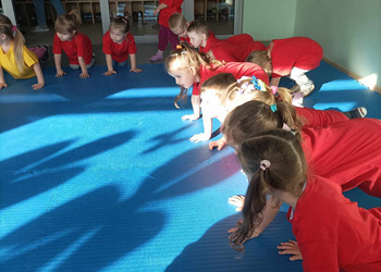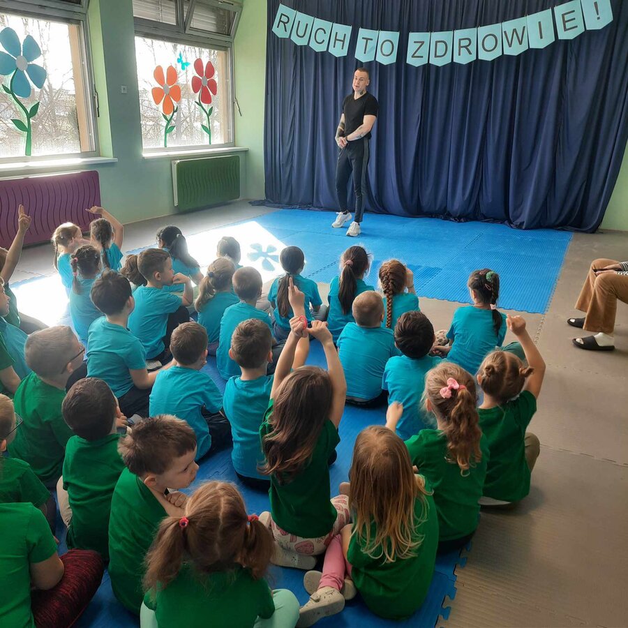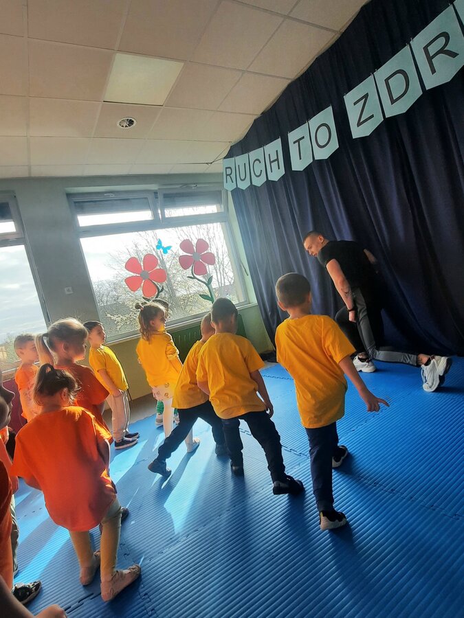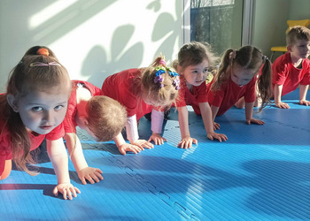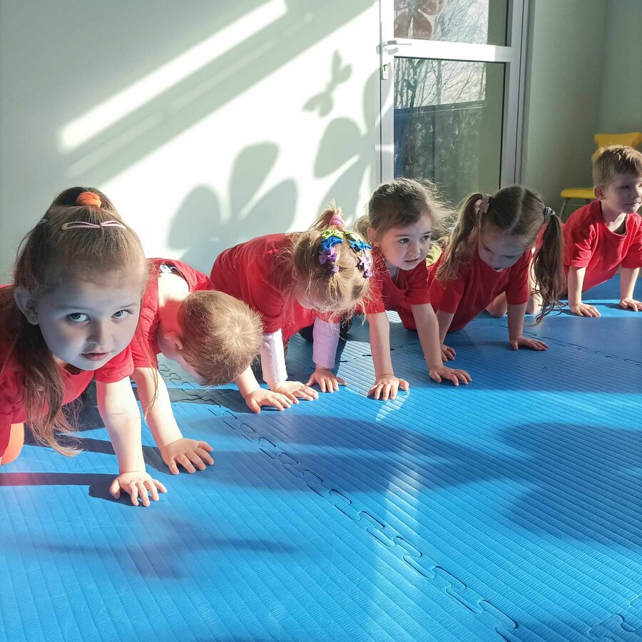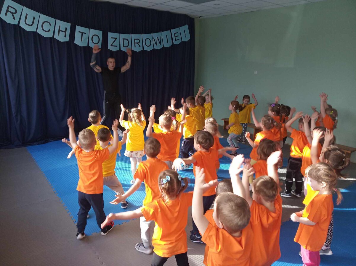 W zdrowym ciele zdrowy duch! Przedszkolaki ćwiczą z trenerem.