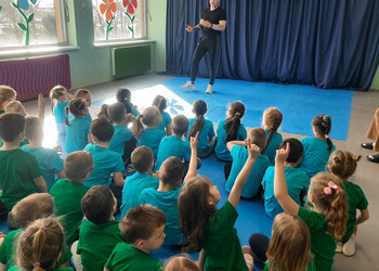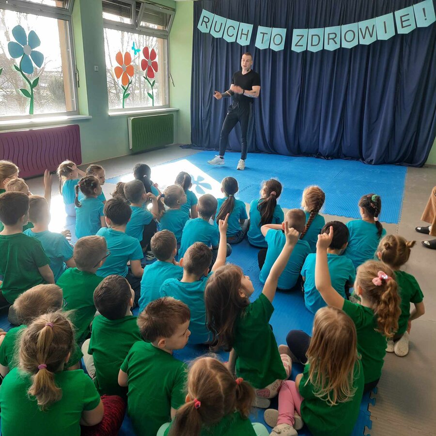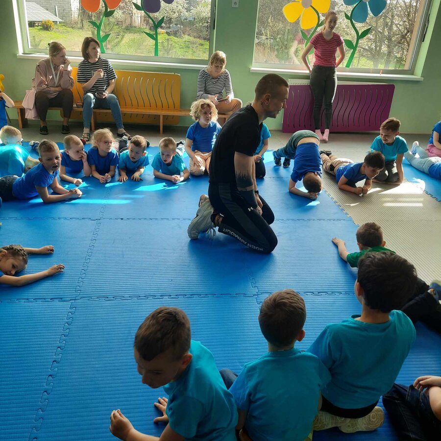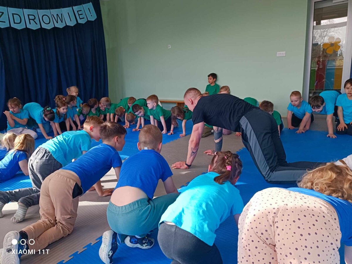 W piątek 5.04, a więc na dzień przed obchodami Światowego Dnia Sportu nasze przedszkole odwiedził profesjonalny trener studia treningowego Transformers Kościan. Spotkanie promujące wszechstronny rozwój poprzez aktywność fizyczną odbyło się w ramach tematyki odnoszącej się do sportu i szeroko rozumianego pojęcia zdrowia.