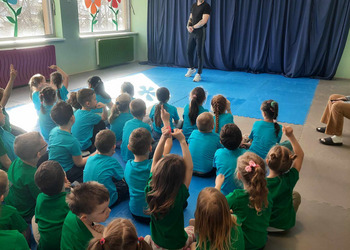 Podczas spotkania przedszkolaki miały okazję dowiedzieć się jakie korzyści płyną z aktywnie spędzanego czasu i uprawiania sportu. Trener wskazał, jakie cechy powinien mieć dobry sportowiec . Zwrócił uwagę na systematyczne trenowanie, które przynosi wiele satysfakcji i radości. Dzieci, a zwłaszcza chłopcy, byli bardzo zainteresowani i chętnie dzielili się swoimi doświadczeniami dotyczącymi sportu.