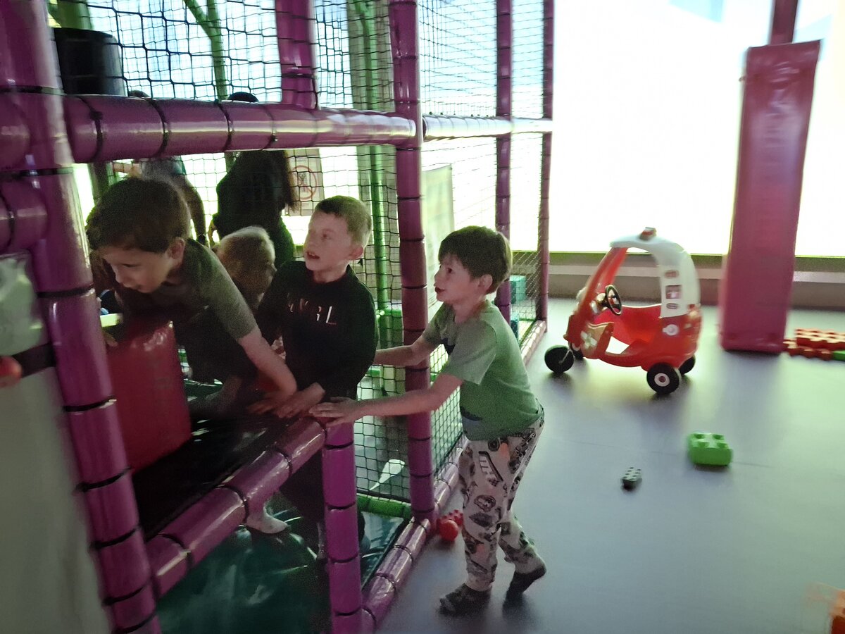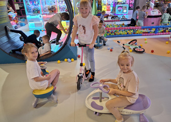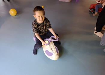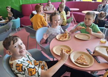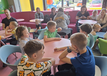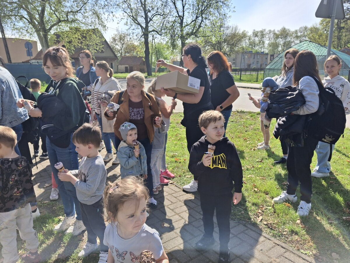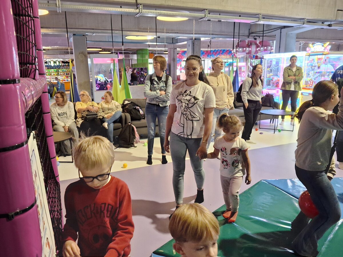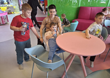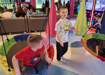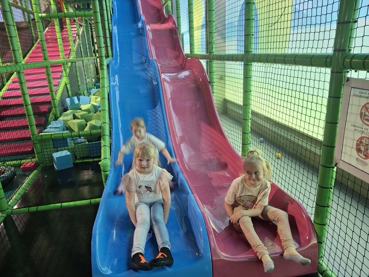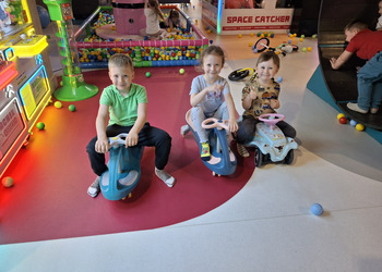 Przedszkolaki radośnie spędziły czas w Sali Zabaw „Holidaypark education & fun” w Poznaniu. Celem wycieczki było kształtowanie umiejętności współdziałania w grupie i z rodzicami poprzez wspólną bezpieczną zabawę. Niezwykłą atrakcją okazała się ogromna konstrukcja składająca się z labiryntu, zjeżdżalni, zjeżdżalni na kołach i basenu z piłeczkami. Dzieci korzystały także z mini pojazdów, skakały na trampolinie. Każdy, kto poczuł zmęczenie, mógł skorzystać z zacisznych kącików, kanap, na których można było odpocząć. Był też kącik konstrukcyjny z dużymi klockami, który sprawił dużo radości każdemu chłopcu i jego tatusiowi. W czasie czterogodzinnego pobytu spędzonego na aktywnych zabawach ruchowych, każdy spalił mnóstwo kalorii. By nabrać sił na nowo dzieci i rodzice zapełnili brzuszki smacznymi przekąskami. Nasz radosny pobyt bardzo szybko dobiegł końca. Pełni niezapomnianych wrażeń i emocji wróciliśmy do Kopaszewa. Podczas drogi powrotnej na żadnej twarzy dzieci i rodziców nie było widać zmęczenia, a uśmiechy i przeżycia będą towarzyszyły wszystkim przez następne dni. Gdy wysiedliśmy z autobusu czekała na wszystkich jeszcze jedna niespodzianka. Karton pełen smacznych lodów.