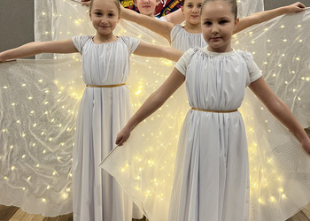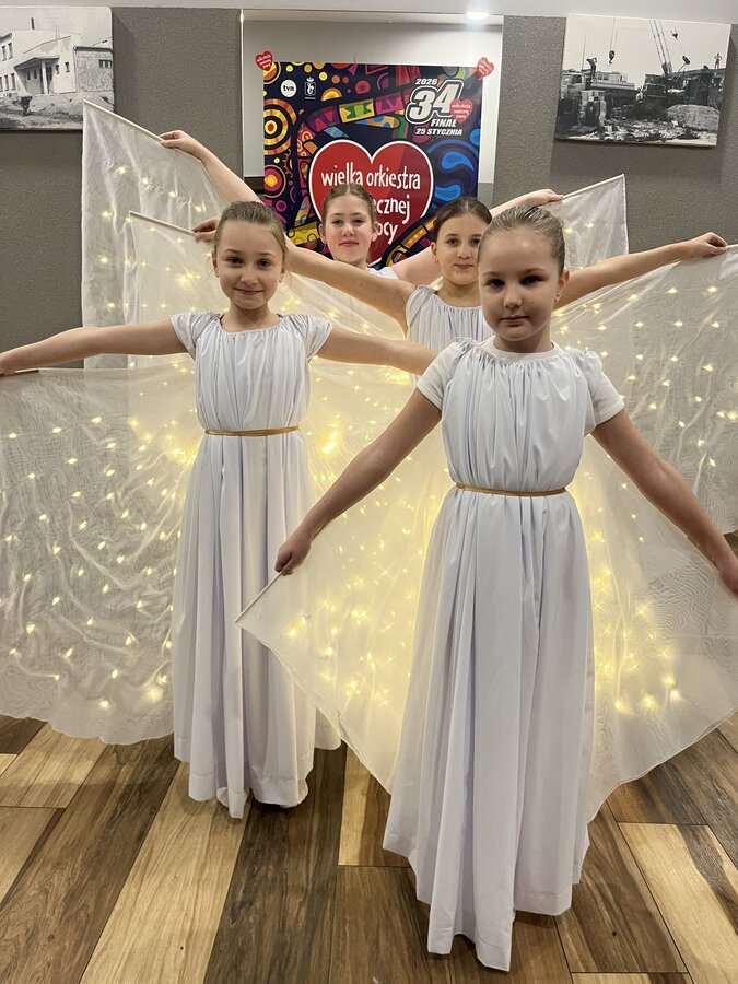 W pierwszej części występu uczennice przedstawiły nastrojowy taniec aniołów, pełen delikatnych ruchów i symboliki. Układ, wykonany do poruszającego utworu „The Spirit of Christmas Past”, niósł przesłanie dobra, nadziei oraz wrażliwości na potrzeby innych, tworząc wyjątkową, refleksyjną atmosferę i podkreślając ideę pomagania, od lat towarzyszącą Wielkiej Orkiestrze Świątecznej Pomocy.