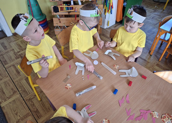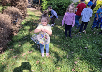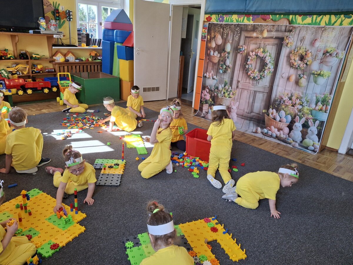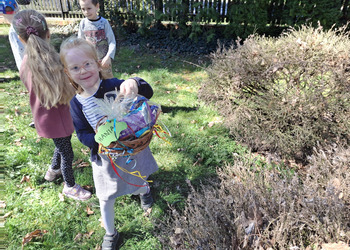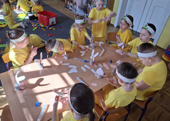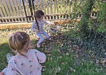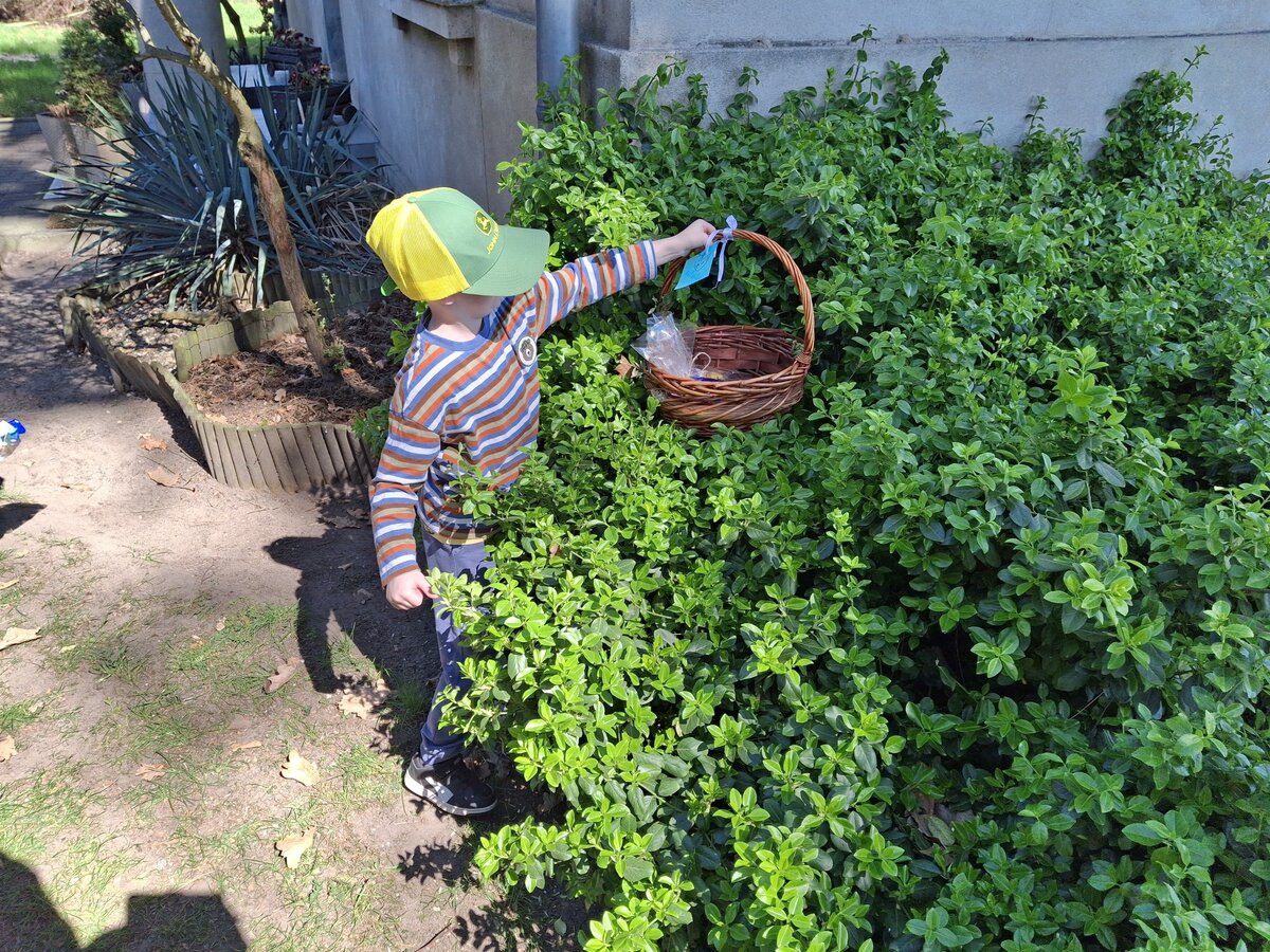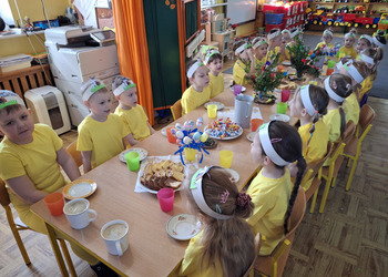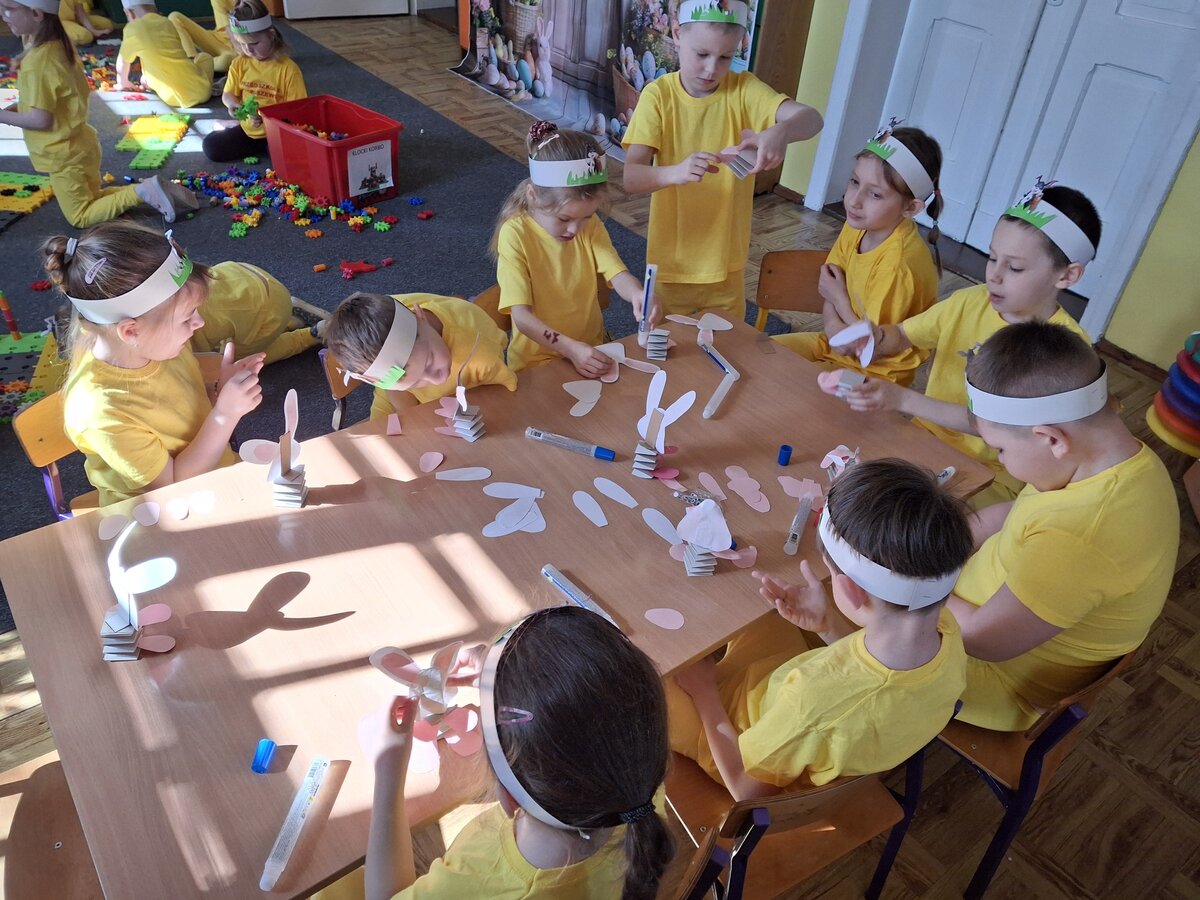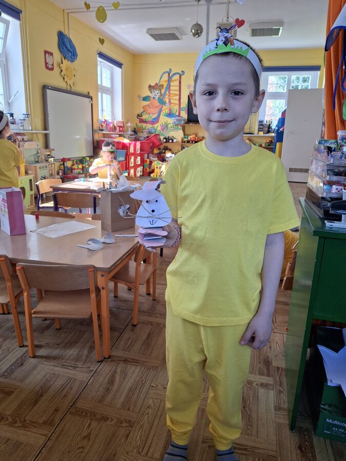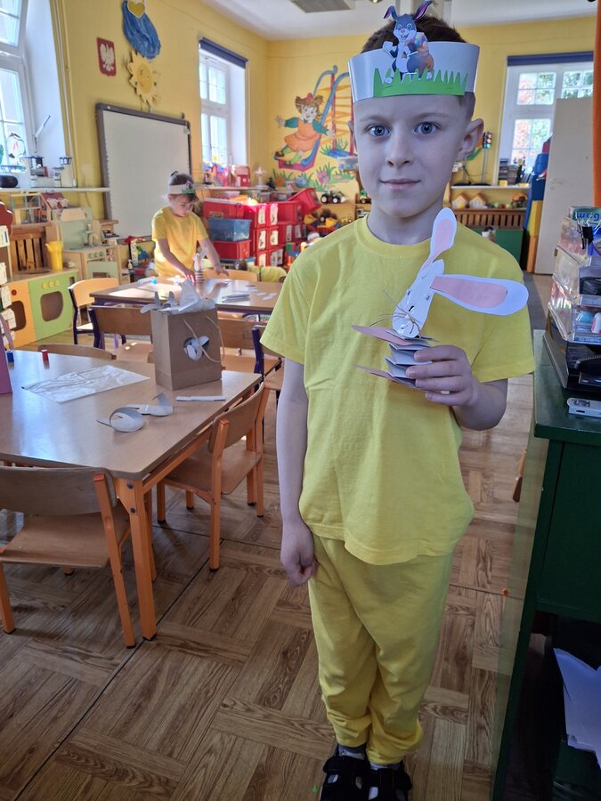 Jedną z najmilszych i najprzyjemniejszych dla dzieci tradycji wielkanocnych jest „ zajączek”. Chodzi on z koszykiem wielkanocnym i zostawia prezenty. Na jego przyjście trzeba się jednak przygotować. Słoneczka przebrały się w odpowiednie ubrania i zrobiły jajka, zajączki z różnych materiałów, które były ozdobą stołu do którego zasiadły częstując się Wielkanocną Babą i słodkościami. Rano wystawiliśmy koszyczki, tak przygotowane gniazdka można było zobaczyć na placu przedszkolnym, pięknie udekorowane i kolorowe. Zajączek żadnego z nich nie pominął. Przedszkolaki długo i niecierpliwie, czekały tego dnia na przyjście „ zajączka”. Toteż wielkie było zdziwienie naszych najmłodszych, gdy wychodząc na plac przedszkolny, odkryli przygotowane specjalnie dla nich niespodzianki. Jednak zdziwienie na twarzach szybko zastąpiły uśmiechy, bo któż z nas nie lubi dostawać prezentów. Na koniec złożyliśmy życzenia wszystkim Rodzicom i zaśpiewaliśmy piosenkę ,,Święta, Święta biją dzwony”. Życzymy Wszystkim Wesołych Świąt.
