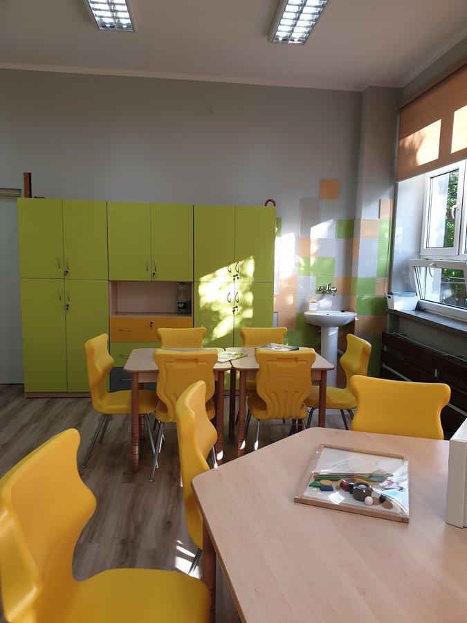 Od pierwszego września w naszej szkole jest nowa sala przeznaczona do prowadzenia specjalistycznych zajęć terapeutycznych z dziećmi. Pomieszczenie to zostało wyremontowane. Podłoga została zmieniona, wymalowano ściany, zamontowano nowe oświetlenie. Zakupiono meble szkolne dla dzieci, nowe tablice informacyjne, jak również przygotowano kącik dla najmłodszych.