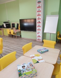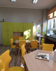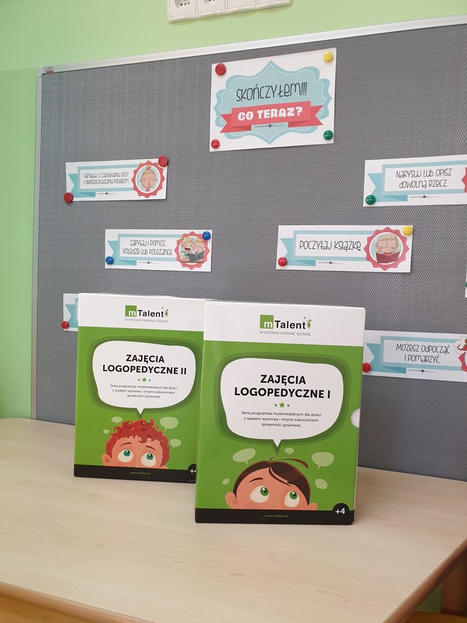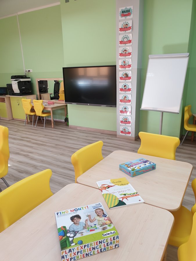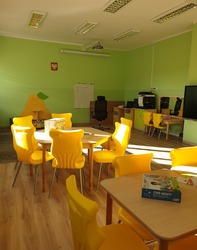 W tej sali odbywają się zajęcia terapeutyczne: korekcyjno-kompensacyjne, terapia logopedyczna i zajęcia rozwijające kompetencje emocjonalno-społeczne. Dodatkowo, do każdego rodzaju tych zajęć zakupiono programy informatyczne, specjalistyczne materiały dydaktyczne, gry planszowe. To wszystko ma jeszcze bardziej uatrakcyjnić prowadzenie zajęć terapeutycznych, aby pomóc dzieciom w trudnościach językowych, komunikacyjnych i emocjonalnych. Przy tak idealnie stworzonych warunkach do pracy z uczniem, efekty działań dydaktycznych będą jeszcze bardziej zadowalające.