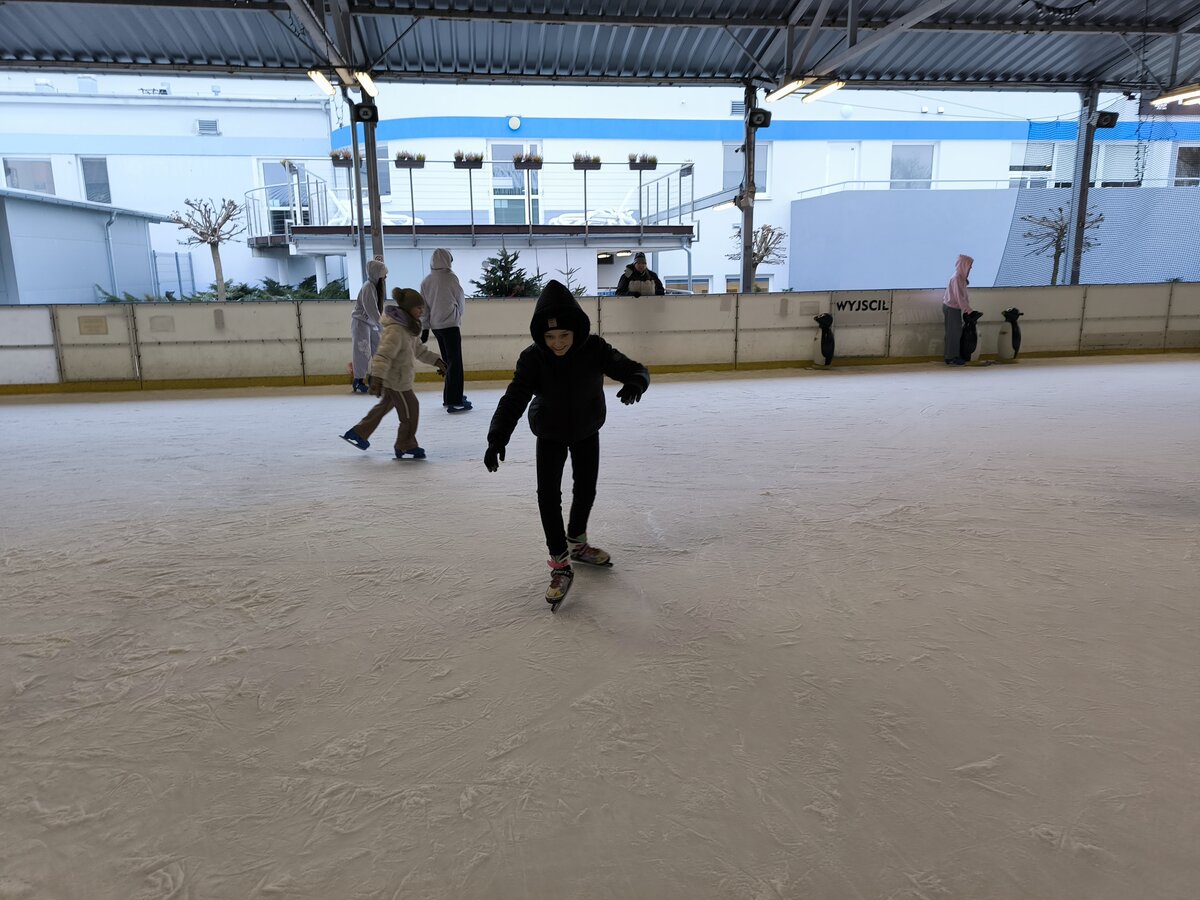 W pierwszym tygodniu ferii na lodowisko do Kościana wybrała się 50-cio osobowa grupa 10 – 15 latków pod opieką nauczycieli z Jerki. Dla uczestników, którzy już nie pierwszy raz korzystali z takich wyjazdów, od razu po wejściu na lodowisko zaczęła się zabawa. Natomiast początkujący niepewnie stawiali swe pierwsze „kroki” na lodzie. Do nich z pomocą przyszli opiekunowie i oczywiście… pingwinki. Było dużo śmiechu i żartów, ale przy okazji też nauki i doskonalenia jazdy na łyżwach. Po dwóch godzinach zajęć na lodowisku wszyscy czuli zmęczenie, ale też wszyscy potrafili jeździć na łyżwach. Po posiłku regeneracyjnym najedzeni, wypoczęci i zadowoleni wróciliśmy do domów.