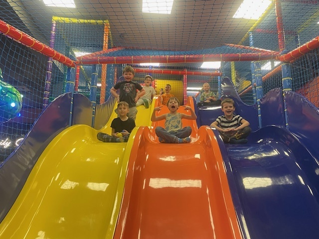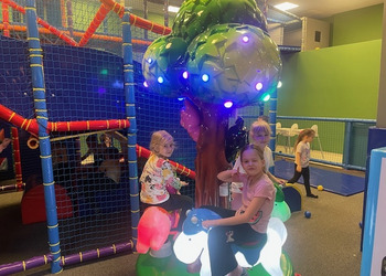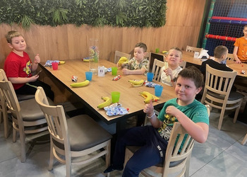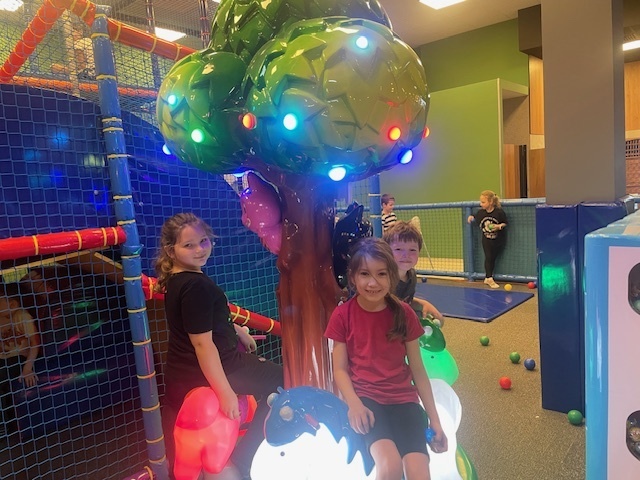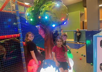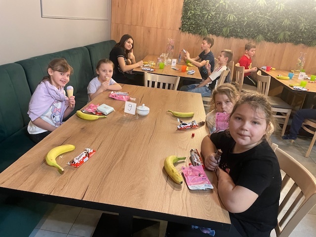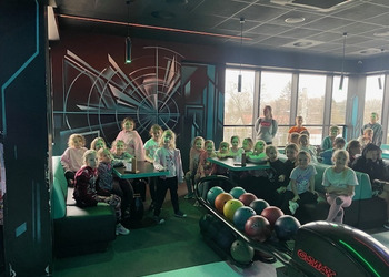 Wyjazd dla młodszych dzieci odbył się w drugim tygodniu ferii. Mali uczestnicy wycieczki pojechali do Śmigla do Family Club. Najpierw udali się na plac zabaw. Niezwykłą frajdą okazała się ogromna konstrukcja składająca się z labiryntu przejść, zjeżdżalni, ściany wspinaczkowej, trampolin, karuzeli i basenu z piłeczkami. Po dwóch godzinach świetnej zabawy trzeba było uzupełnić spalone kalorie. Po posiłku regeneracyjnym wszyscy uczestnicy udali się na kręgielnie. Zajęcia na kręgielni były wspaniałą rozrywką dla dzieci. Gra okazała się niezwykle wciągająca. Uczestnicy świetnie radzili sobie z tą nową dyscypliną sportu. Dużą frajdą było zbijanie kręgli i zdobywanie punktów. Niestety wszystko co dobre szybko się kończy.