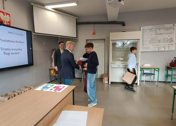 Uczniowie mieli za zadanie podpisać flagi 50 wybranych państw. Jednemu z nich udało się być bezbłednym, natomiast kilkoro popełniło jedną pomyłkę, wtedy liczył się czas odpowiedzi.