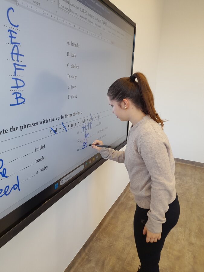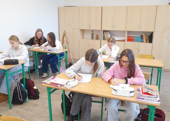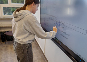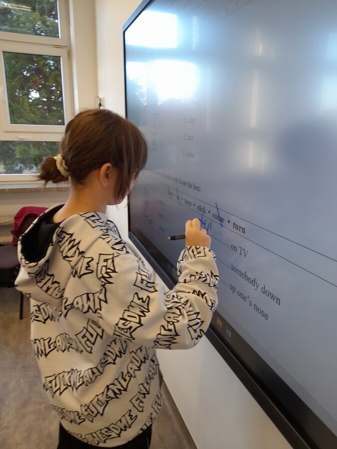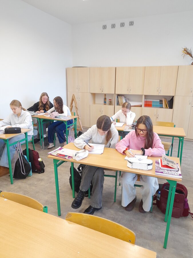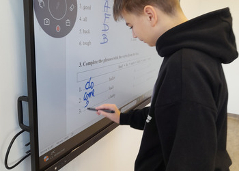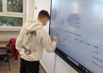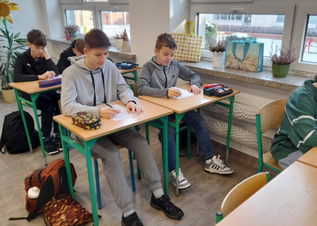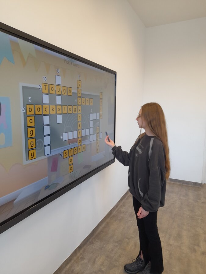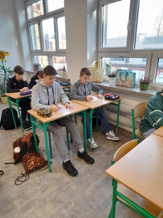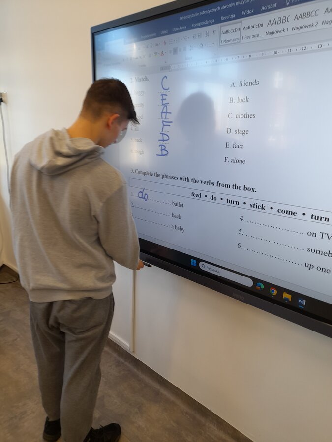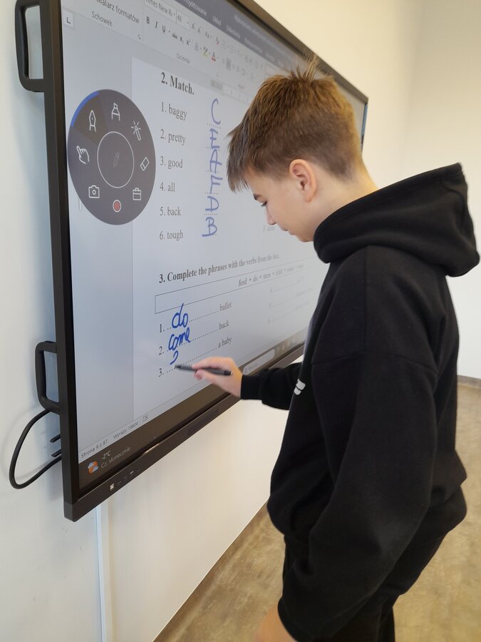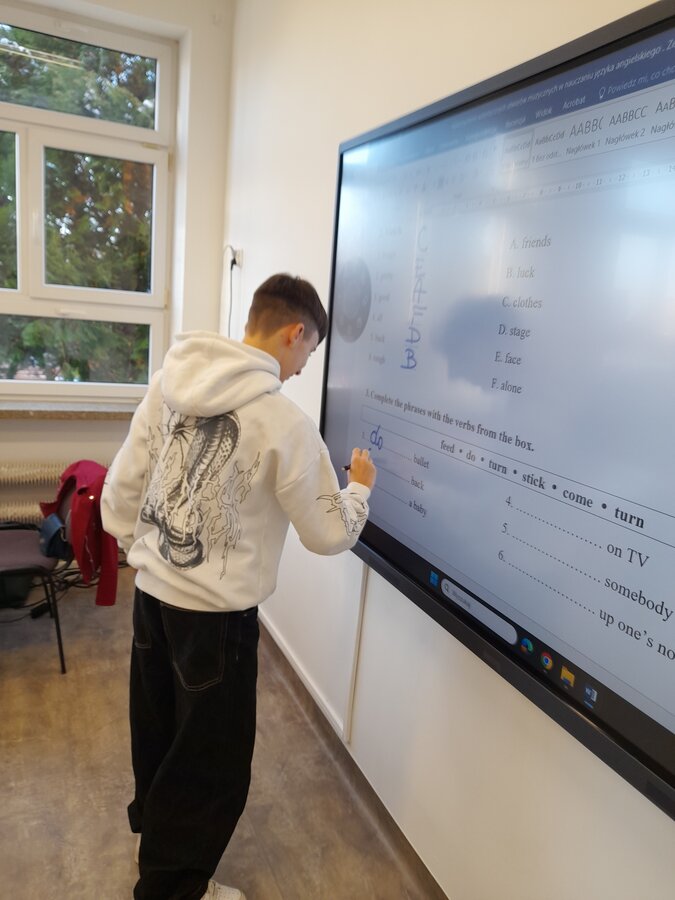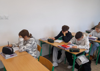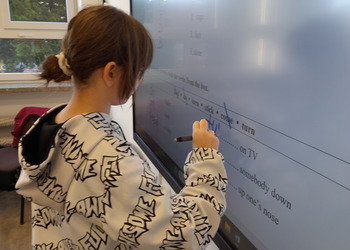 W roku szkolnym 2025/2026 uczniowie oddziału dwujęzycznego realizują innowację pedagogiczną „Wykorzystanie autentycznych utworów muzycznych w nauczaniu języka angielskiego w oddziale dwujęzycznym.” Przynajmniej raz w miesiącu podczas lekcji języka angielskiego rozbrzmiewają dźwięki popularnych przebojów w tym języku. Wykorzystanie autentycznych utworów muzycznych może bardziej uzmysłowić uczniom, że język angielski to nie „sztuczny wytwór” dostępny tylko w podręcznikach i na szkolnej tablicy, ale jest to narzędzie, dzięki którym ludzie mogą się porozumiewać w życiu codziennym, a także wyrażać swoje obserwacje, przemyślenia i emocje, np. tworząc teksty piosenek. Jest to okazja do lepszego osłuchania się z brzmieniem języka, wzbogacenia i utrwalenia słownictwa oraz struktur gramatycznych, a także doskonalenia poprawnej wymowy i pisowni. Podczas zajęć realizowanych w ramach innowacji siódmoklasiści pracują na kartach pracy, jak również wykonują ćwiczenia przygotowane dla nich m.in. na stronie wordwall.net.