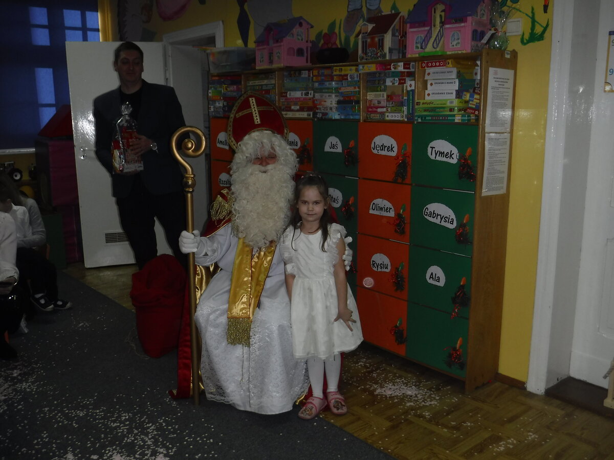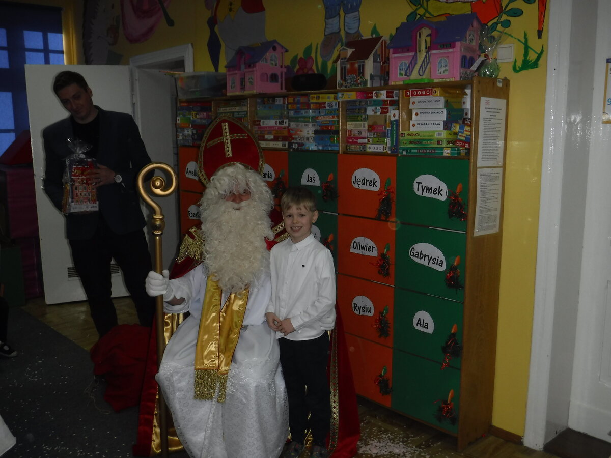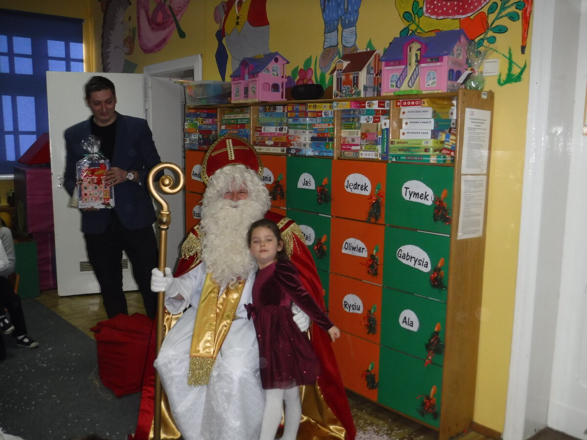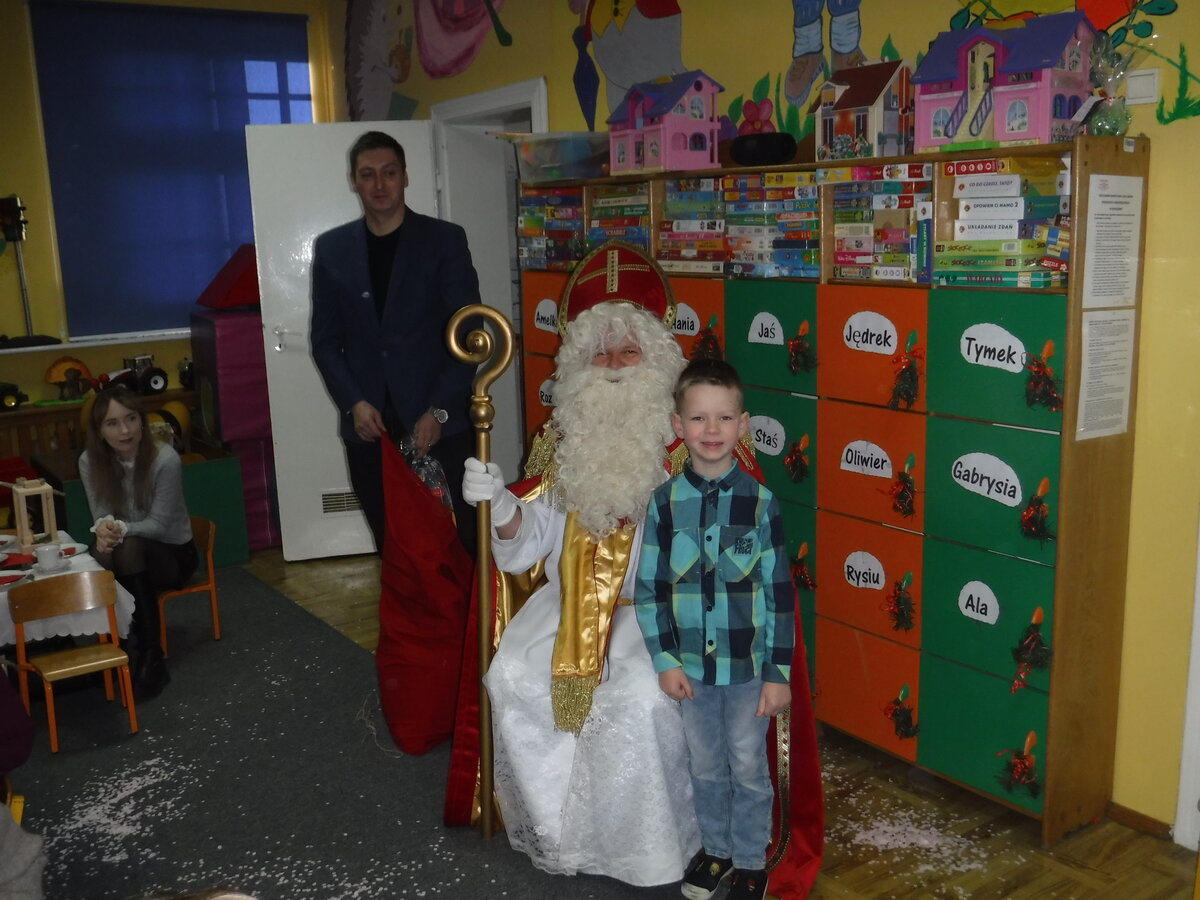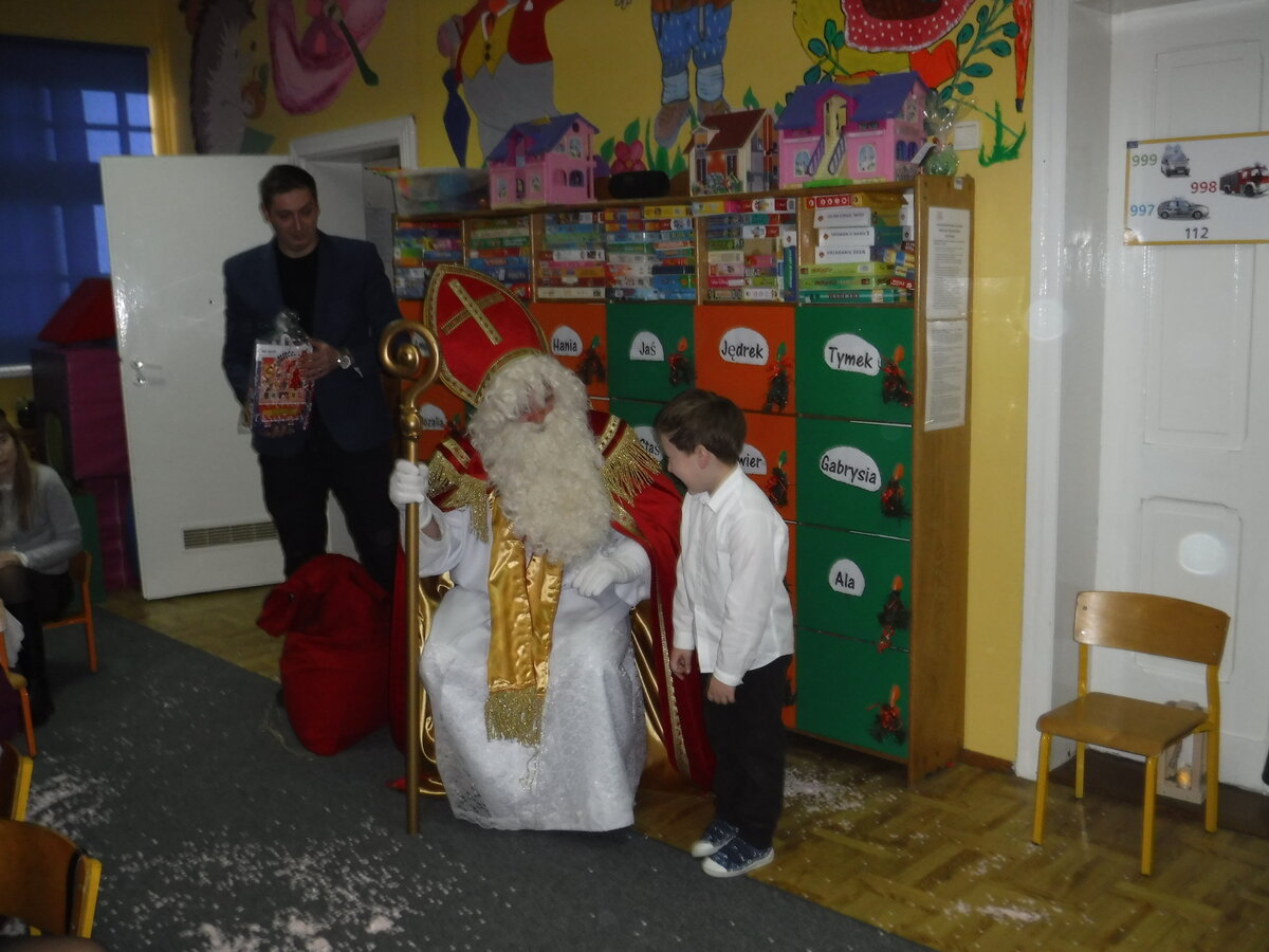 Po Jasełkach „Słoneczka” odwiedził , długo wyczekiwany, Święty Mikołaj z prezentami. Rozmawiał z każdym dzieckiem, wszystkim przedszkolakom wręczył piękne prezenty. Pożegnał się słowami: „Do zobaczenia za rok”. Uroczystość zakończyła się poczęstunkiem.