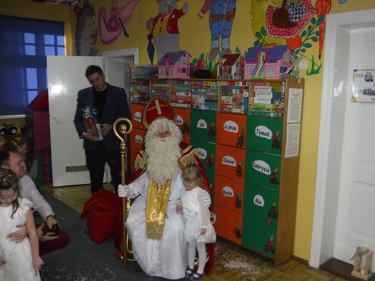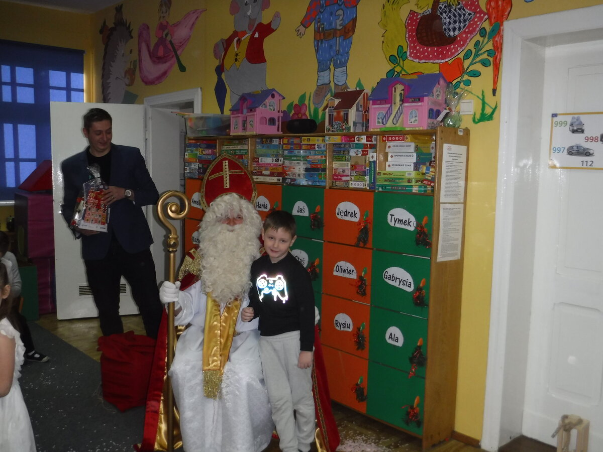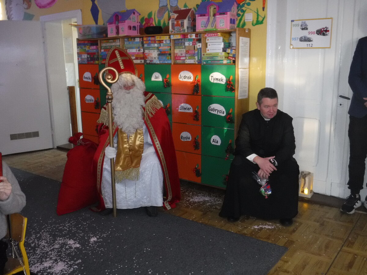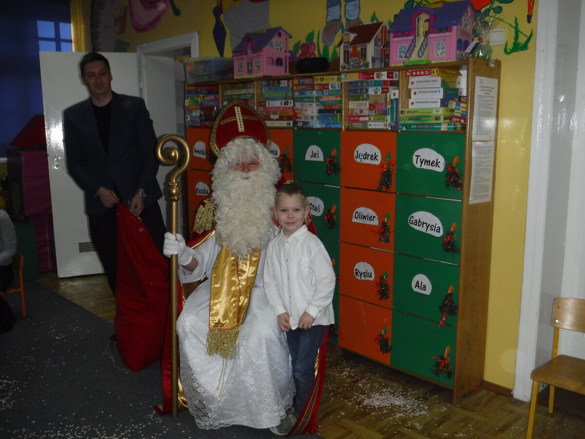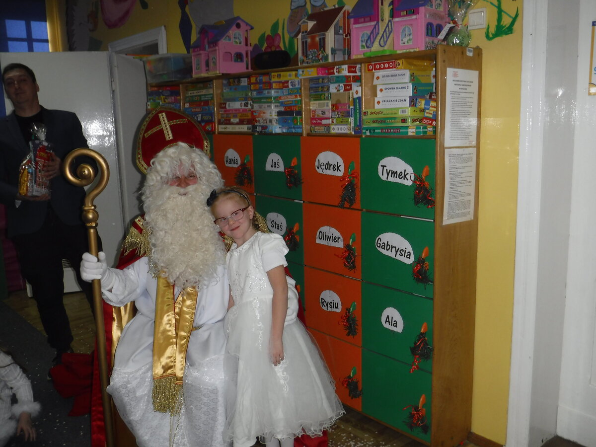 Po Jasełkach „Słoneczka” odwiedził , długo wyczekiwany, Święty Mikołaj z prezentami. Rozmawiał z każdym dzieckiem, wszystkim przedszkolakom wręczył piękne prezenty. Pożegnał się słowami: „Do zobaczenia za rok”. Uroczystość zakończyła się poczęstunkiem.