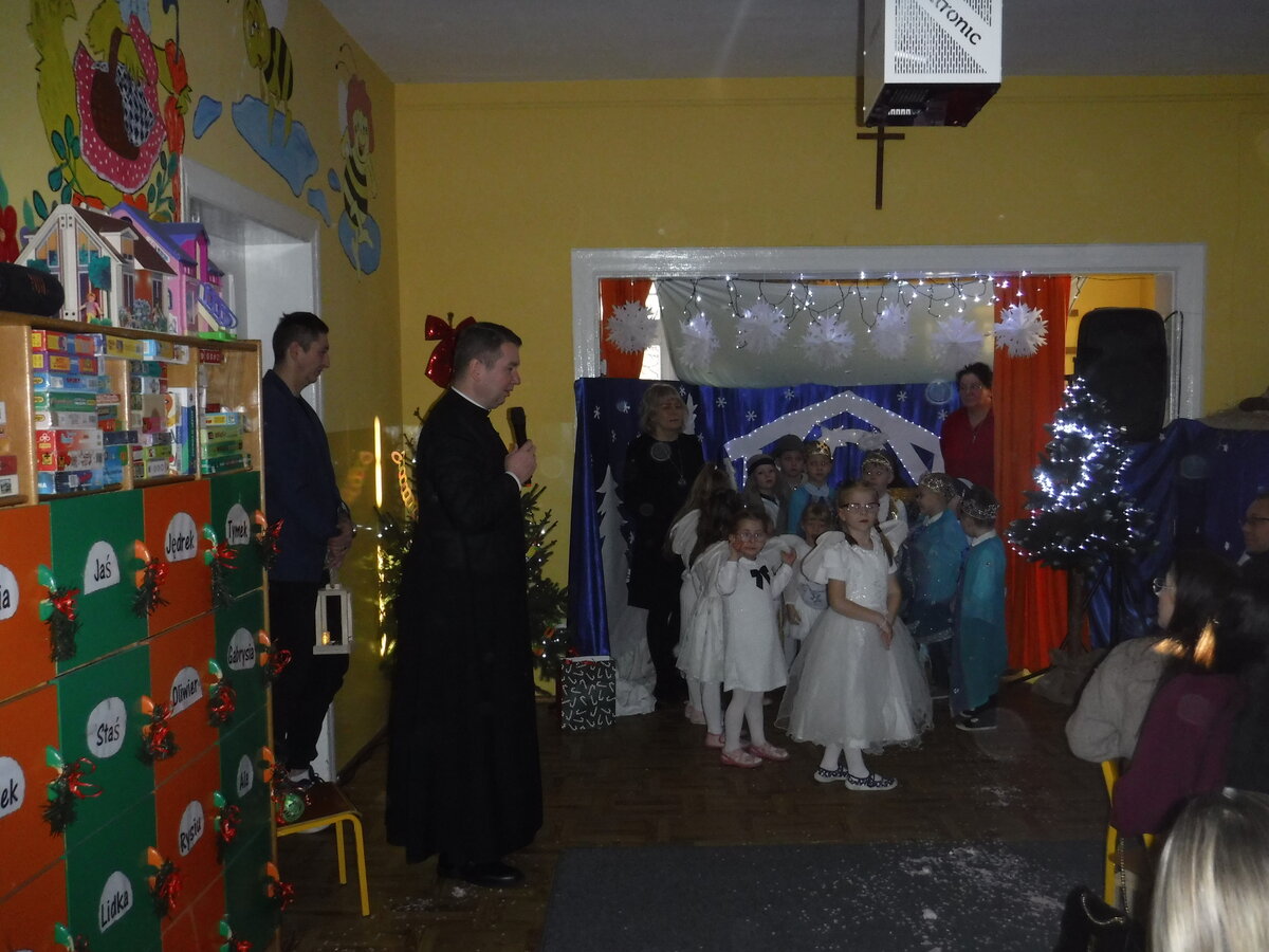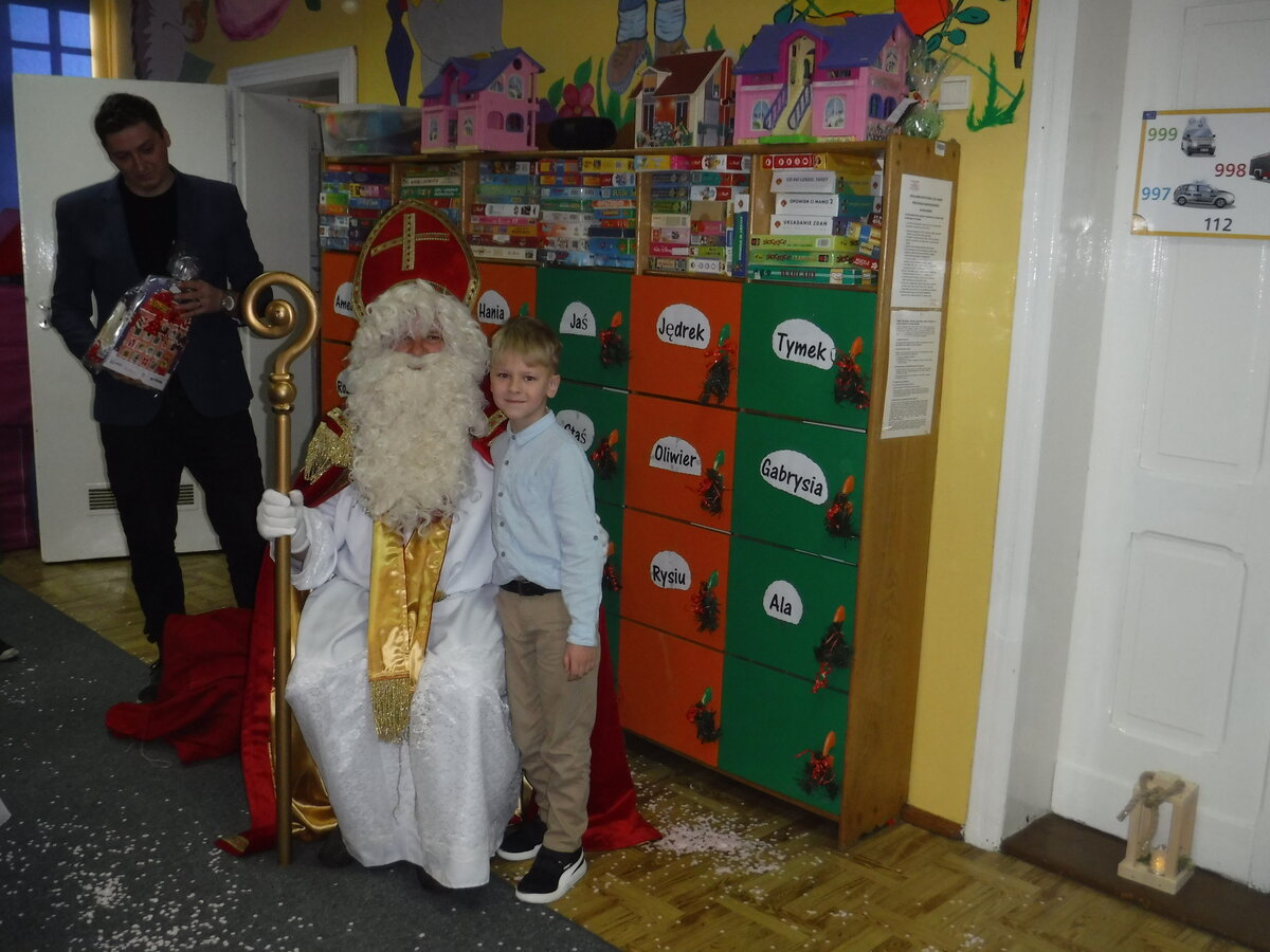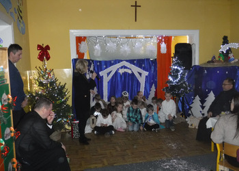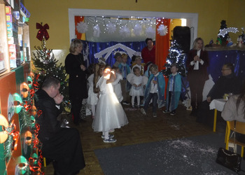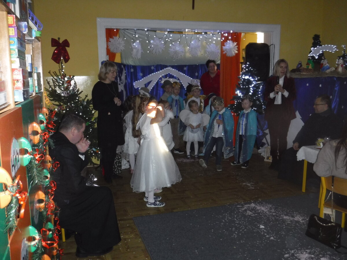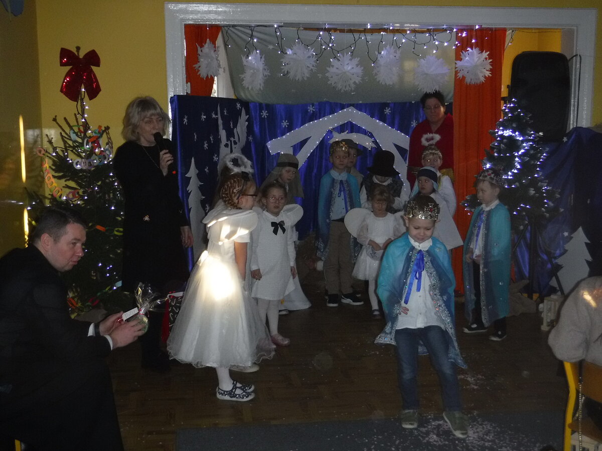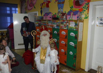 Po Jasełkach „Słoneczka” odwiedził , długo wyczekiwany, Święty Mikołaj z prezentami. Rozmawiał z każdym dzieckiem, wszystkim przedszkolakom wręczył piękne prezenty. Pożegnał się słowami: „Do zobaczenia za rok”. Uroczystość zakończyła się poczęstunkiem.