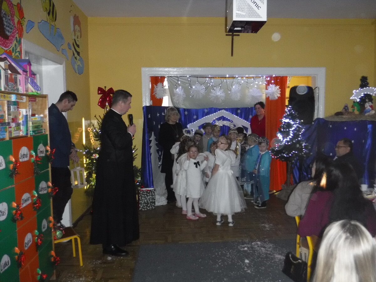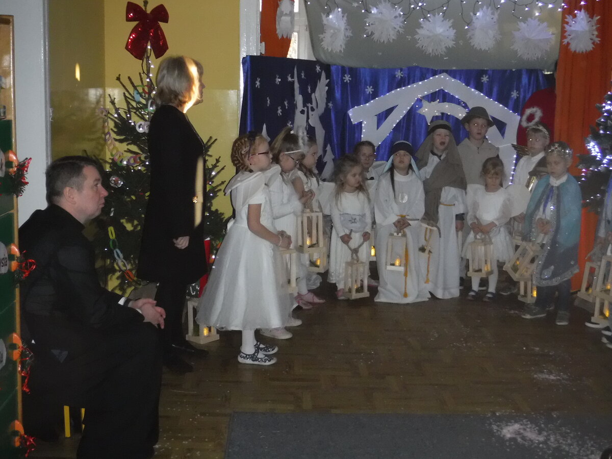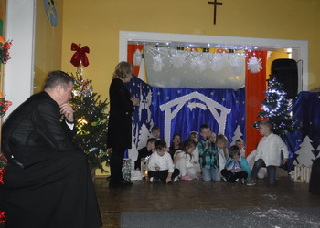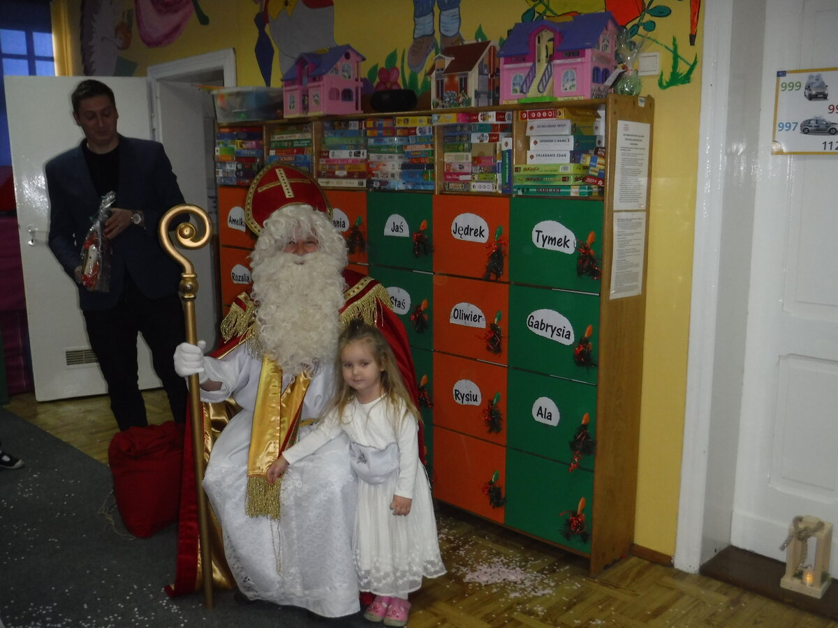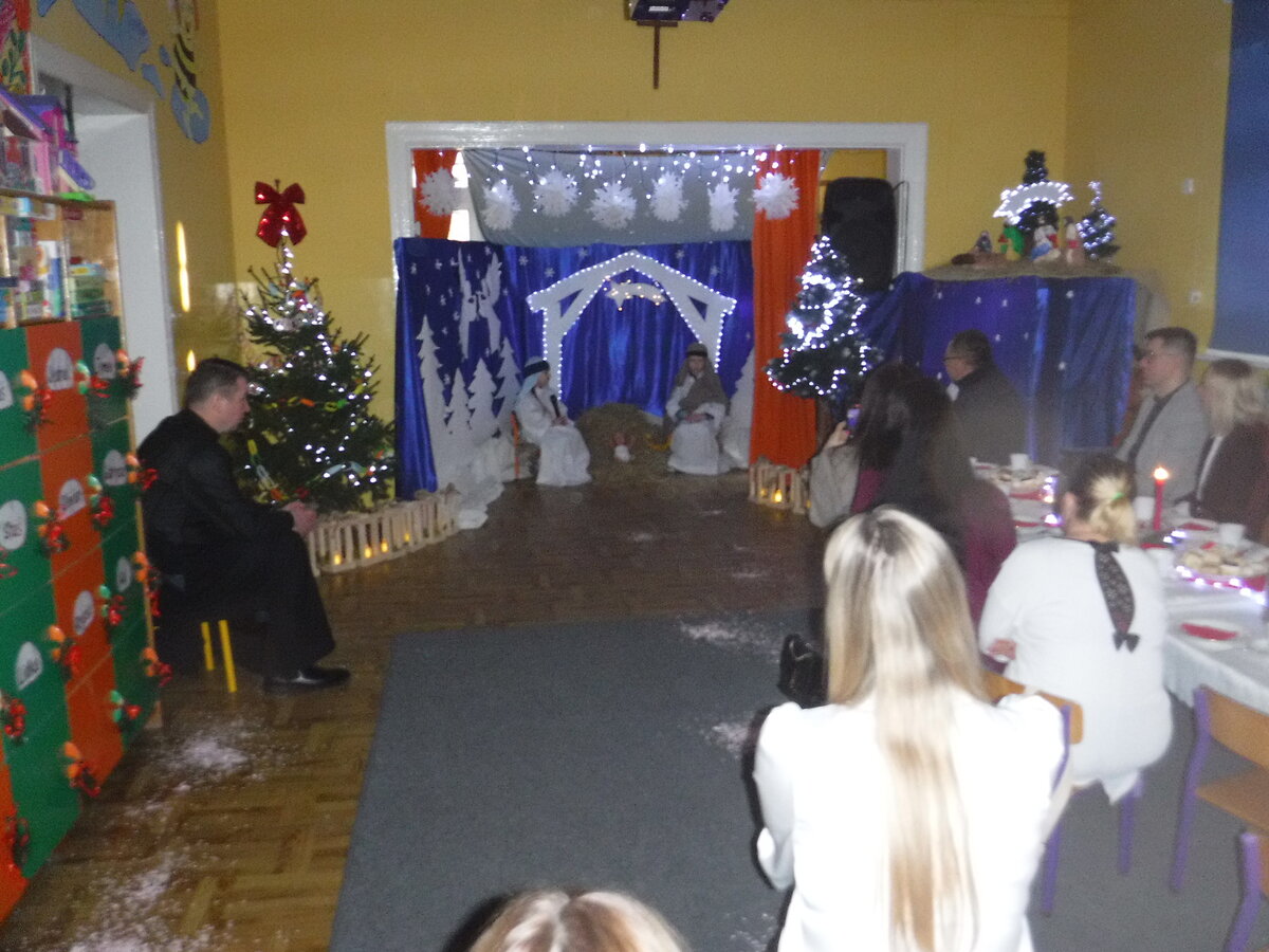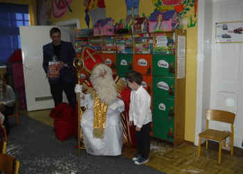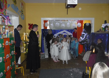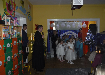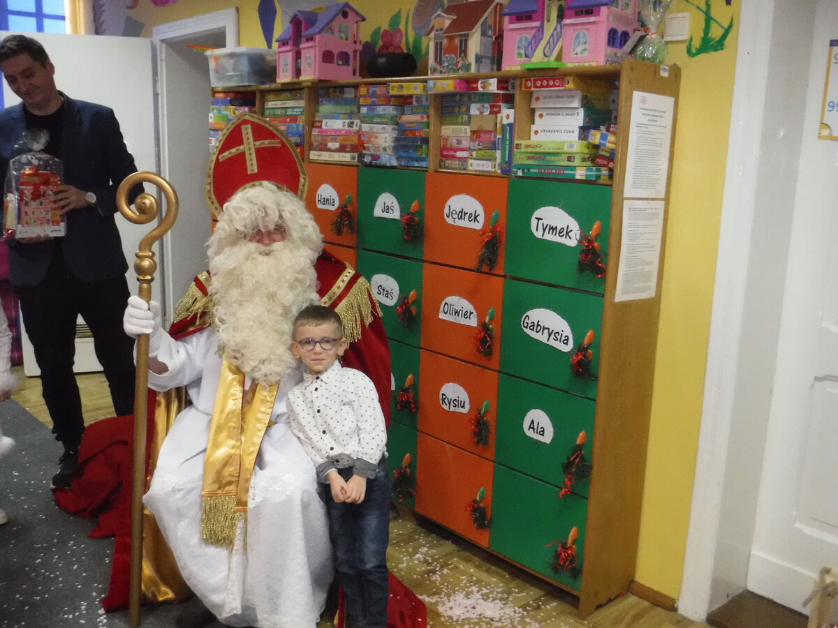 Po Jasełkach „Słoneczka” odwiedził , długo wyczekiwany, Święty Mikołaj z prezentami. Rozmawiał z każdym dzieckiem, wszystkim przedszkolakom wręczył piękne prezenty. Pożegnał się słowami: „Do zobaczenia za rok”. Uroczystość zakończyła się poczęstunkiem.