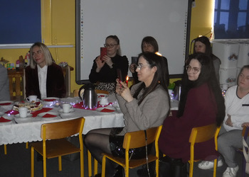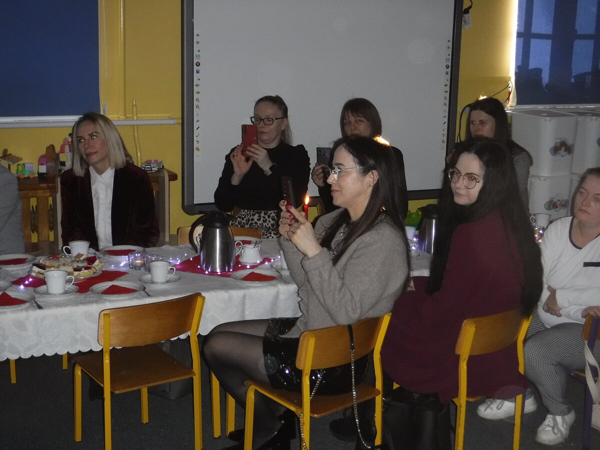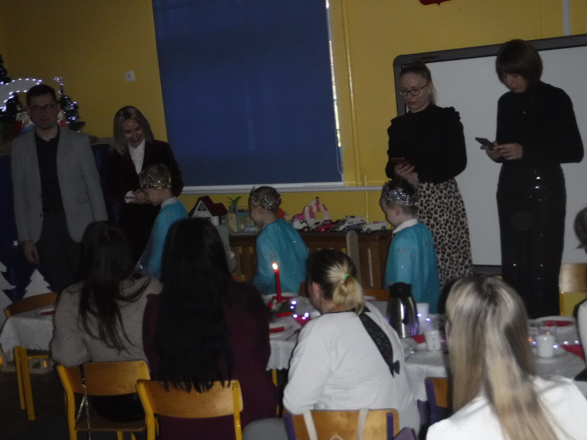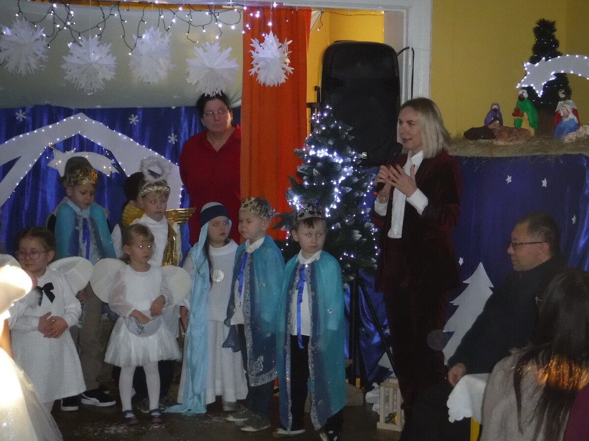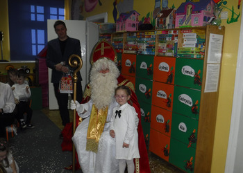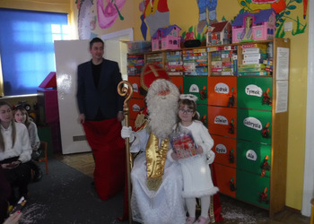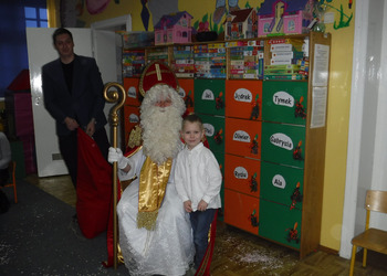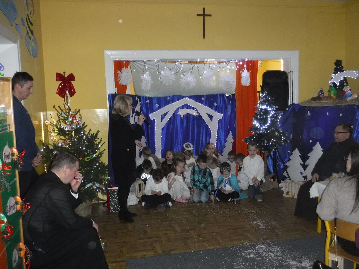 Po Jasełkach „Słoneczka” odwiedził , długo wyczekiwany, Święty Mikołaj z prezentami. Rozmawiał z każdym dzieckiem, wszystkim przedszkolakom wręczył piękne prezenty. Pożegnał się słowami: „Do zobaczenia za rok”. Uroczystość zakończyła się poczęstunkiem.