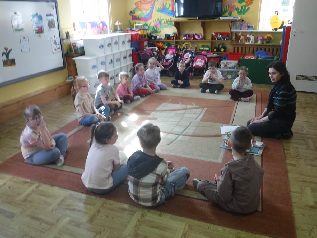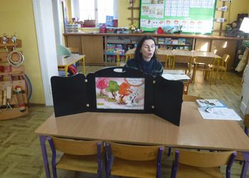 We wtorek w naszym przedszkolu odbyło się wyjątkowe spotkanie z bibliotekarką panią Lidią Szczerbal. Celem spotkania było rozwijanie zainteresowania książkami. Pani Lidka przedstawiła naszym przedszkolakom bajkę pt. „Cztery pory roku” wykorzystując kamishibai czyli japońską sztukę opowiadania i czytania. Kamishibai to wyjątkowa forma teatru, gdzie za pomocą obrazków wsuwanych do drewnianej skrzynki snuje się opowieść tak, jak ją czytający czuje. Bajka ta wzbudziła w dzieciach wiele emocji i zachęciła do rozmów o porach roku oraz ich charakterystycznych cechach.