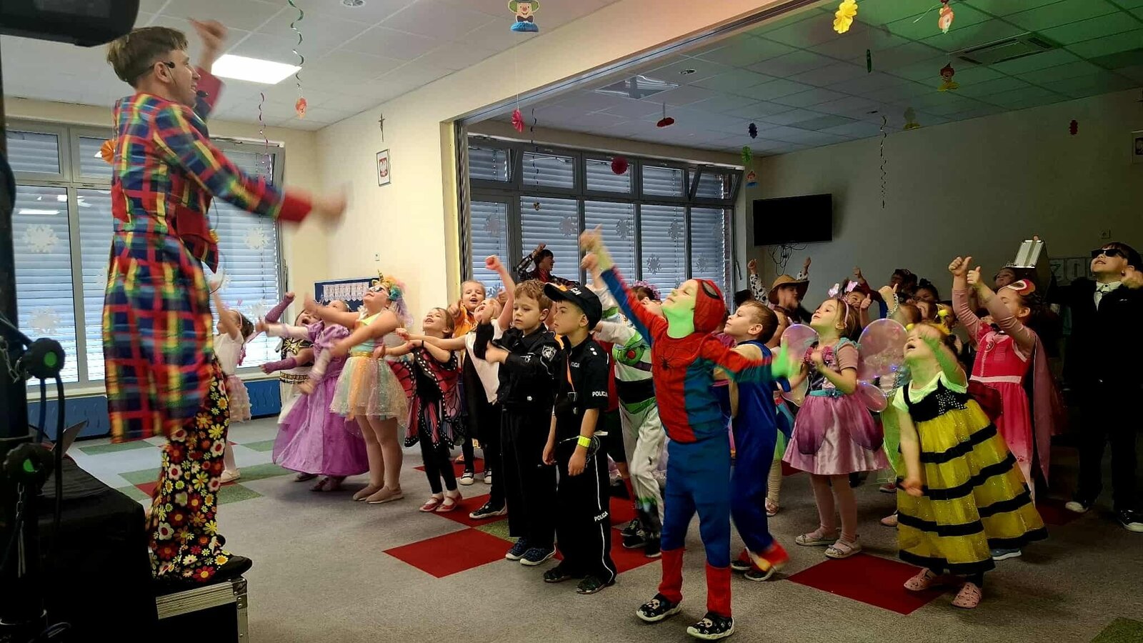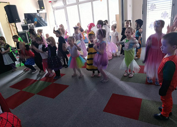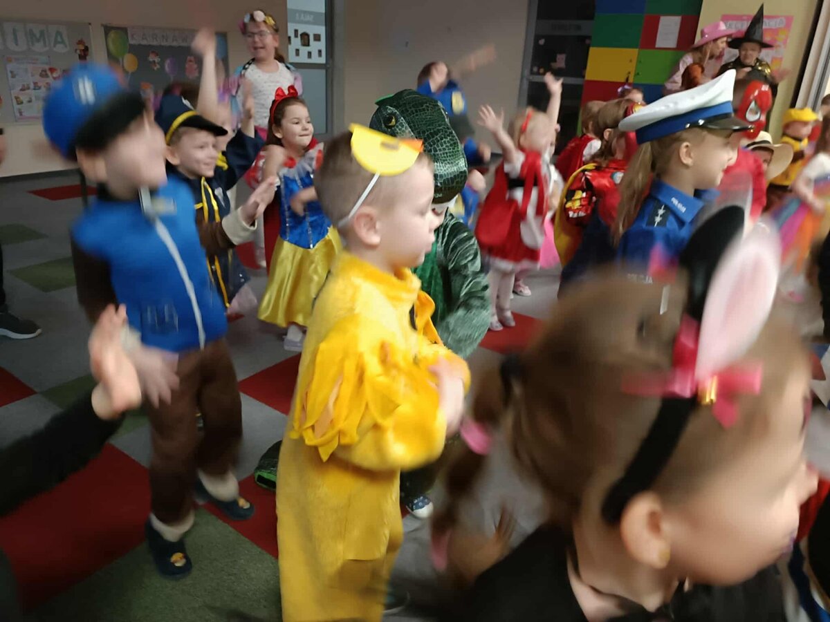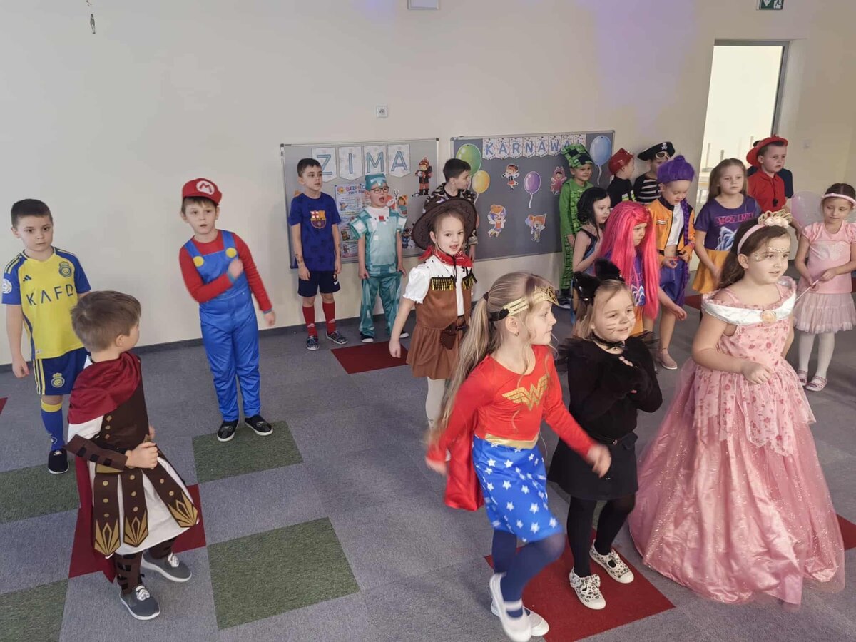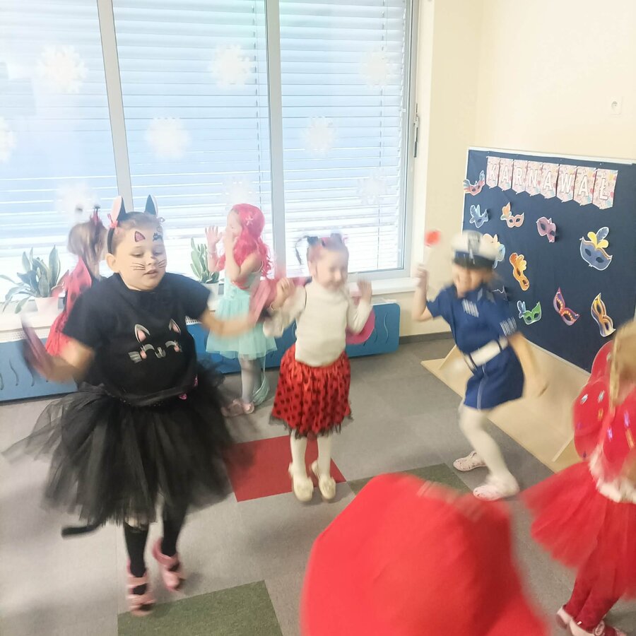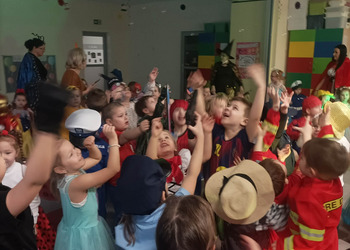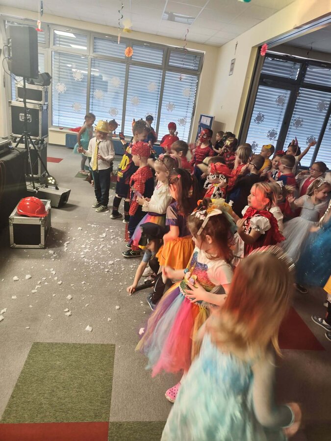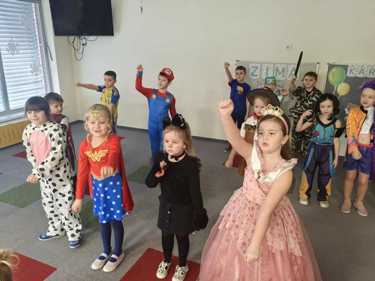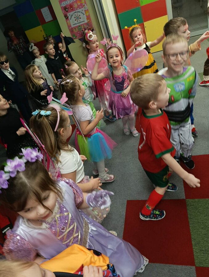Karnawał to miła tradycja przepełniona muzyką i zabawą, gdzie ważnym elementem tego okresu są bale karnawałowe. Bal karnawałowy dla przedszkolaków to dzień niezwykły, często wyczekiwany przez wiele tygodni. Jest atrakcją bardzo lubianą przez dzieci, dostarczającą im wielu przeżyć i radości. Tak też było u nas. W dniu 12.02.2026 r. w naszym przedszkolu odbył się bal karnawałowy. Tego dnia już od rana w przedszkolu pojawiały się kolorowe postacie. Dzieci przebrane były za bohaterów znanych bajek. Rozpoznać dzieci było bardzo trudno. Do Przedszkola w Jerce zawitały dzieci z grupy Słoneczek z Kopaszewa, które wspólnie świetnie się bawiły. Dzieci miały możliwość pozowania do zdjęć. Odbyły się również gry , zabawy i tańce w udekorowanej sali balowej z udziałem DJ Krzyśka. Na sali podczas pląsów robiło się kolorowo, wszyscy bawili się wesoło, uśmiech nie znikał z twarzy mimo chwilowego zmęczenia. Bal umożliwił dzieciom i wychowawcom spędzenie czasu w miłej atmosferze. Wspólna zabawa przyniosła wiele radości naszym wychowankom, a to było głównym celem tego balu. Po zabawie był czas na słodkiego pączka z okazji Tłustego Czwartku. Dziękujemy Słoneczkom za przybycie i zapraszamy ponownie :-)