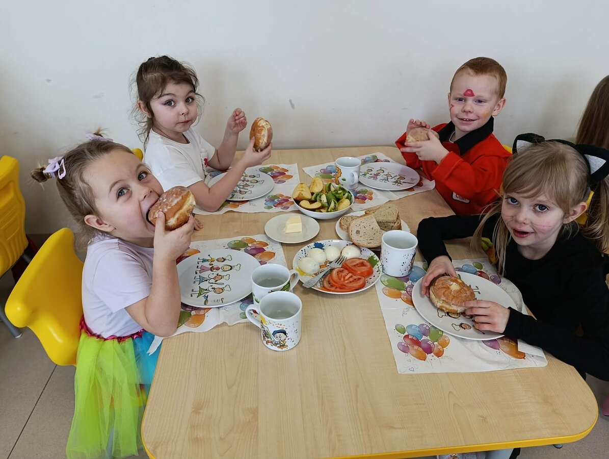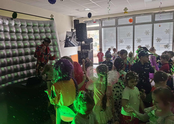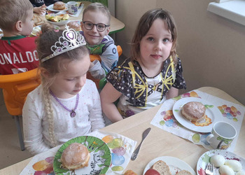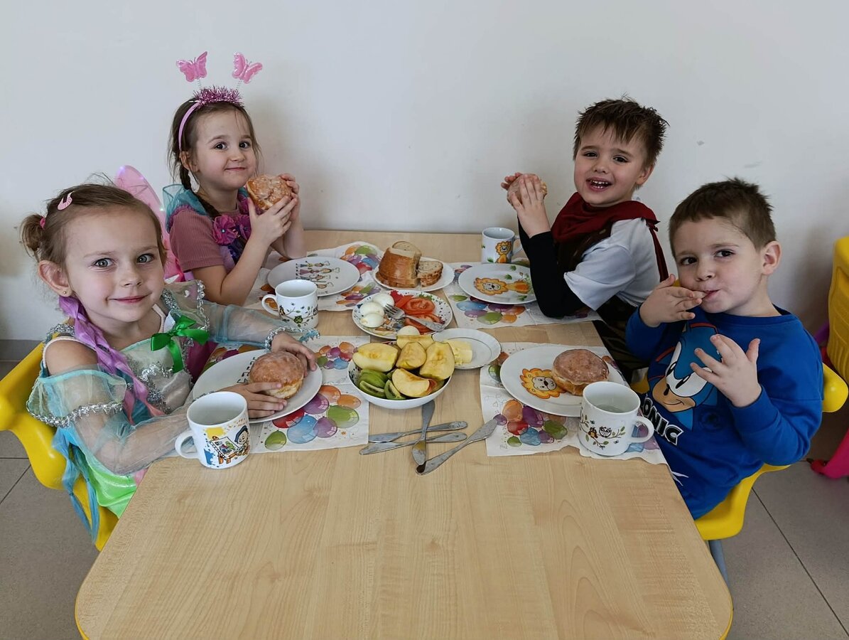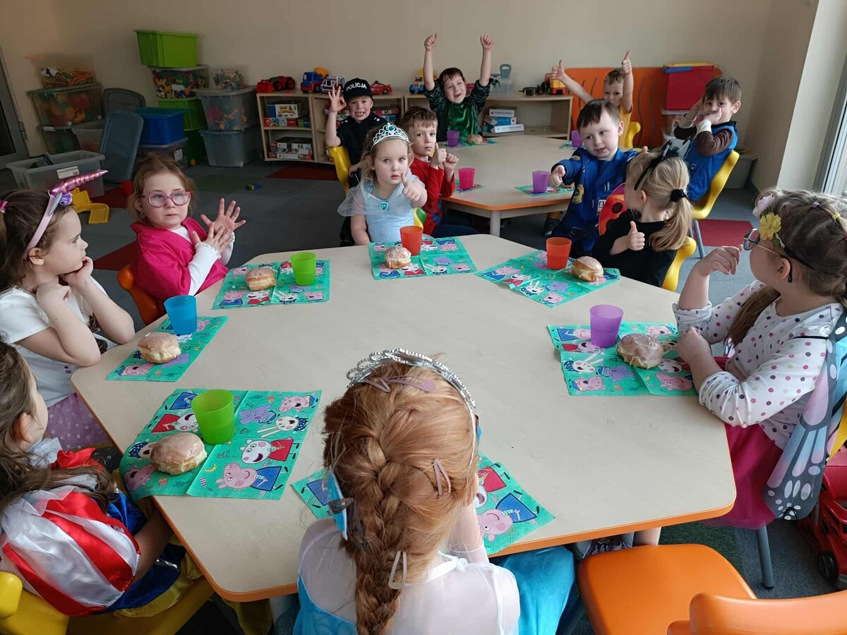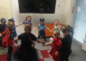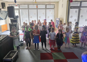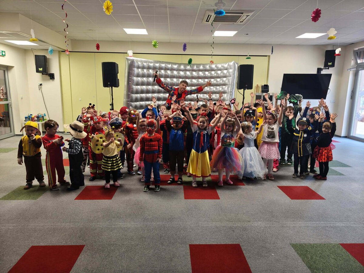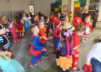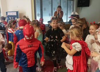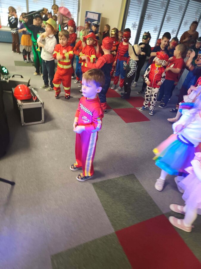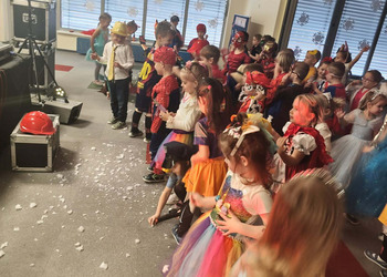 Karnawał to miła tradycja przepełniona muzyką i zabawą, gdzie ważnym elementem tego okresu są bale karnawałowe. Bal karnawałowy dla przedszkolaków to dzień niezwykły, często wyczekiwany przez wiele tygodni. Jest atrakcją bardzo lubianą przez dzieci, dostarczającą im wielu przeżyć i radości. Tak też było u nas. W dniu 12.02.2026 r. w naszym przedszkolu odbył się bal karnawałowy. Tego dnia już od rana w przedszkolu pojawiały się kolorowe postacie. Dzieci przebrane były za bohaterów znanych bajek. Rozpoznać dzieci było bardzo trudno. Do Przedszkola w Jerce zawitały dzieci z grupy Słoneczek z Kopaszewa, które wspólnie świetnie się bawiły. Dzieci miały możliwość pozowania do zdjęć. Odbyły się również gry , zabawy i tańce w udekorowanej sali balowej z udziałem DJ Krzyśka. Na sali podczas pląsów robiło się kolorowo, wszyscy bawili się wesoło, uśmiech nie znikał z twarzy mimo chwilowego zmęczenia. Bal umożliwił dzieciom i wychowawcom spędzenie czasu w miłej atmosferze. Wspólna zabawa przyniosła wiele radości naszym wychowankom, a to było głównym celem tego balu. Po zabawie był czas na słodkiego pączka z okazji Tłustego Czwartku. Dziękujemy Słoneczkom za przybycie i zapraszamy ponownie :-)