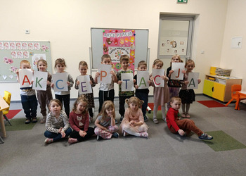 Przedszkolaki z Jerki w okresie od 1 listopada 2025 r. do 31 stycznia 2026 r. brały udział w Międzynarodowym Projekcie Edukacyjnym „Jestem OK!”. Celem przedsięwzięcia było rozwijanie kompetencji społecznych i emocjonalnych najmłodszych. Podczas realizacji projektu dzieci uczyły się wzajemnego szacunku, empatii i życzliwości, wzmacniały poczucie własnej wartości oraz budowały atmosferę bezpieczeństwa i współpracy w grupie. Poznawały również sposoby radzenia sobie w trudnych sytuacjach, ćwiczyły asertywność oraz uczyły się, jak wyrażać swoje emocje, potrzeby w sposób akceptowalny dla innych. Ważnym elementem zajęć były wspólne rozmowy i aktywności inspirowane książkami „Jesteśmy dla siebie dobrzy”, poruszającą temat życzliwości, empatii i relacji rówieśniczych oraz „Nie mów tak do mnie”, dotyczącą komunikacji, wyznaczania granic i asertywności. Zwieńczeniem całej projektowej przygody były obchody Międzynarodowego Dnia Akceptacji, przypadającego 20 stycznia. Była to doskonała okazja do podsumowania zdobytej wiedzy i przypomnienia, jak ważne są wzajemny szacunek, akceptacja i dobre relacje z innymi.