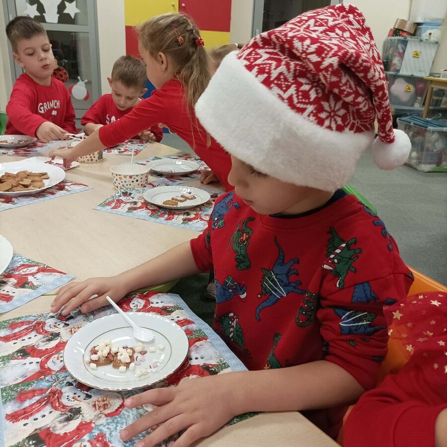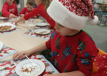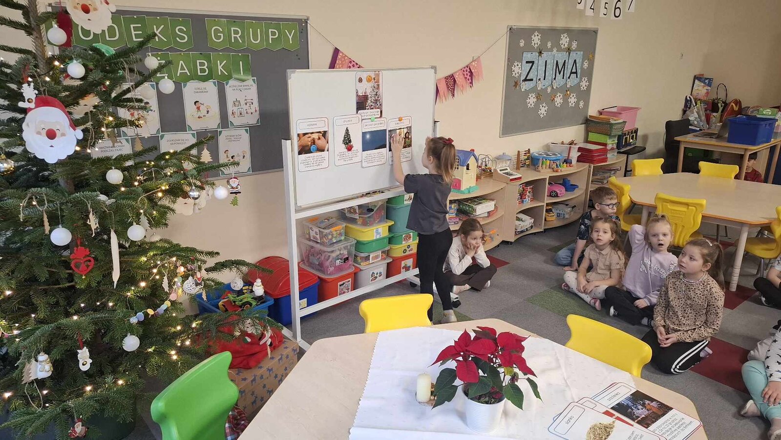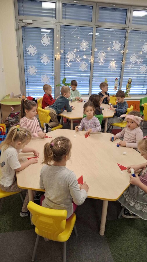 W czasie świątecznym w grudniu i styczniu nasze przedszkole realizowało projekt edukacyjny "Spotkanie przy choince". W czasie wykonywania zadań projektowych dzieci poznały min. tradycje i zwyczaje świąteczne, rozwijały uzdolnienia plastyczne, wzmaciały więci rodzinne i koleżeńskie.