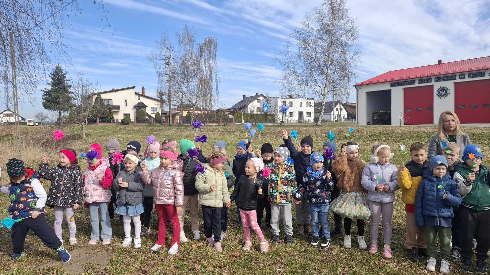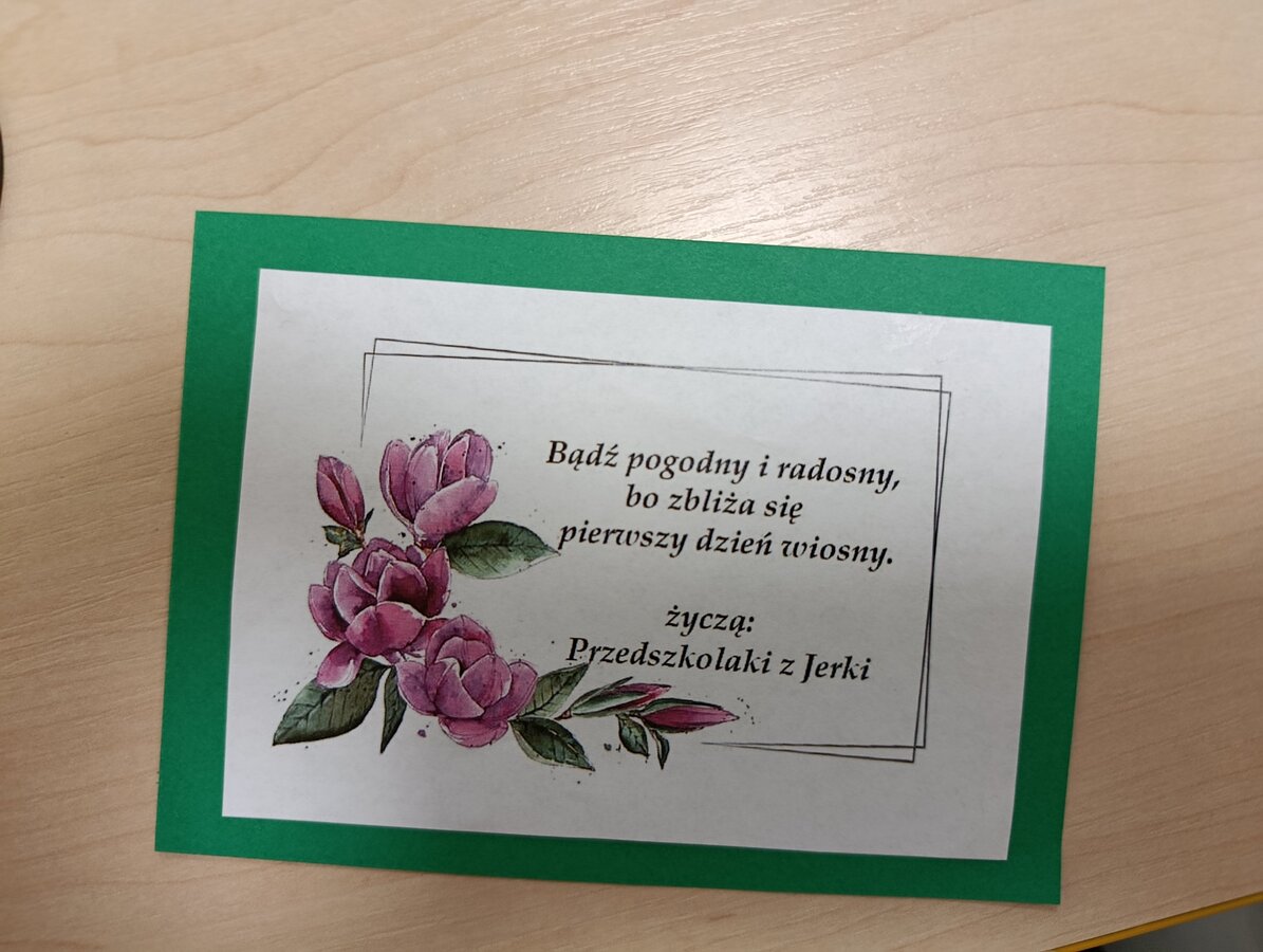 Dzieci z Przedszkola Samorządowego w Jerce pożegnały zimę i przywitały nową porę roku. Wyruszyły na spacer z przygotowanymi wcześniej kolorowymi kwiatami. Umieszczały też w skrzynkach pocztowych, kartki z wiosennymi życzeniami dla mieszkańców Jerki. Kulminacyjnym momentem było symboliczne palenie Marzanny, oczywiście w asyście niezastąpionych Panów strażaków. Wydarzeniu towarzyszyła radosna atmosfera, nie zabrakło wspólnego śpiewu i dziecięcej energii, która skutecznie „przepędziła” zimę.