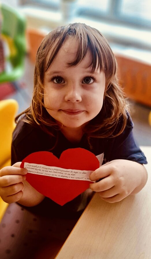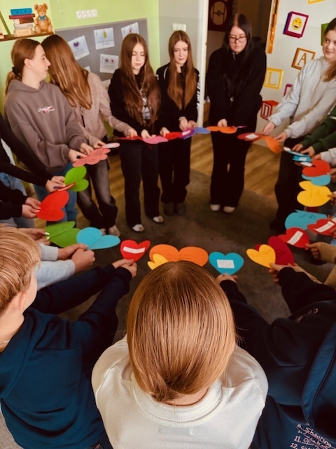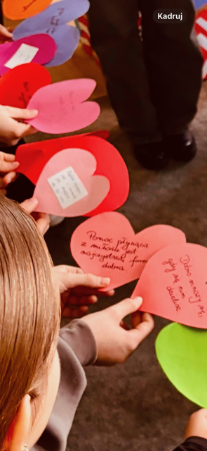 W przedsięwzięciu uczestniczyli zarówno uczniowie naszej szkoły, jak i najmłodsi wolontariusze z przedszkola. Dzieci przygotowały kolorowe serca ozdobione słowami empatii i dobroci. Każde z nich stanowiło symbol pamięci, otwartości i solidarności wobec osób znajdujących się w trudnej sytuacji życiowej.
