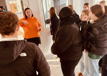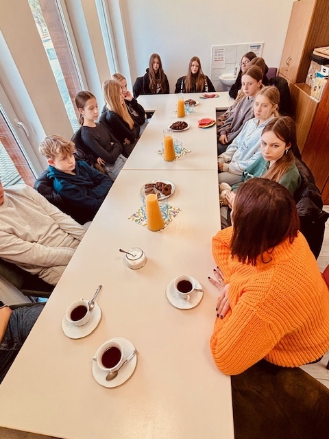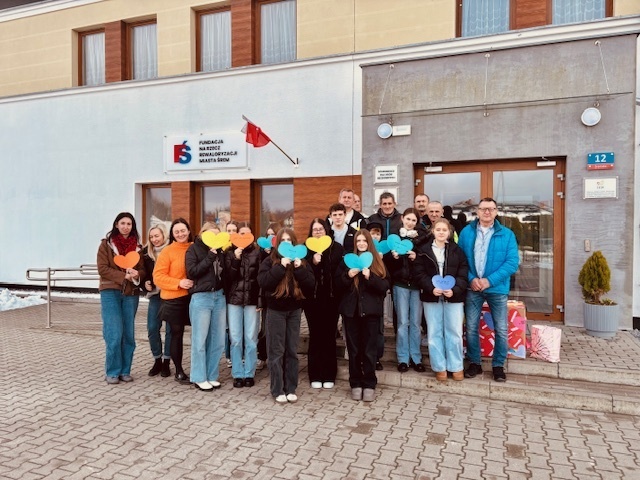 Podczas wizyty przekazali mieszkańcom dary zgromadzone w ramach szkolnej zbiórki, niosąc wsparcie i życzliwość.
