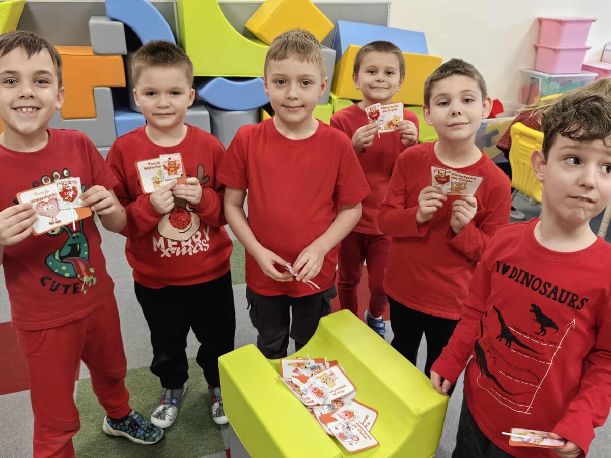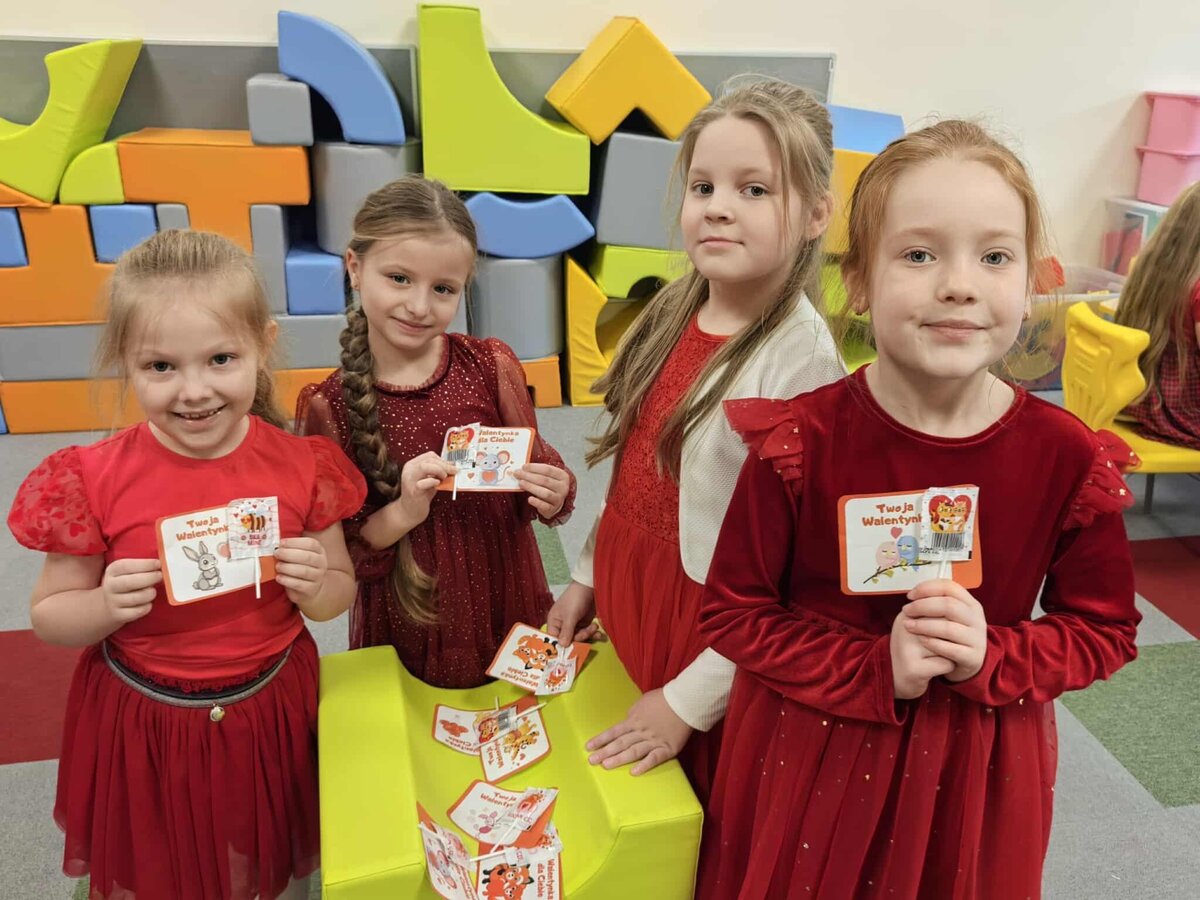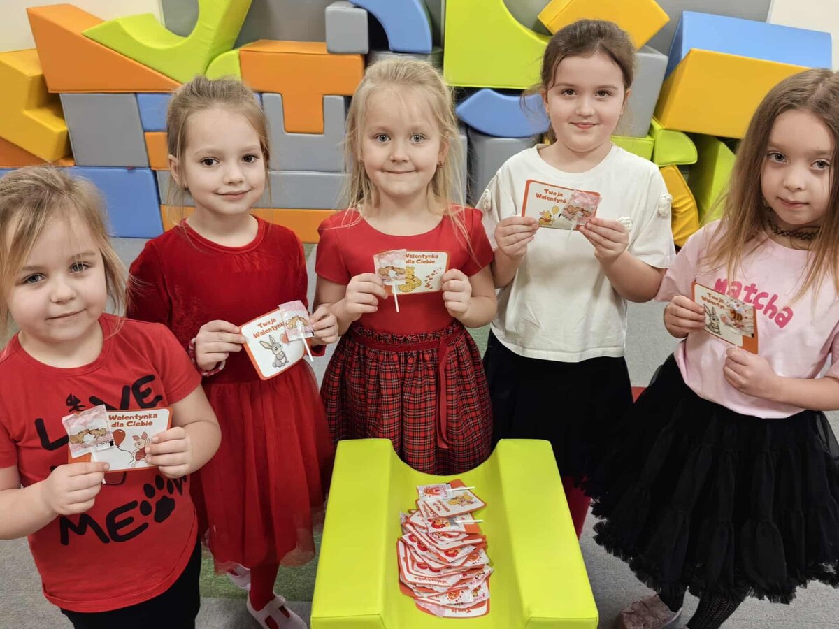 Walentynki to radosne święto, które i w tym roku było celebrowane w naszym przedszkolu. Takie dni mają na celu promowanie miłości, przyjaźni i życzliwości wśród maluchów. W przedszkolu królował kolor czerwony. Nie zabrakło zabaw tematycznych. Dzieci przygotowywały kartki walentynkowe dla swoich rodziców. Walentynkowe zabawy zakończono słodkim lizakiem w kształcie serduszka i pamiątkowymi zdjęciami na walentynkowej ściance.