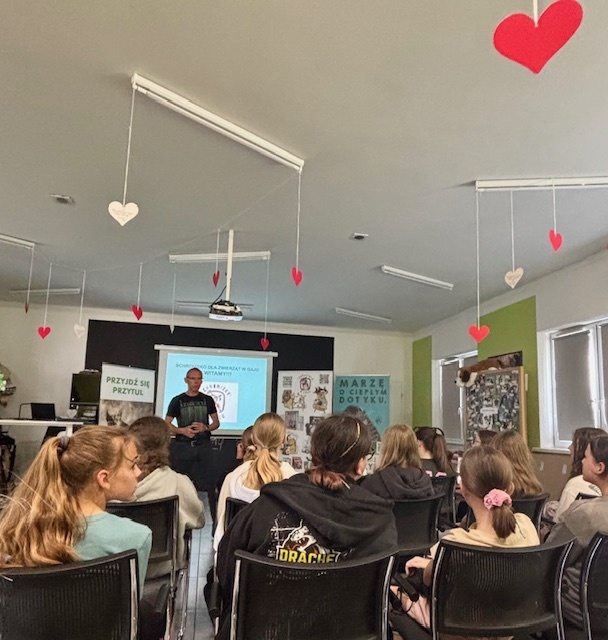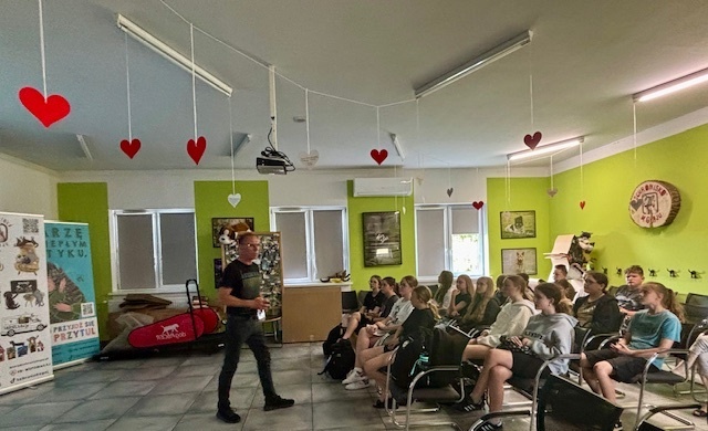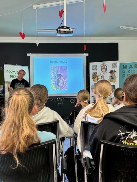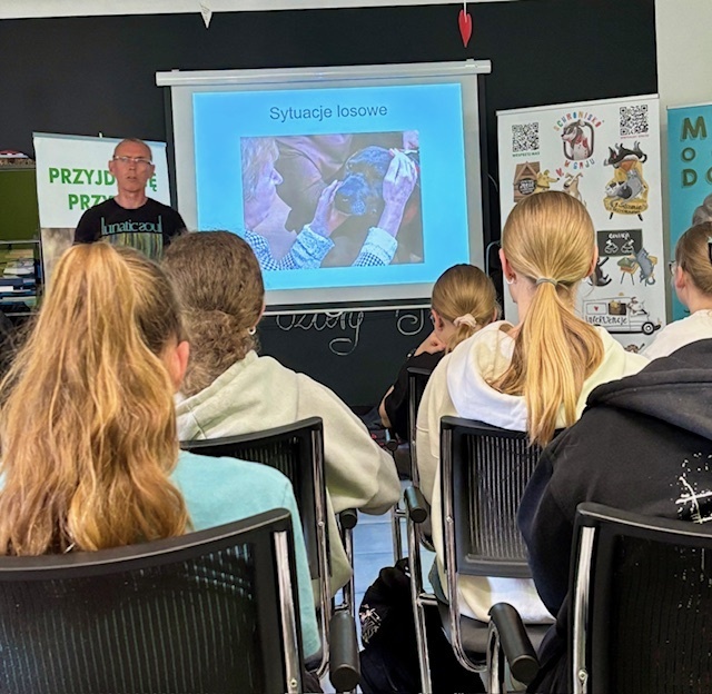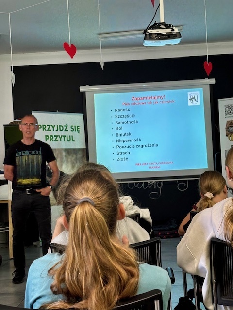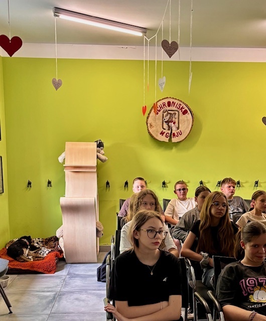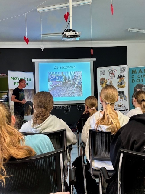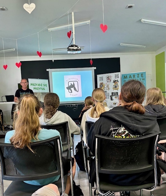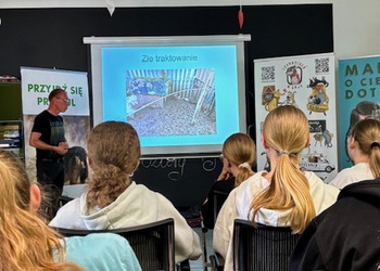 Na miejscu uczniowie zostali serdecznie powitani przez pracowników schroniska, którzy przedstawili im zakres działań placówki. Podczas prezentacji młodzież miała okazję poznać nie tylko codzienną opiekę nad zwierzętami, ale także aspekty interwencyjne, prewencyjne i społeczne działalności schroniska. Opowieści o ratowaniu zwierząt, ich leczeniu oraz adopcji wzbudziły wiele emocji i uznania dla pracy wolontariuszy oraz pracowników.