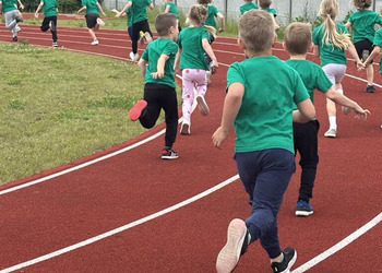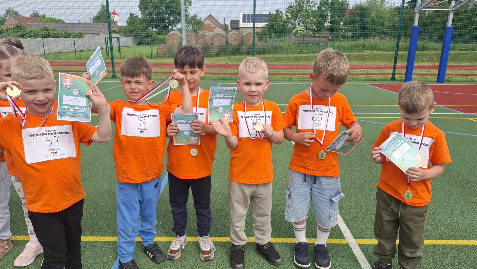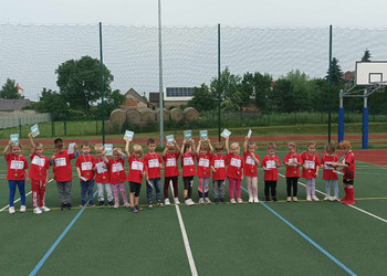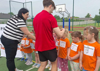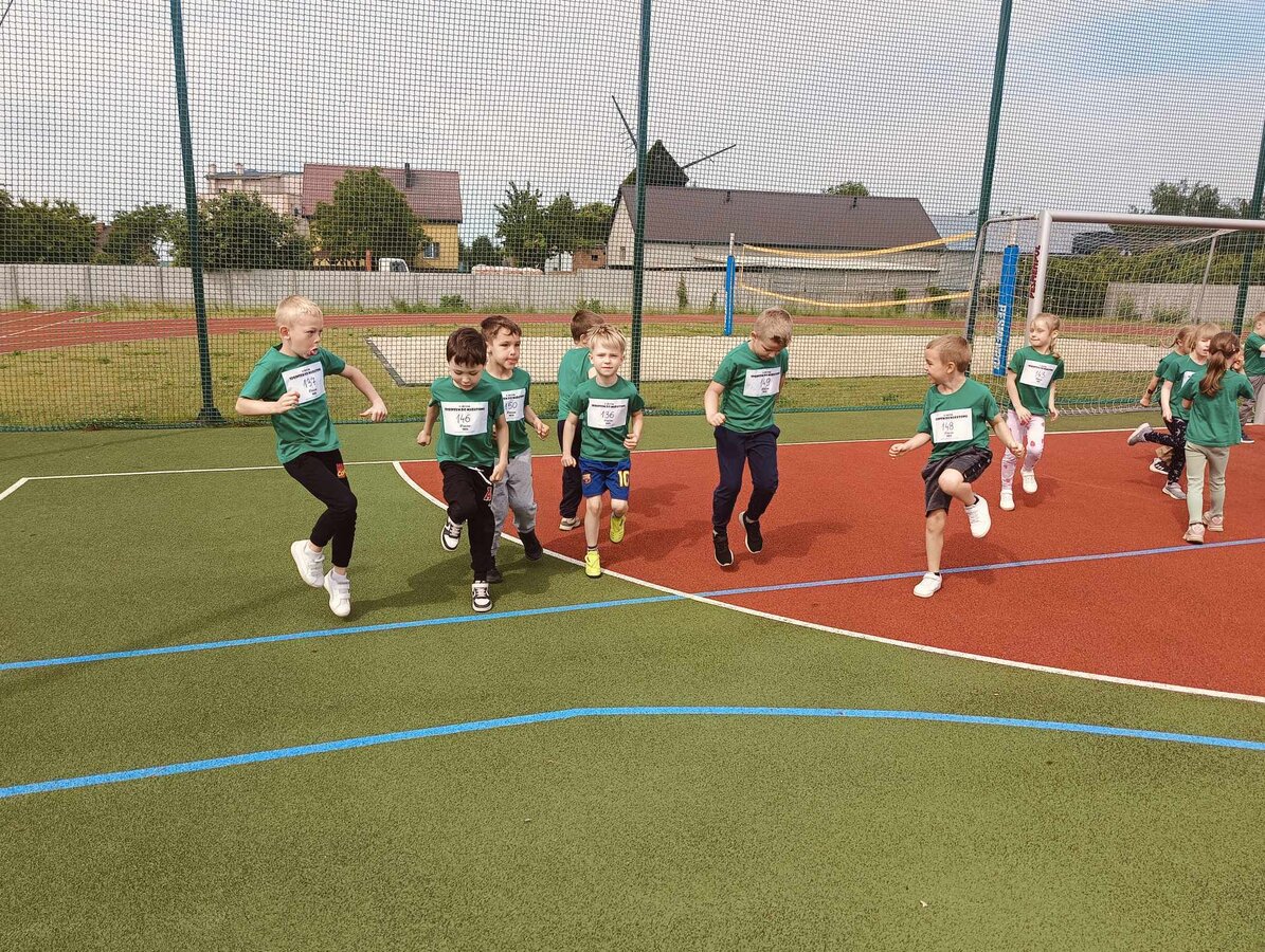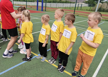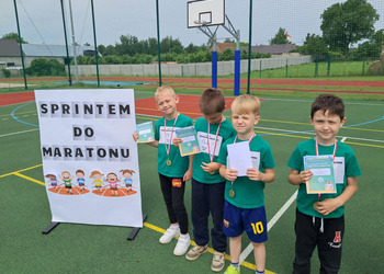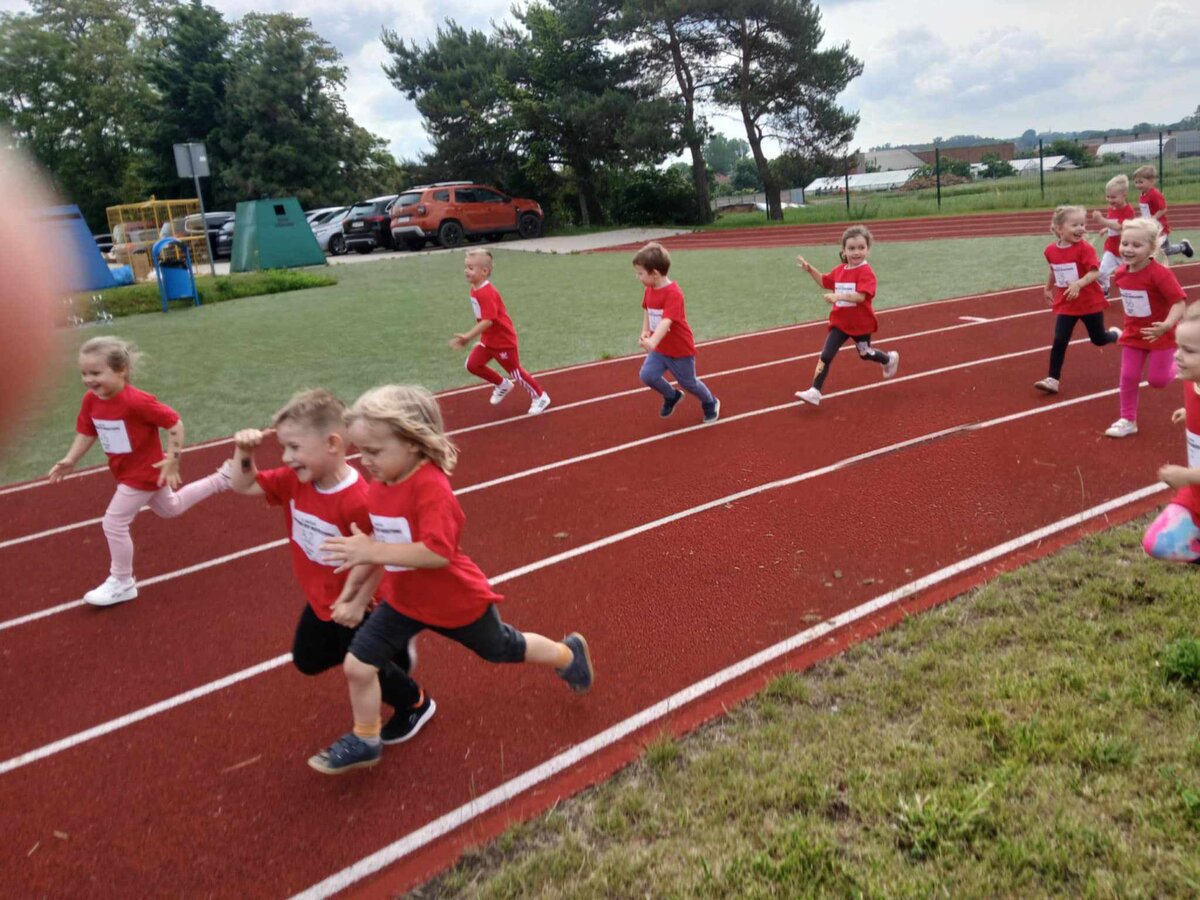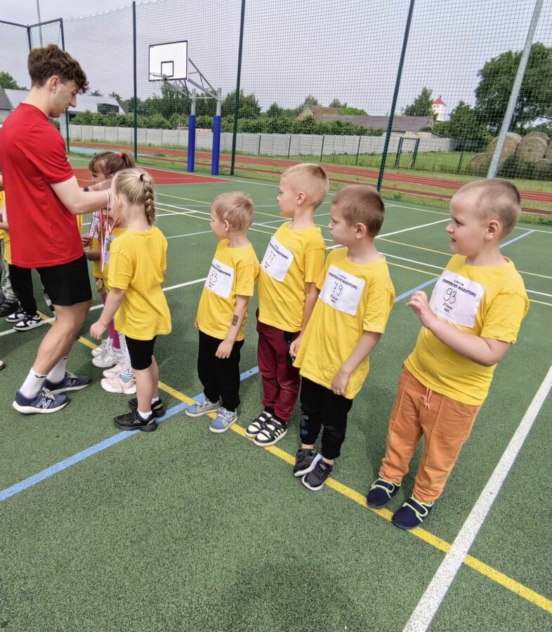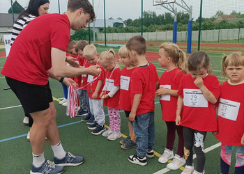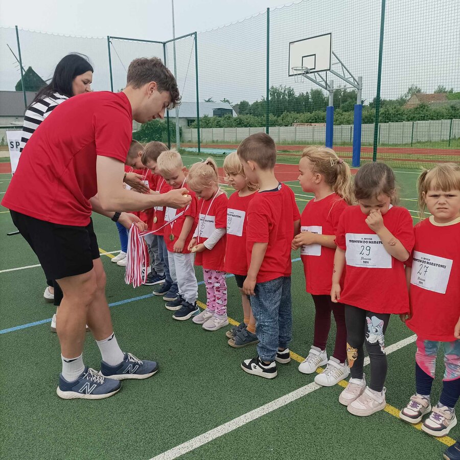 2 czerwca dzieci z Przedszkola Samorządowego w Jerce wzięły udział w XI Ogólnopolskim Maratonie Przedszkolaków pod hasłem „Sprintem do maratonu”. Celem tego wydarzenia jest promowanie zdrowego stylu życia i aktywnego spędzania czasu, popularyzowanie biegów wśród dzieci oraz kształtowanie u przedszkolaków nawyku podejmowania aktywności fizycznej. Akcja ta zachęca dzieci do zabawy i ruchu na świeżym powietrzu, a także kładzie nacisk na edukację zdrowotną już od najmłodszych lat. Od samego rana w przedszkolu gościliśmy trenera klubu Promień Krzywiń Pana Adriana Gościniaka, który rozmawiał z dziećmi o sporcie i zdrowym odżywianiu. Zachęcał wszystkich do aktywności fizycznej. Następnie wszystkie dzieci otrzymały numery startowe i wspólnie udaliśmy się na szkolne boisko, gdzie pan Adrian przeprowadził dla wszystkich rozgrzewkę. Kolejnym punktem programu był bieg wyznaczoną trasą. Wszystkie przedszkolaki bez trudu przebiegły wyznaczony dystans. Na zakończenie każde dziecko otrzymało medal i dyplom. Warto podkreślić, że wszyscy byli zwycięzcami, nie liczyło się zdobyte miejsce, lecz pokonanie wyznaczonego dystansu w miłej atmosferze.