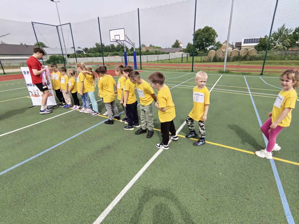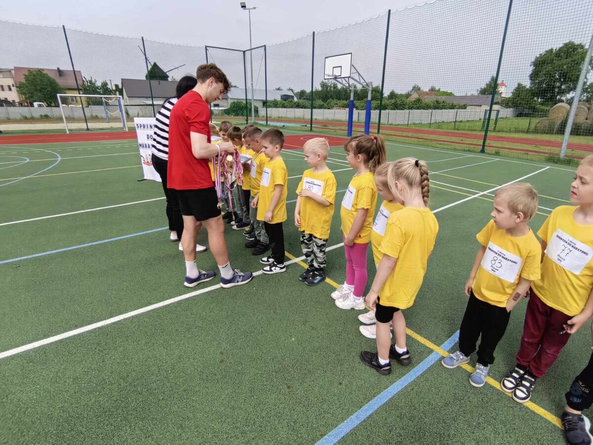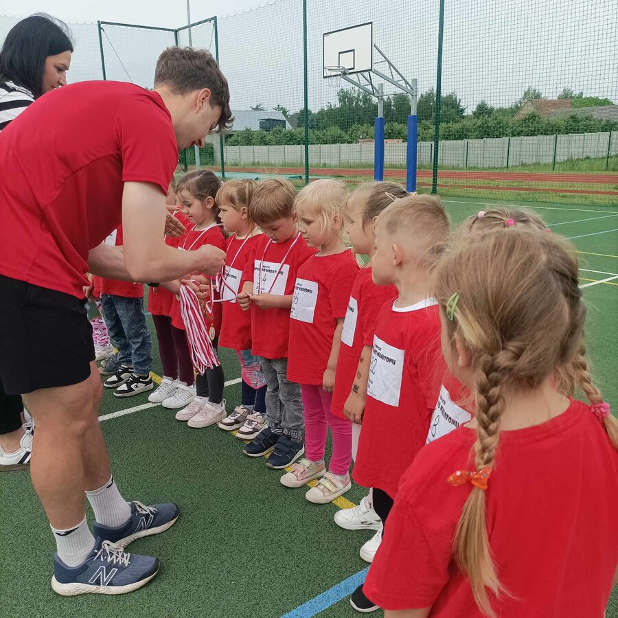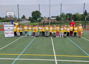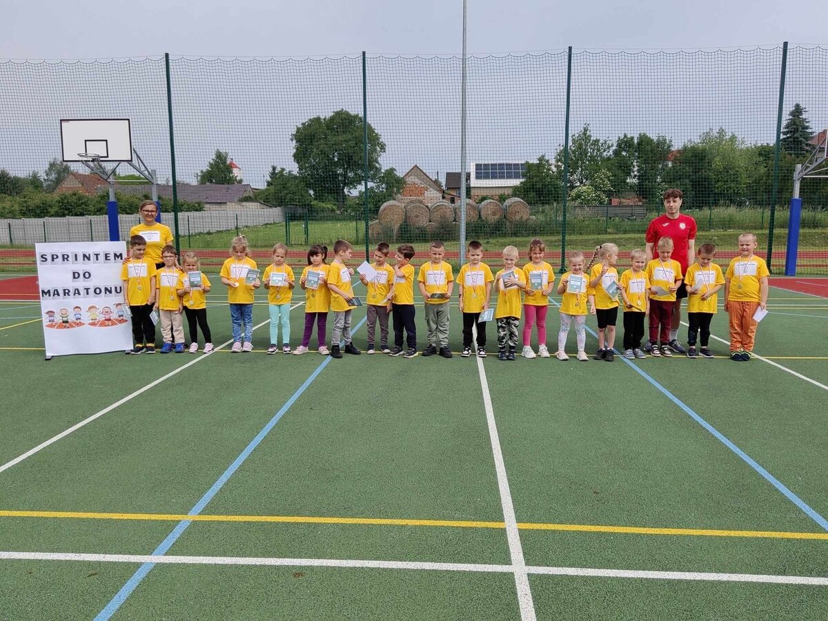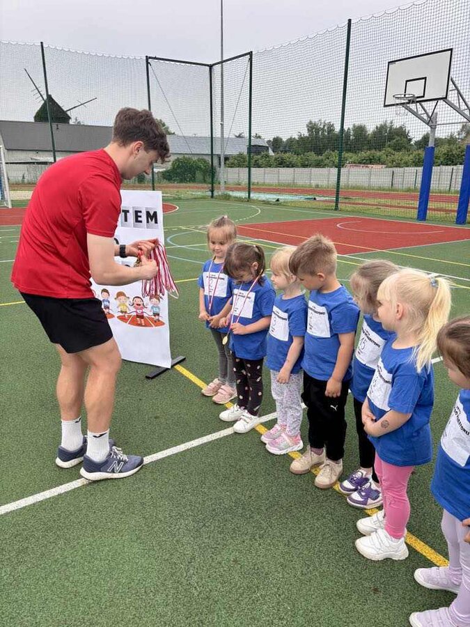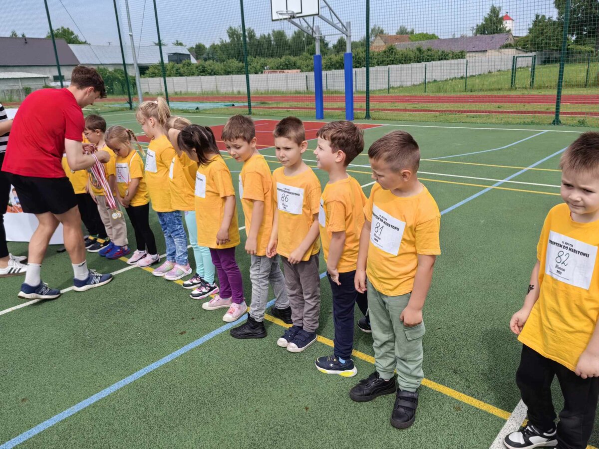 2 czerwca dzieci z Przedszkola Samorządowego w Jerce wzięły udział w XI Ogólnopolskim Maratonie Przedszkolaków pod hasłem „Sprintem do maratonu”. Celem tego wydarzenia jest promowanie zdrowego stylu życia i aktywnego spędzania czasu, popularyzowanie biegów wśród dzieci oraz kształtowanie u przedszkolaków nawyku podejmowania aktywności fizycznej. Akcja ta zachęca dzieci do zabawy i ruchu na świeżym powietrzu, a także kładzie nacisk na edukację zdrowotną już od najmłodszych lat. Od samego rana w przedszkolu gościliśmy trenera klubu Promień Krzywiń Pana Adriana Gościniaka, który rozmawiał z dziećmi o sporcie i zdrowym odżywianiu. Zachęcał wszystkich do aktywności fizycznej. Następnie wszystkie dzieci otrzymały numery startowe i wspólnie udaliśmy się na szkolne boisko, gdzie pan Adrian przeprowadził dla wszystkich rozgrzewkę. Kolejnym punktem programu był bieg wyznaczoną trasą. Wszystkie przedszkolaki bez trudu przebiegły wyznaczony dystans. Na zakończenie każde dziecko otrzymało medal i dyplom. Warto podkreślić, że wszyscy byli zwycięzcami, nie liczyło się zdobyte miejsce, lecz pokonanie wyznaczonego dystansu w miłej atmosferze.