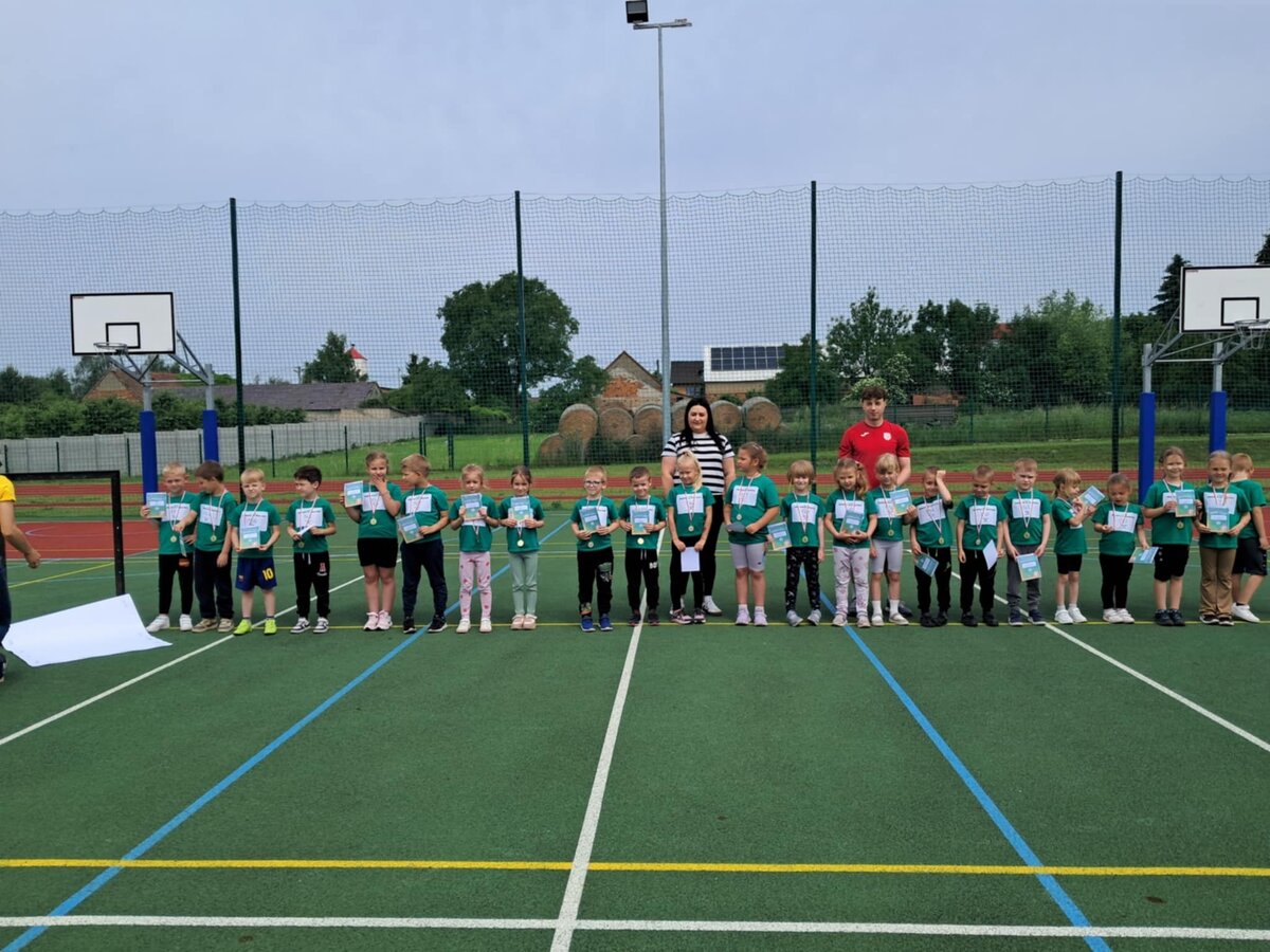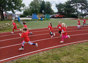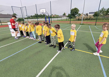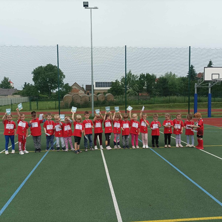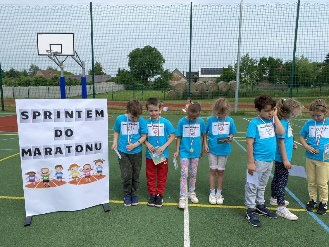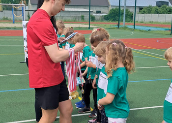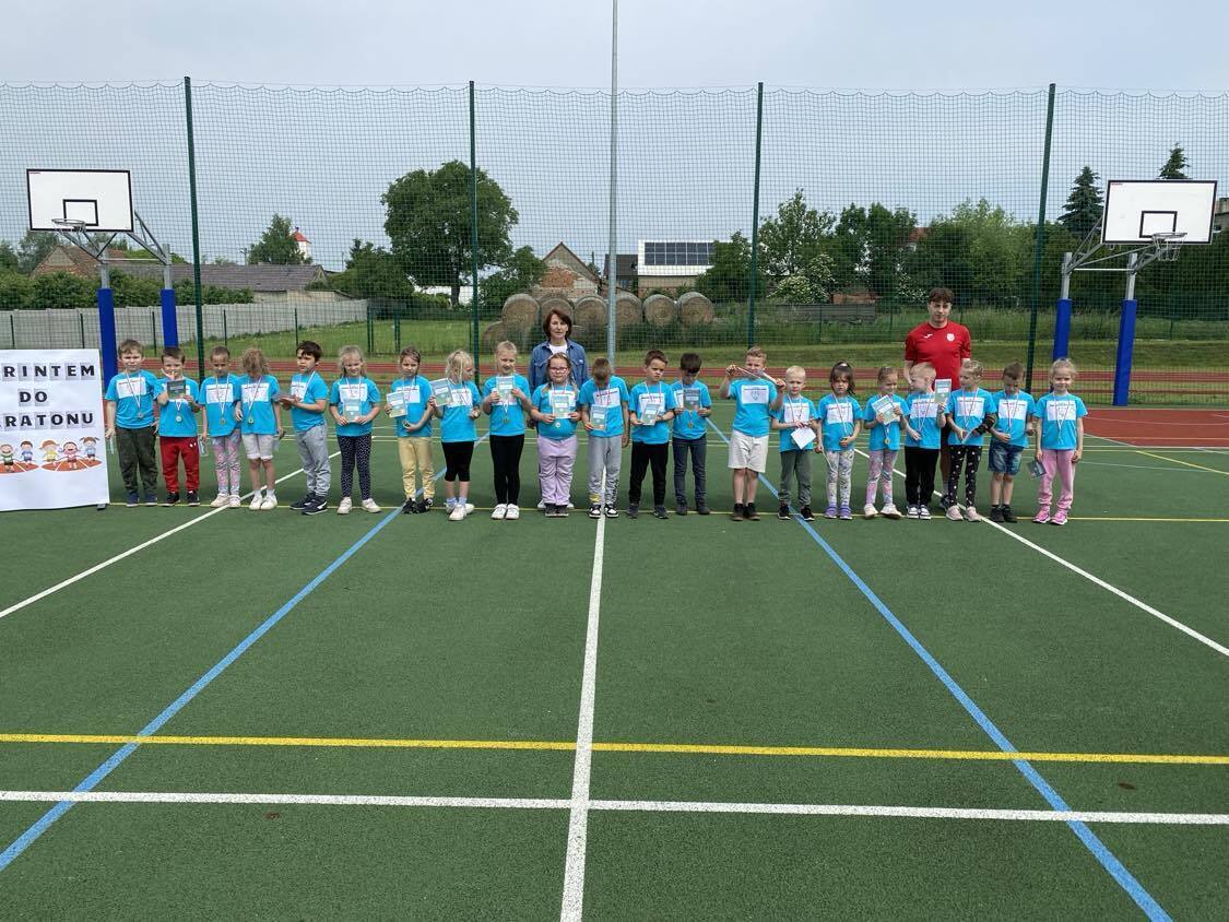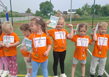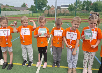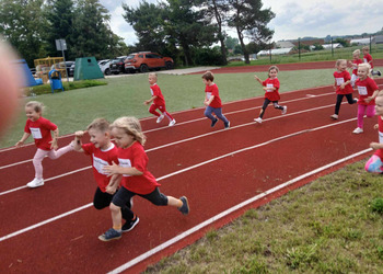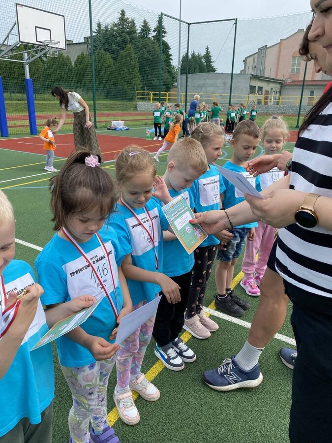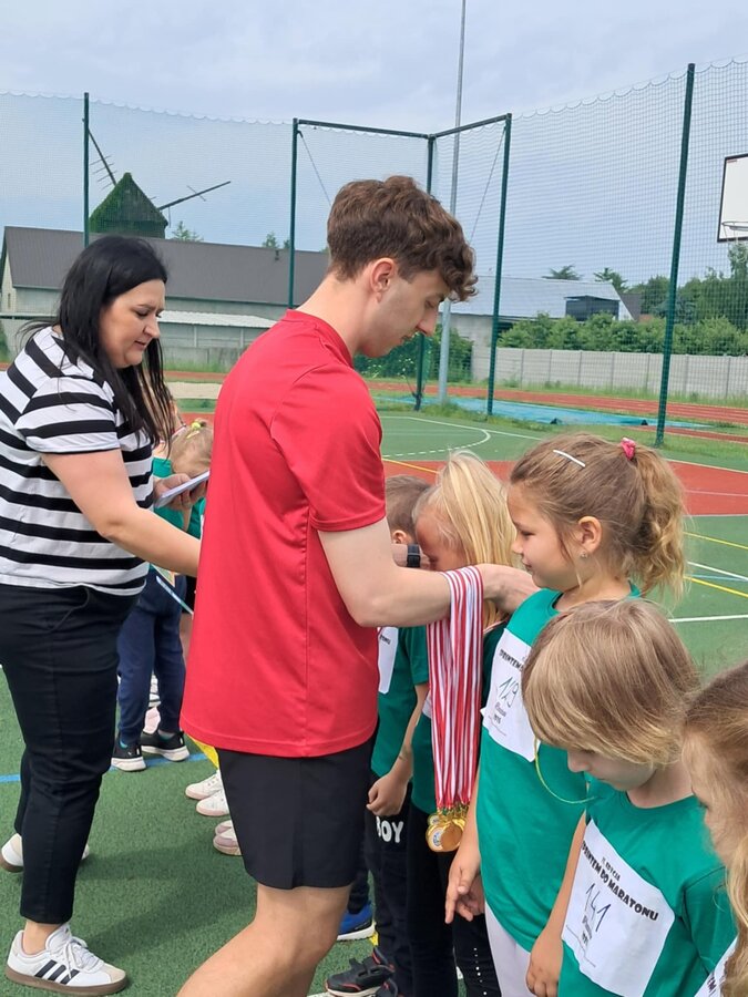 2 czerwca dzieci z Przedszkola Samorządowego w Jerce wzięły udział w XI Ogólnopolskim Maratonie Przedszkolaków pod hasłem „Sprintem do maratonu”. Celem tego wydarzenia jest promowanie zdrowego stylu życia i aktywnego spędzania czasu, popularyzowanie biegów wśród dzieci oraz kształtowanie u przedszkolaków nawyku podejmowania aktywności fizycznej. Akcja ta zachęca dzieci do zabawy i ruchu na świeżym powietrzu, a także kładzie nacisk na edukację zdrowotną już od najmłodszych lat. Od samego rana w przedszkolu gościliśmy trenera klubu Promień Krzywiń Pana Adriana Gościniaka, który rozmawiał z dziećmi o sporcie i zdrowym odżywianiu. Zachęcał wszystkich do aktywności fizycznej. Następnie wszystkie dzieci otrzymały numery startowe i wspólnie udaliśmy się na szkolne boisko, gdzie pan Adrian przeprowadził dla wszystkich rozgrzewkę. Kolejnym punktem programu był bieg wyznaczoną trasą. Wszystkie przedszkolaki bez trudu przebiegły wyznaczony dystans. Na zakończenie każde dziecko otrzymało medal i dyplom. Warto podkreślić, że wszyscy byli zwycięzcami, nie liczyło się zdobyte miejsce, lecz pokonanie wyznaczonego dystansu w miłej atmosferze.